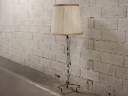 • Lampadaire fer forgé, laiton et verre