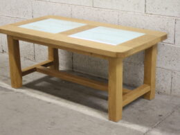 • Table basse en bois et verre