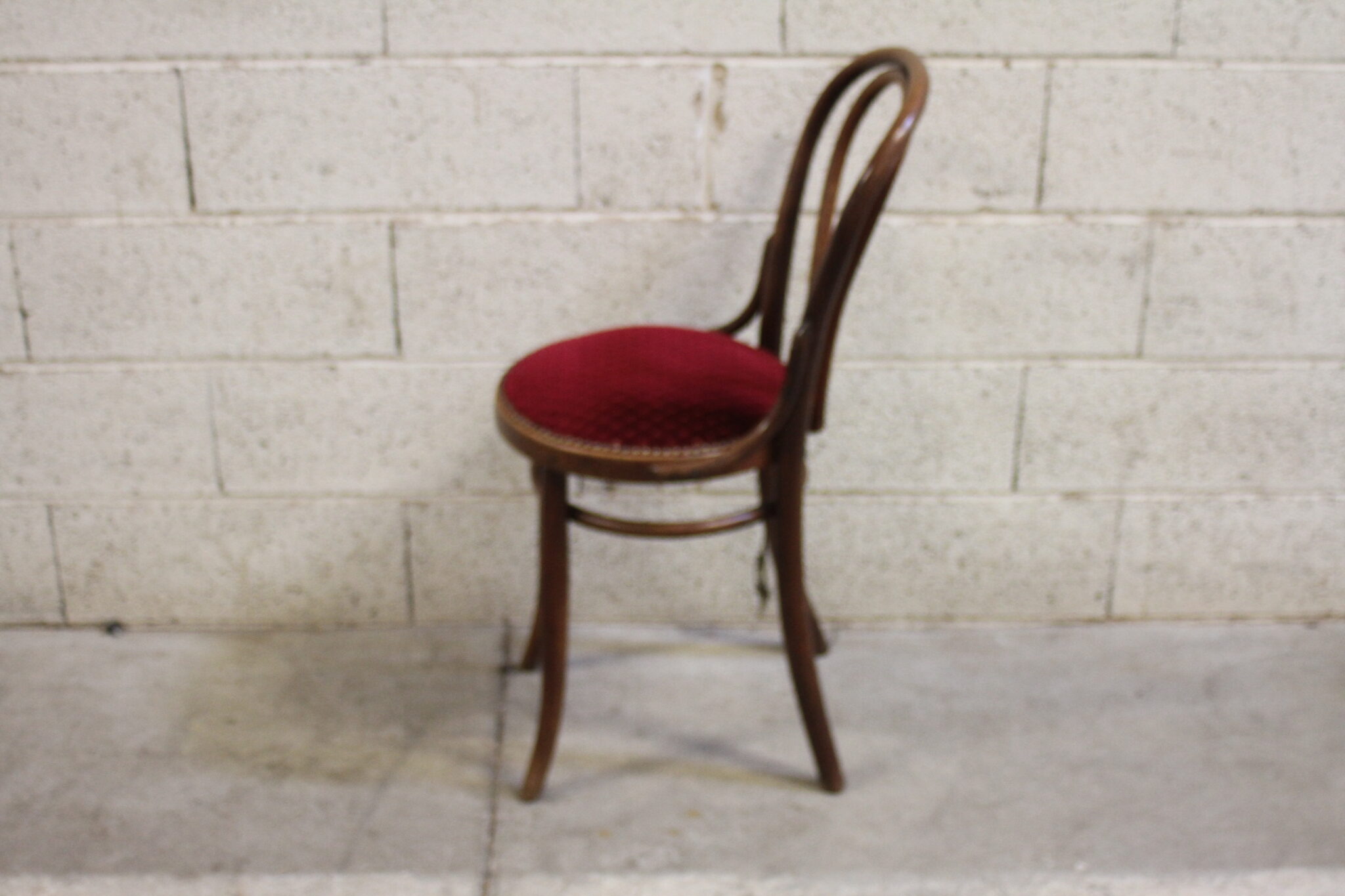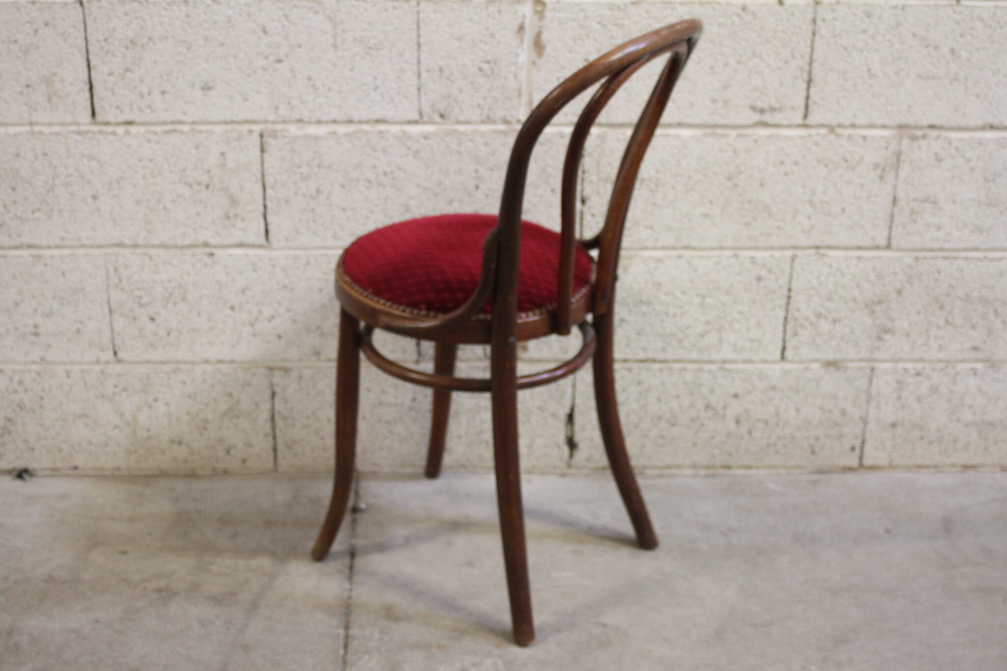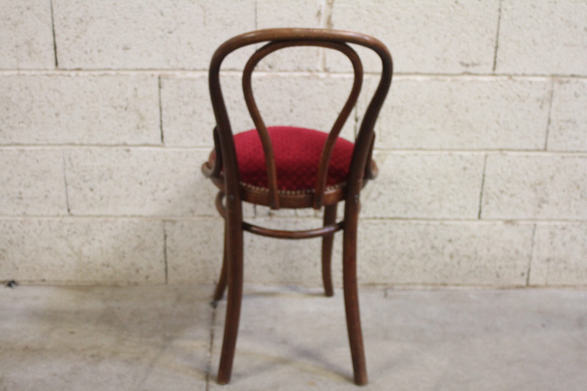 Ancienne chaise bistrot en bois courbé foncé.