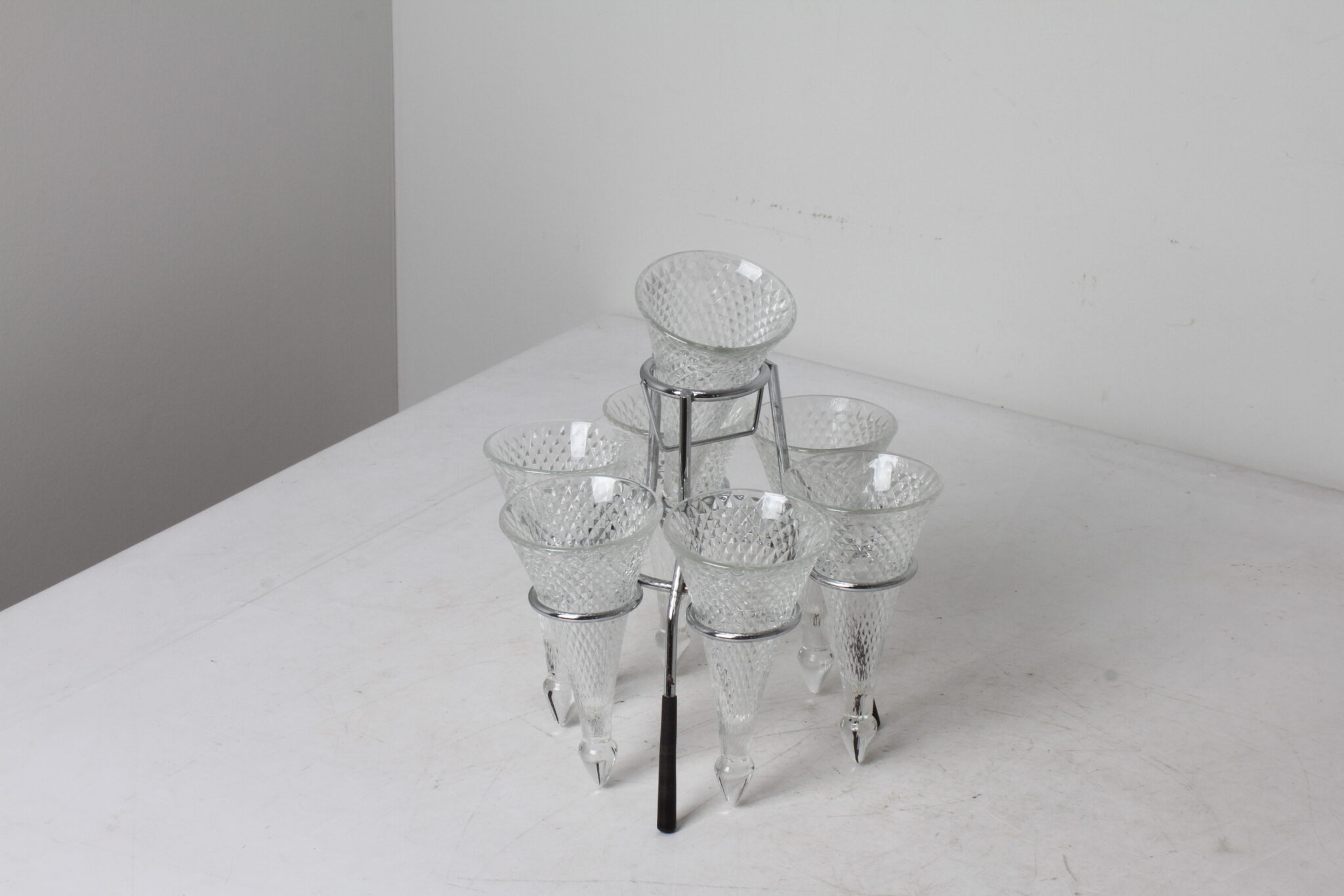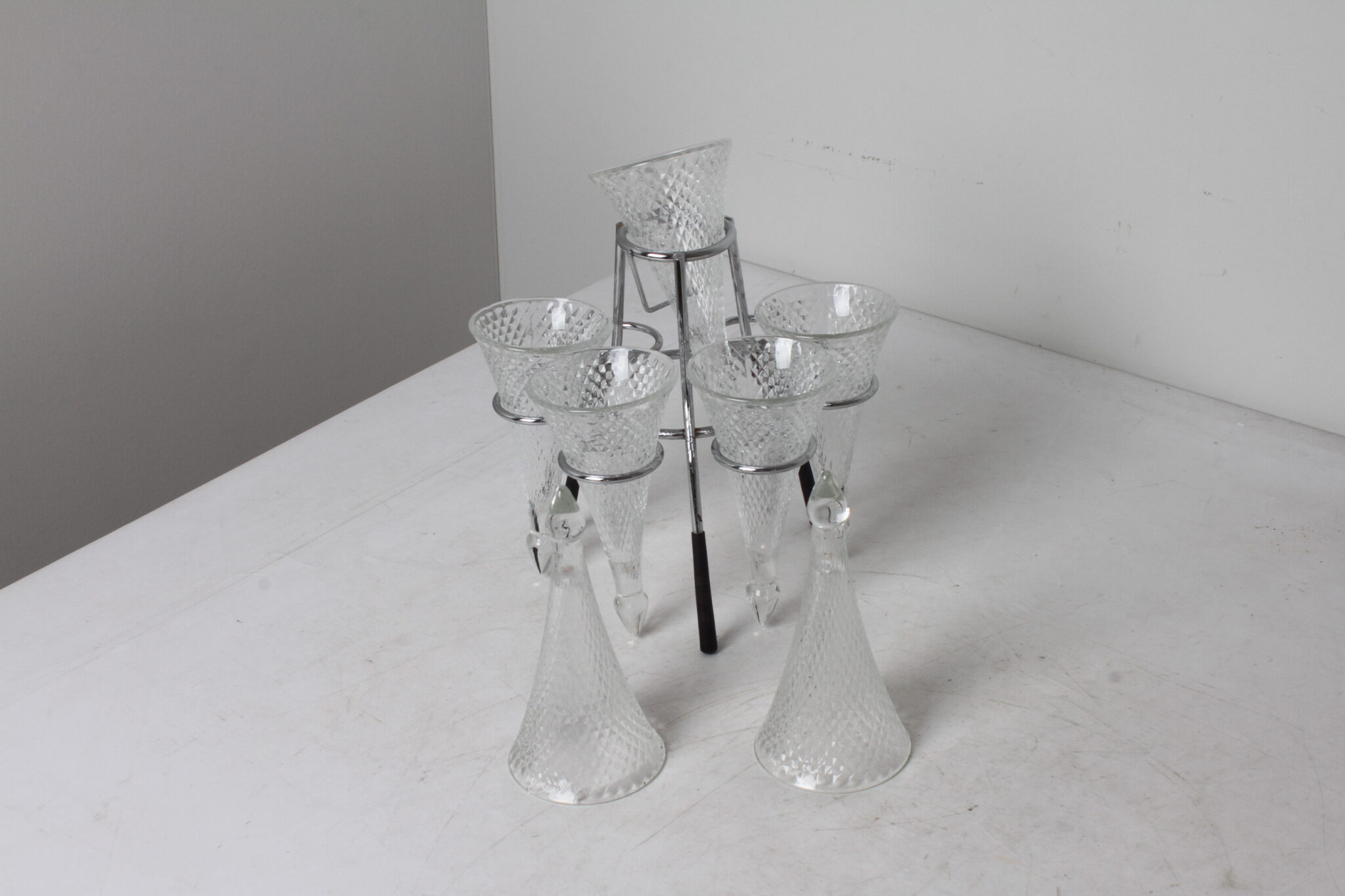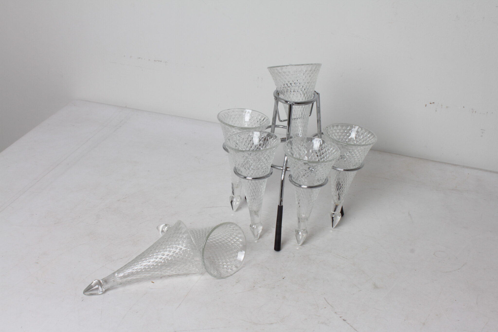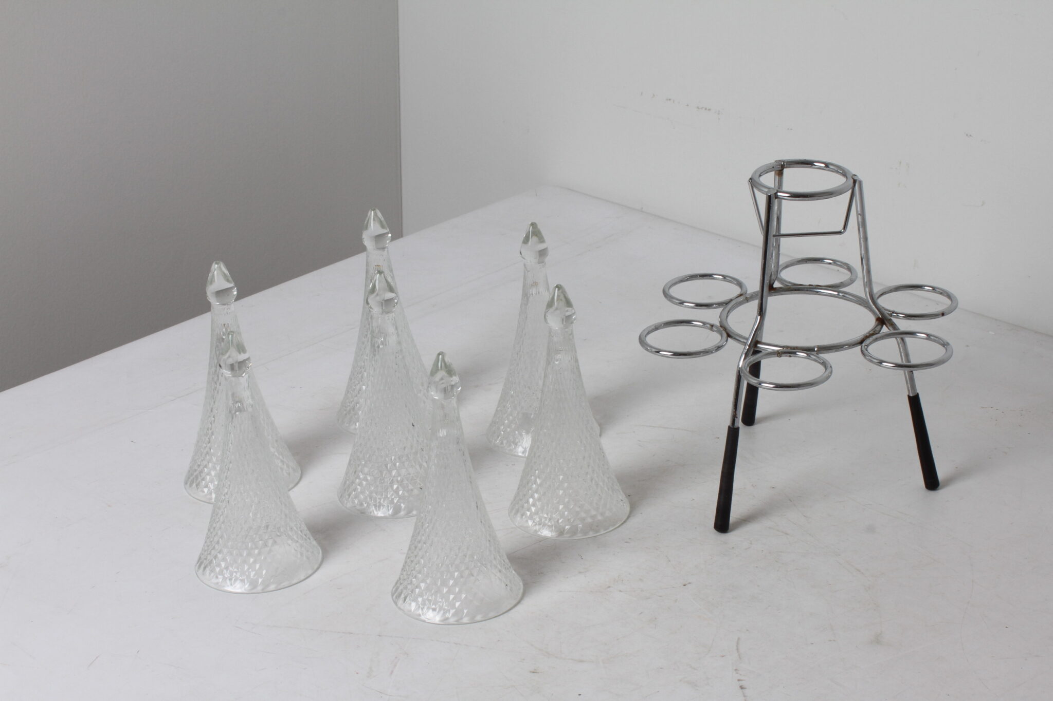 Lot de 7 anciennes flûtes à champagne (ou verres cornets)en verre, Henri Maire.