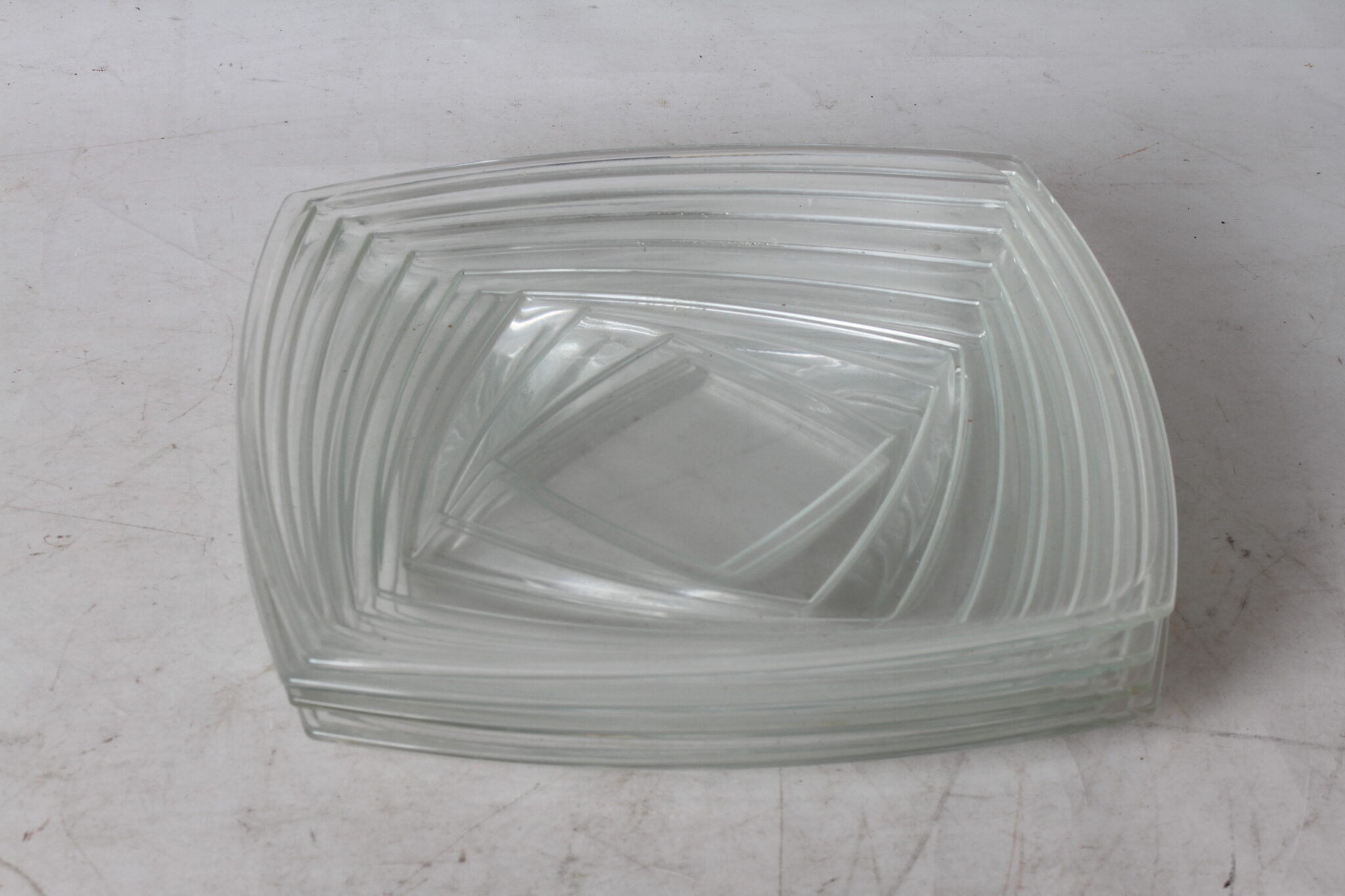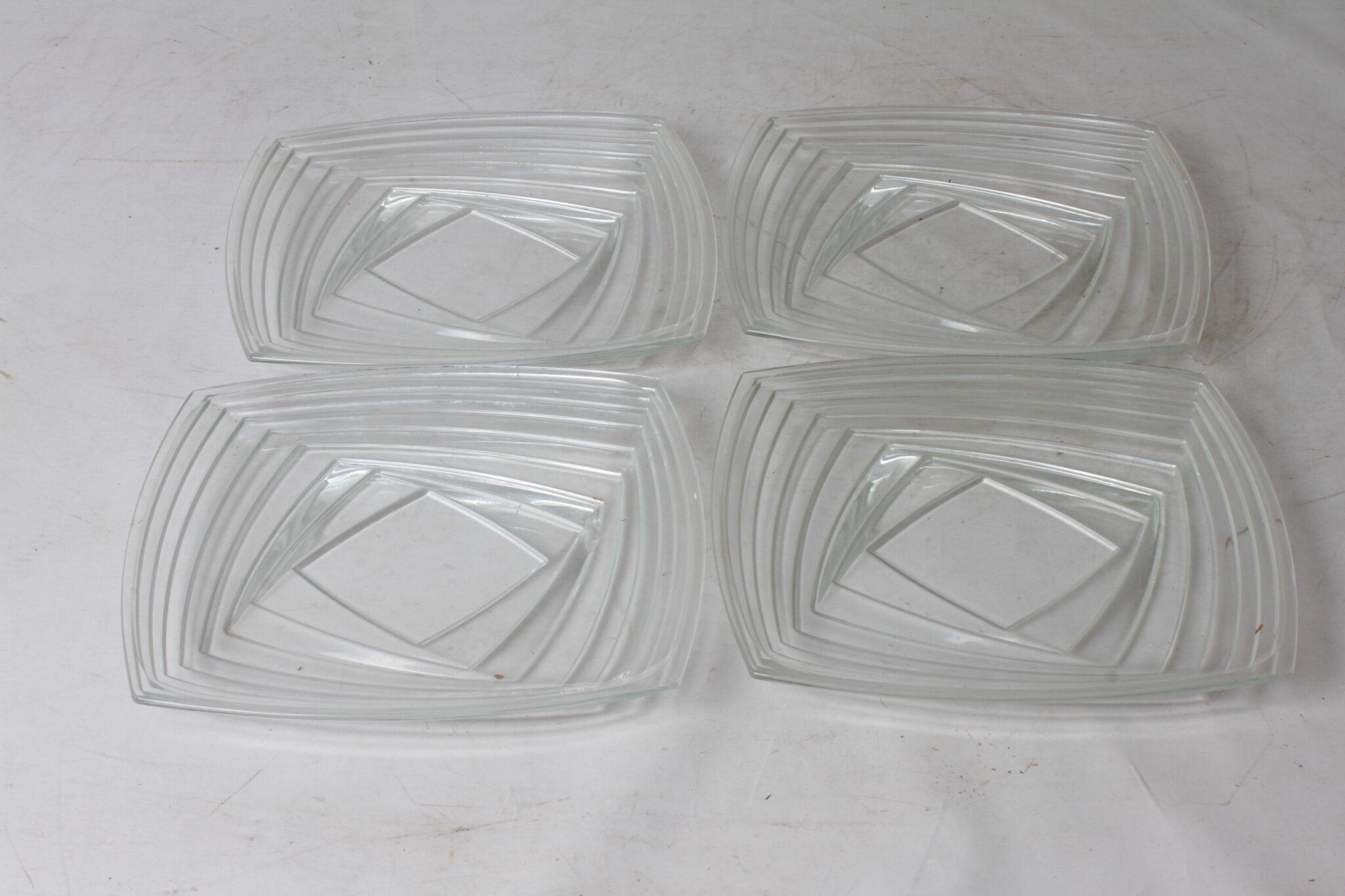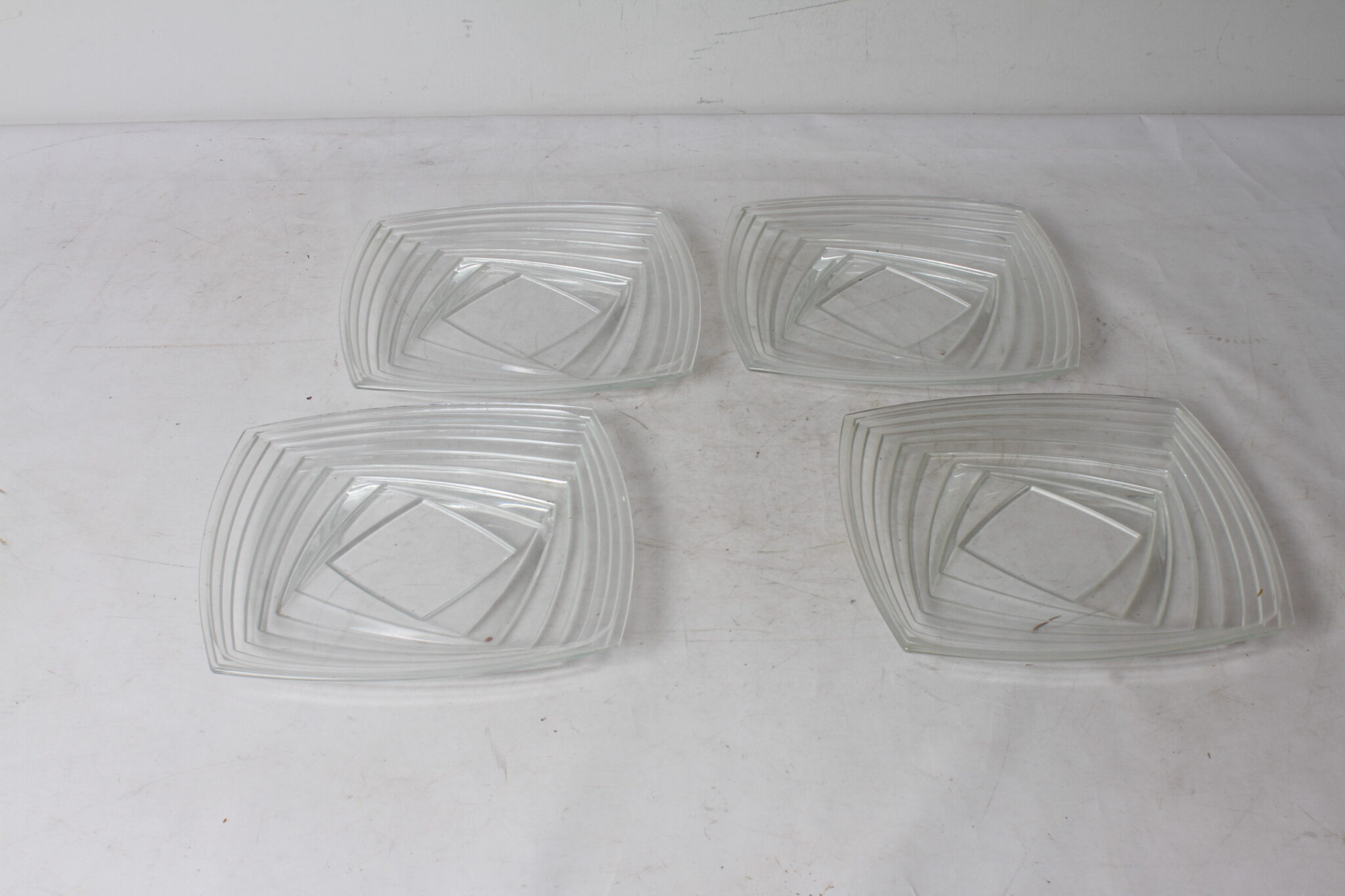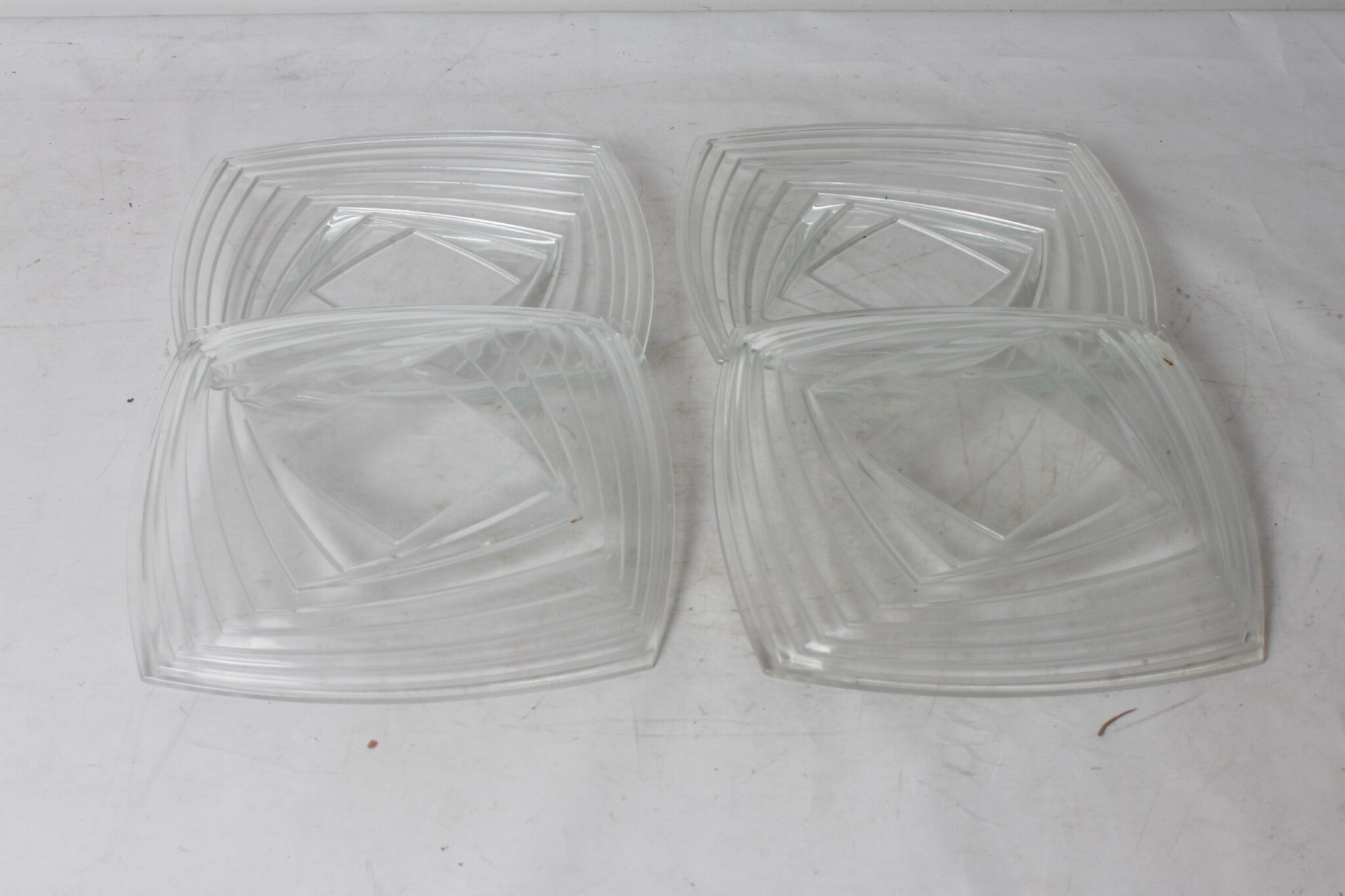 Assiettes carrées en verre transparent épais.