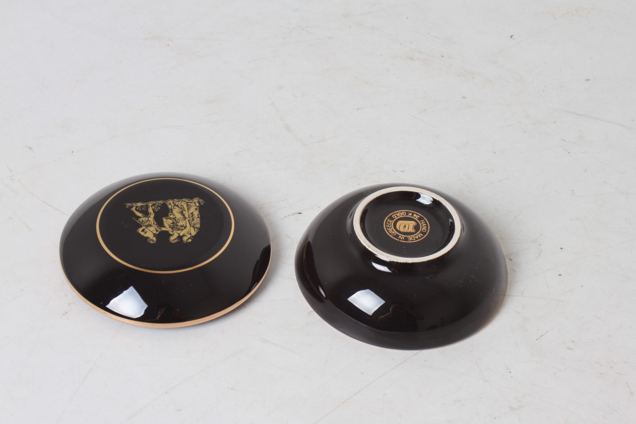 Petite boîte à bibelots en céramique noir et décor or 24K – Greece