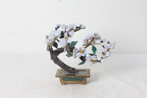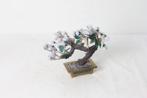 Jardinière chinoise en laiton doré avec bonsaï en jade.