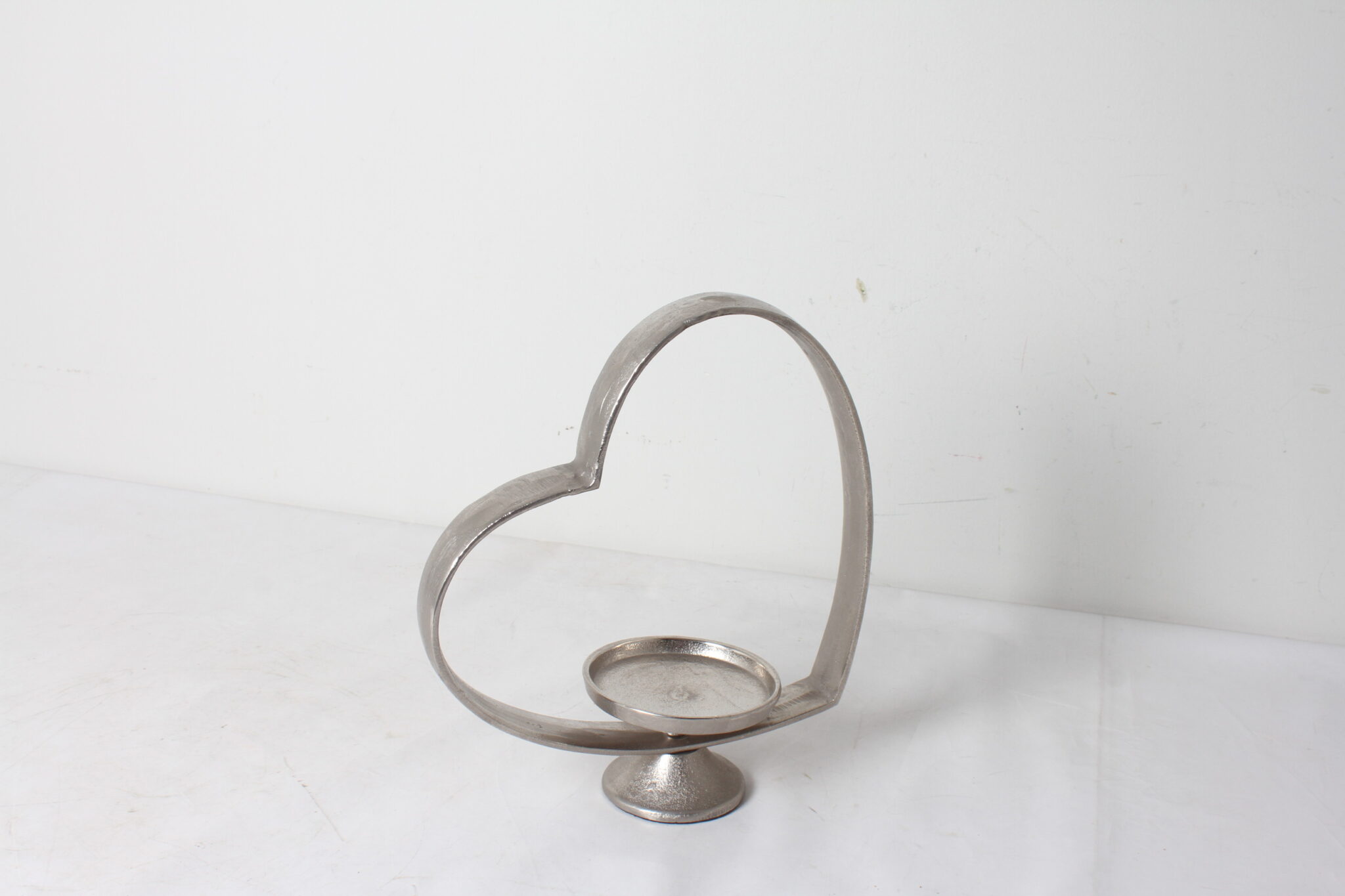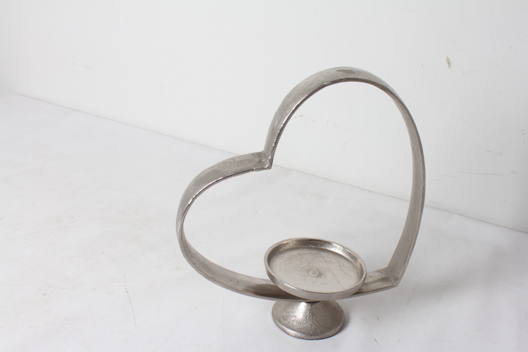 Très joli bougeoir de table brutaliste coeur en acier, pour bougie pilier.