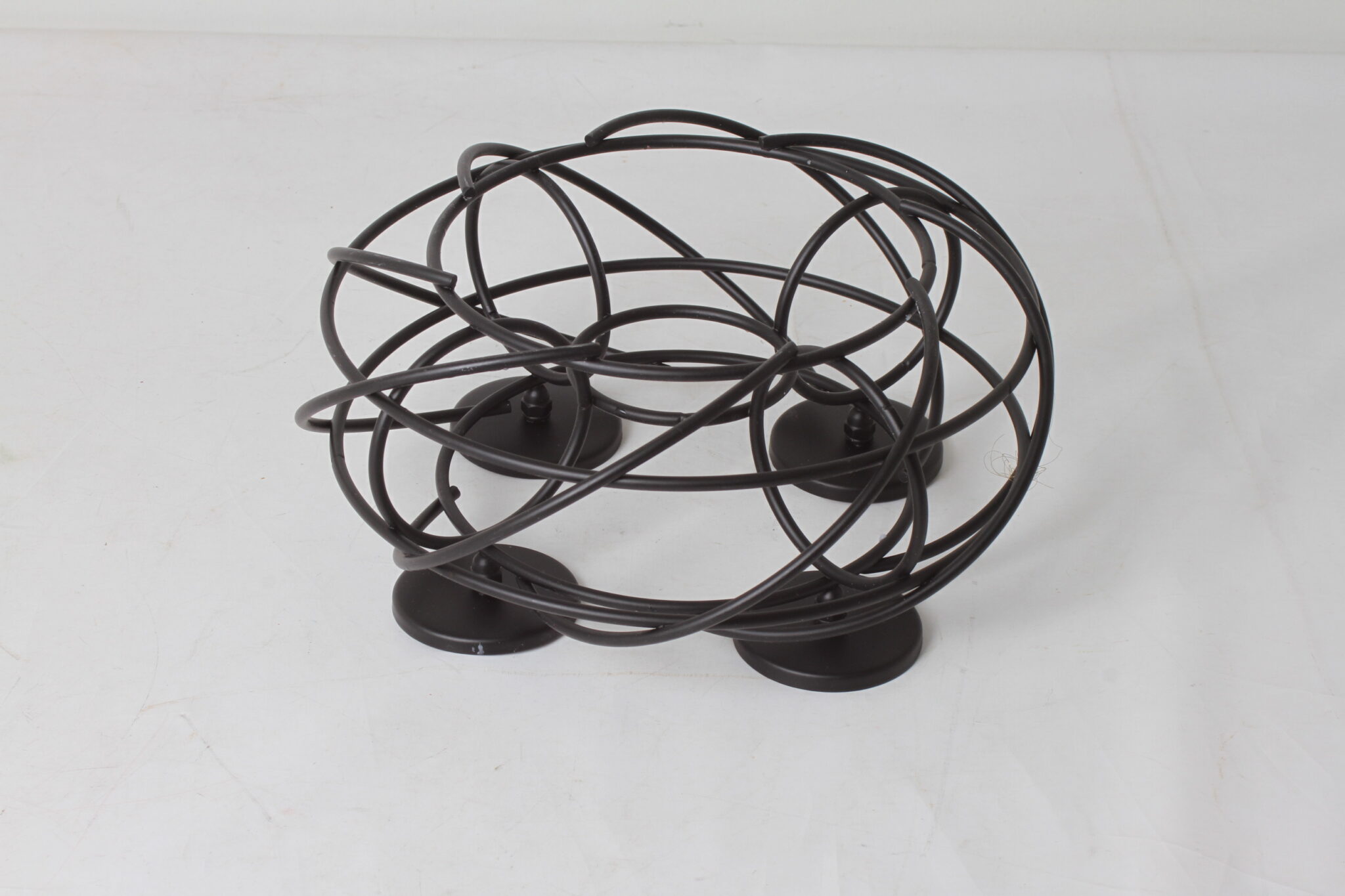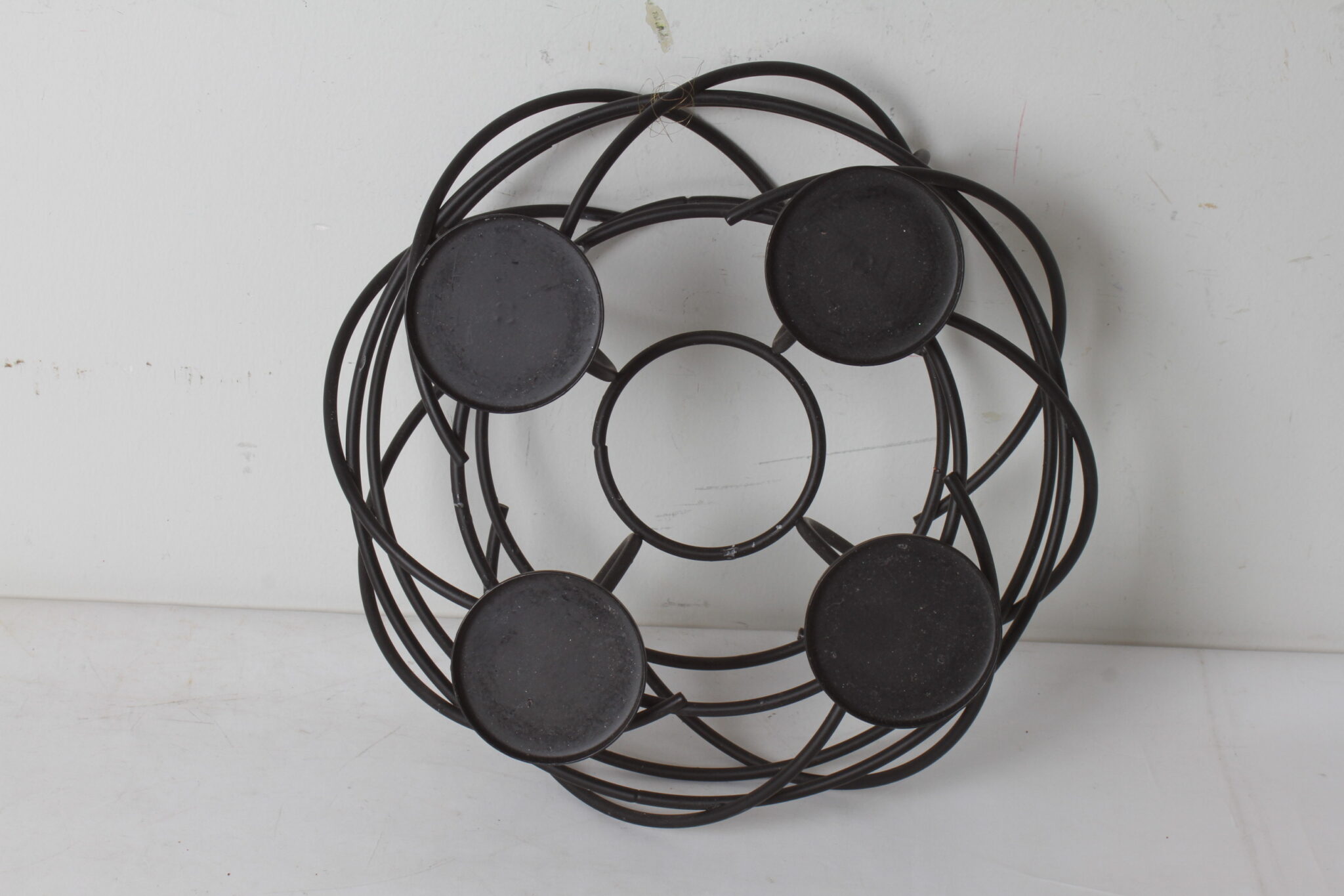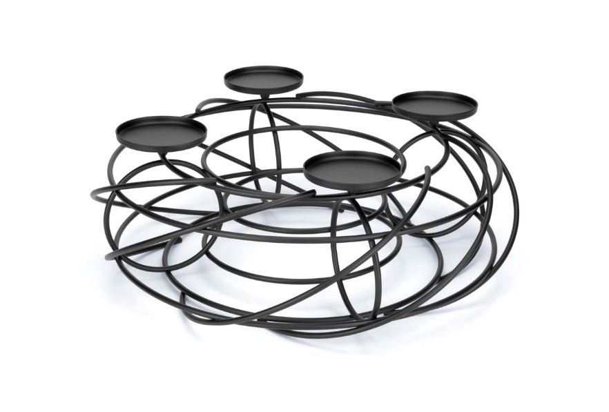 Joli bougeoir rond en métal noir pour 4 bougies.
