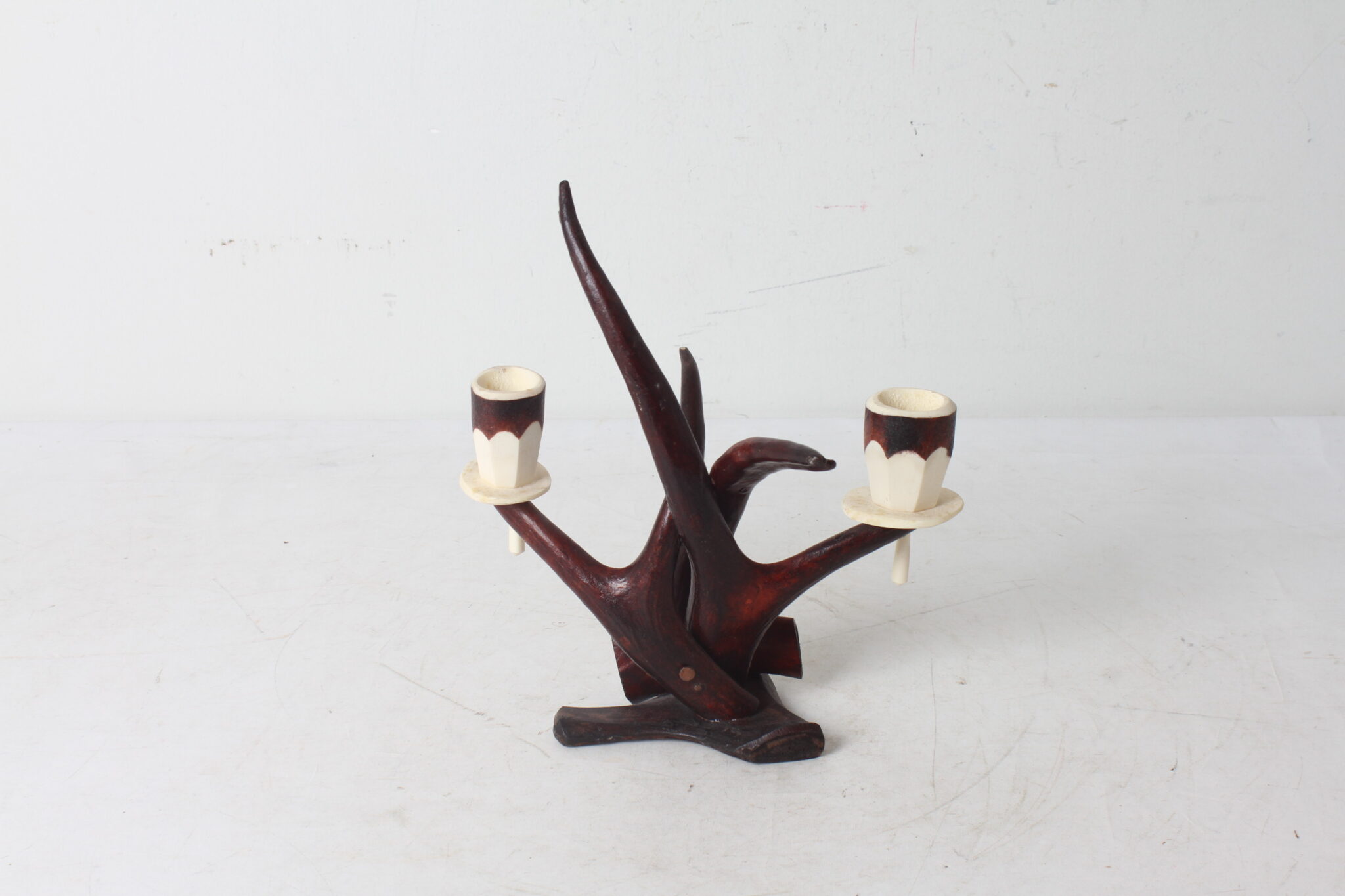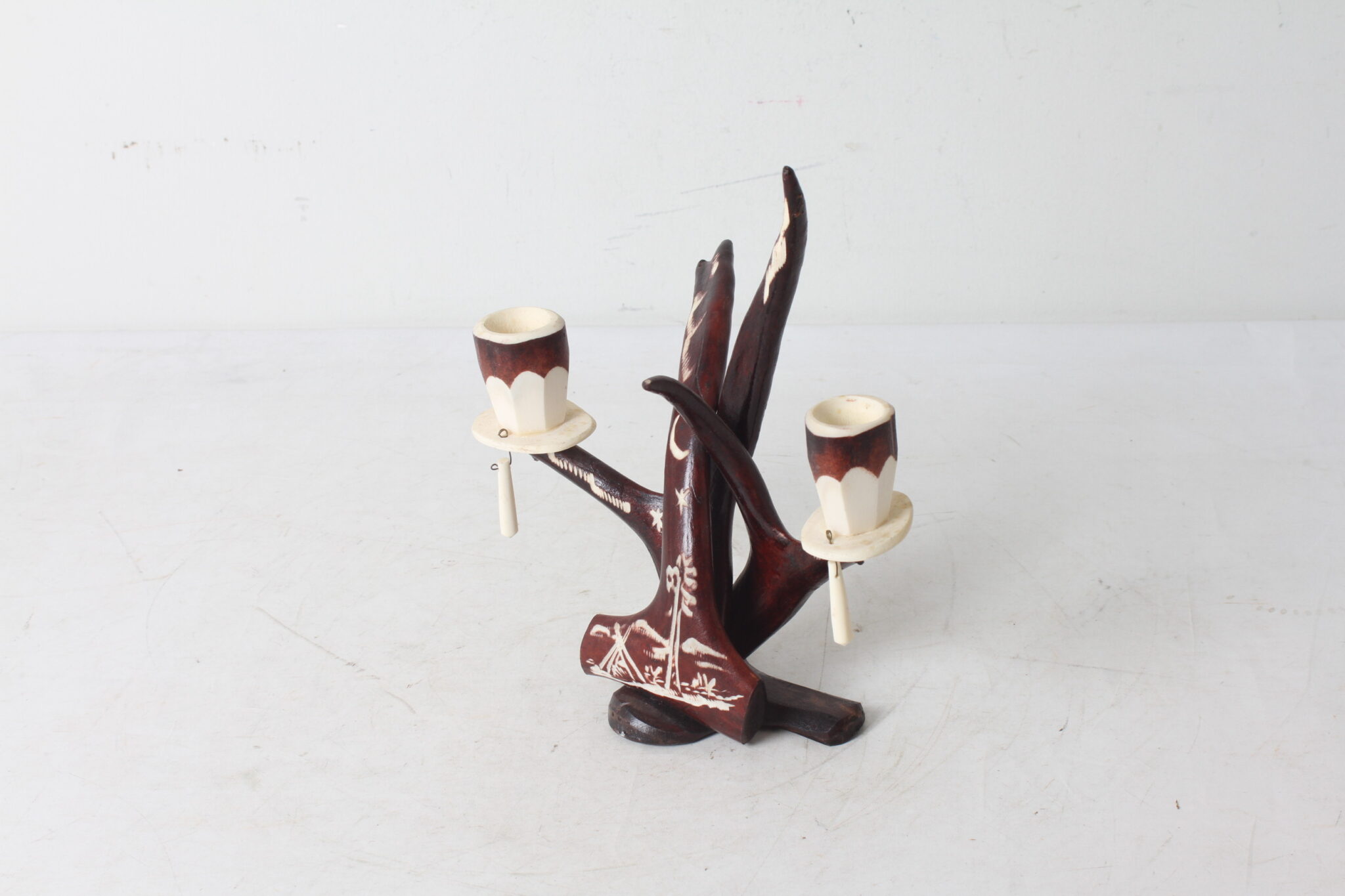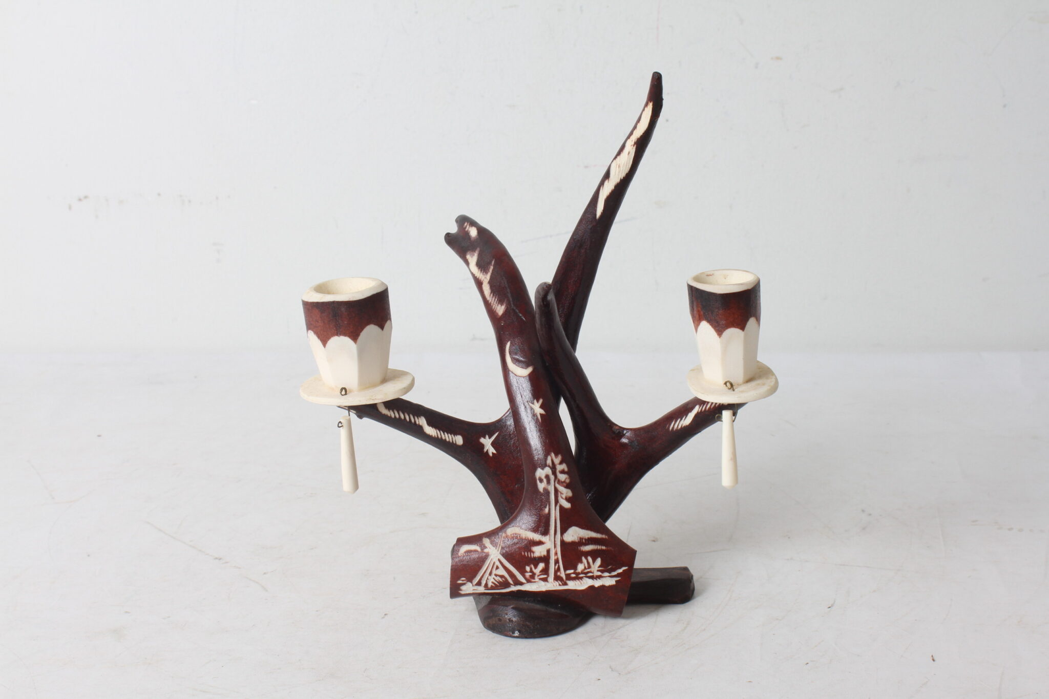 Bougeoir suédois en bois de cerf sculpté.