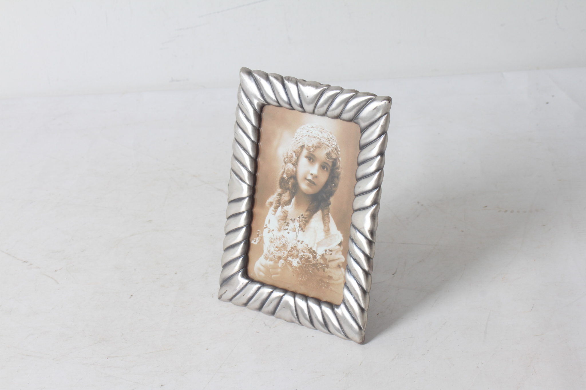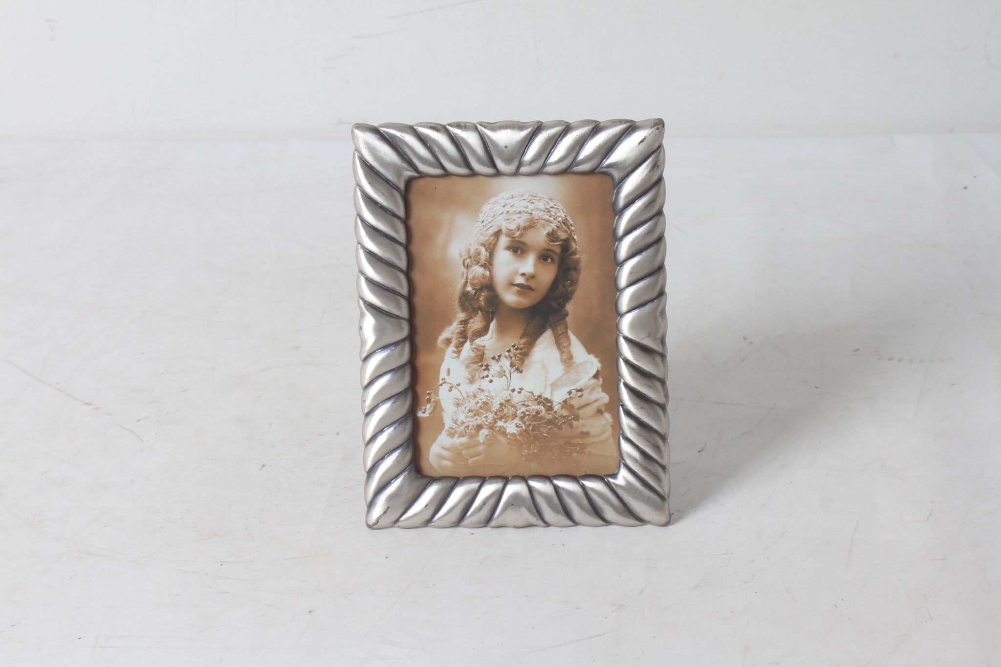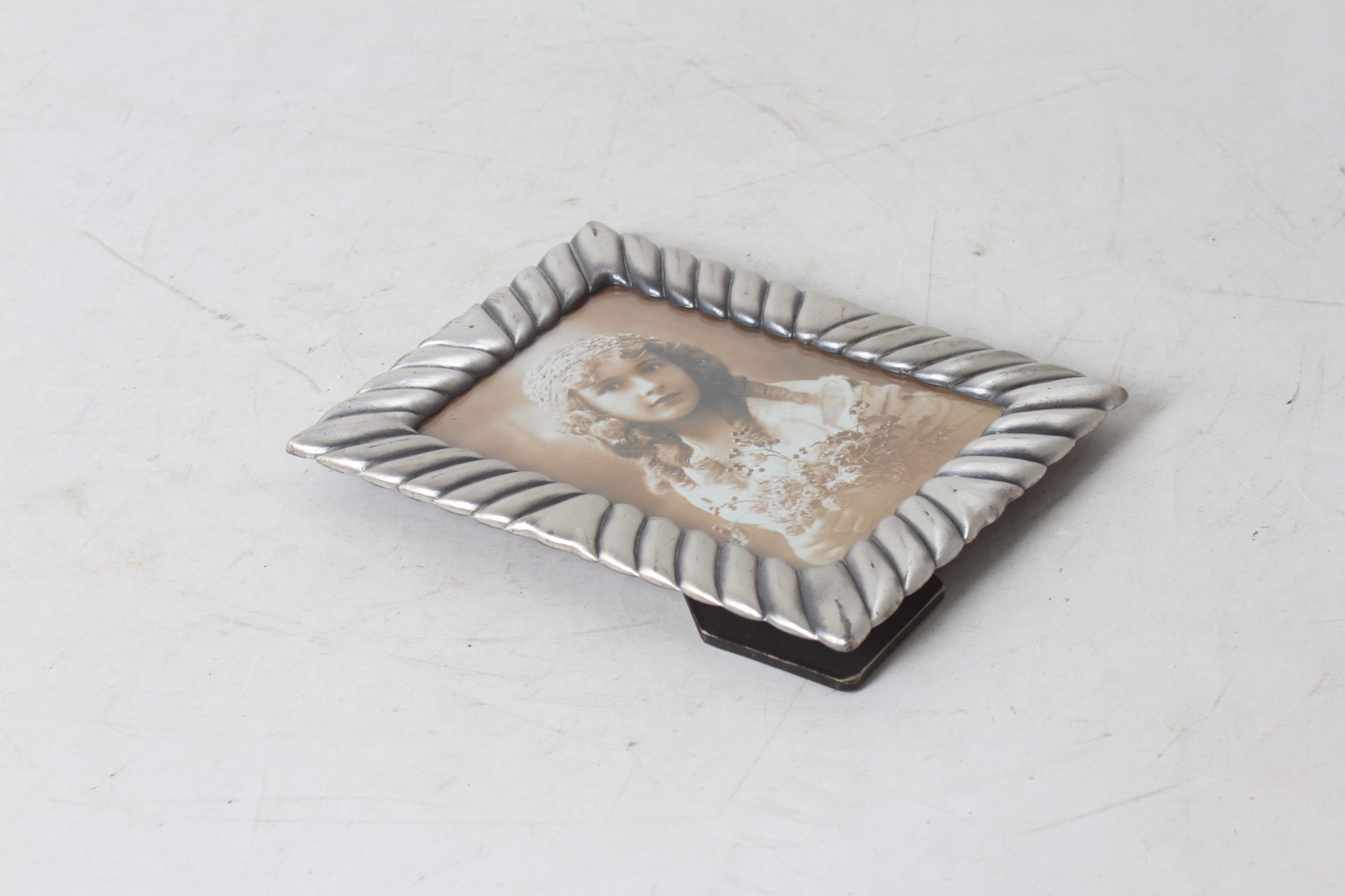 Petit cadre photo en métal couleur argenté.