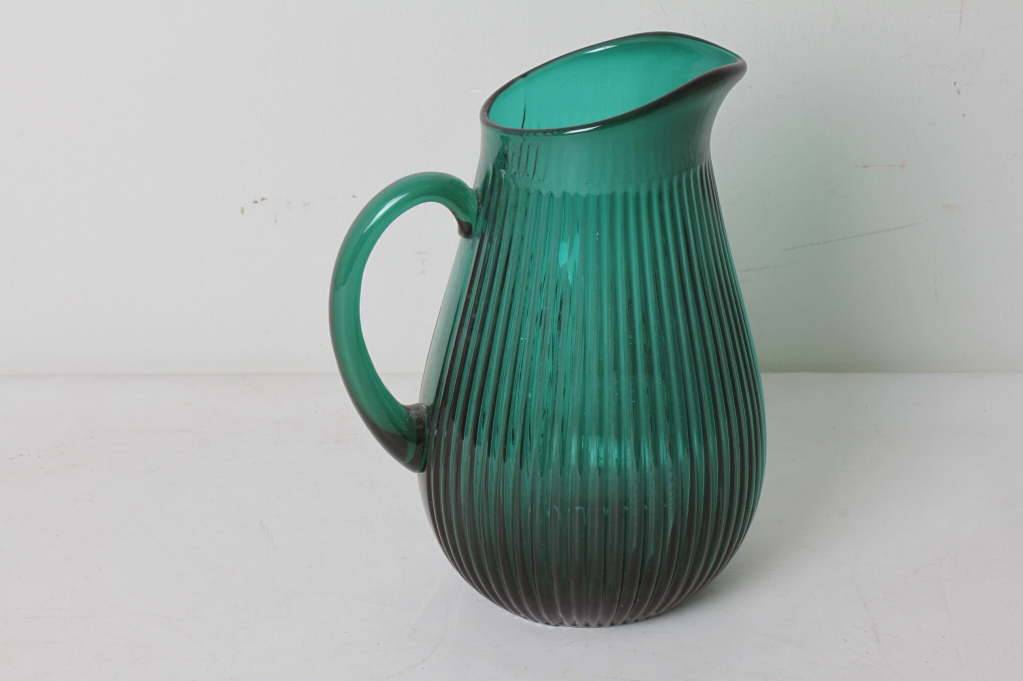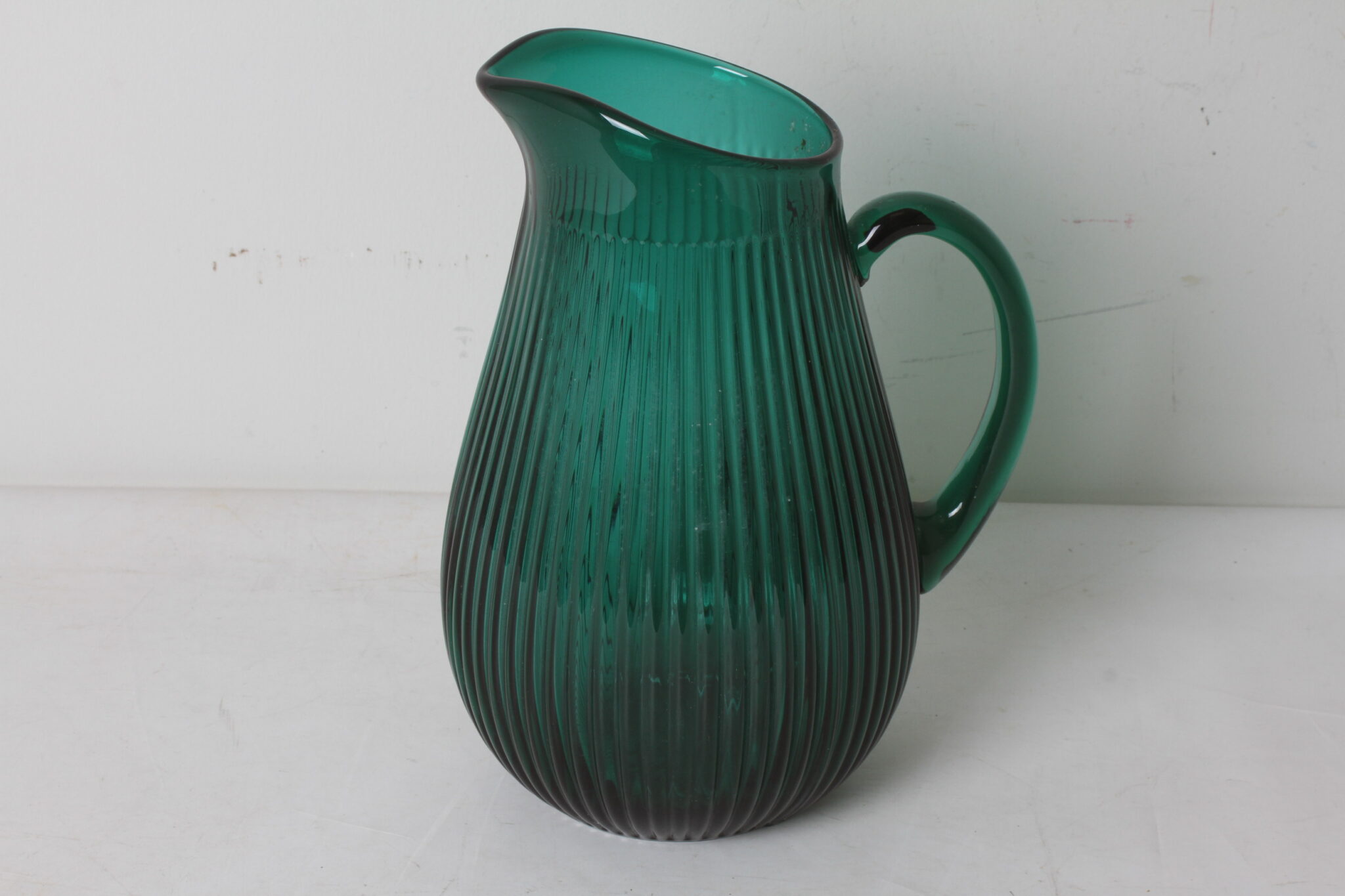 Carafe à eau ou vase en verre de couleur verte.