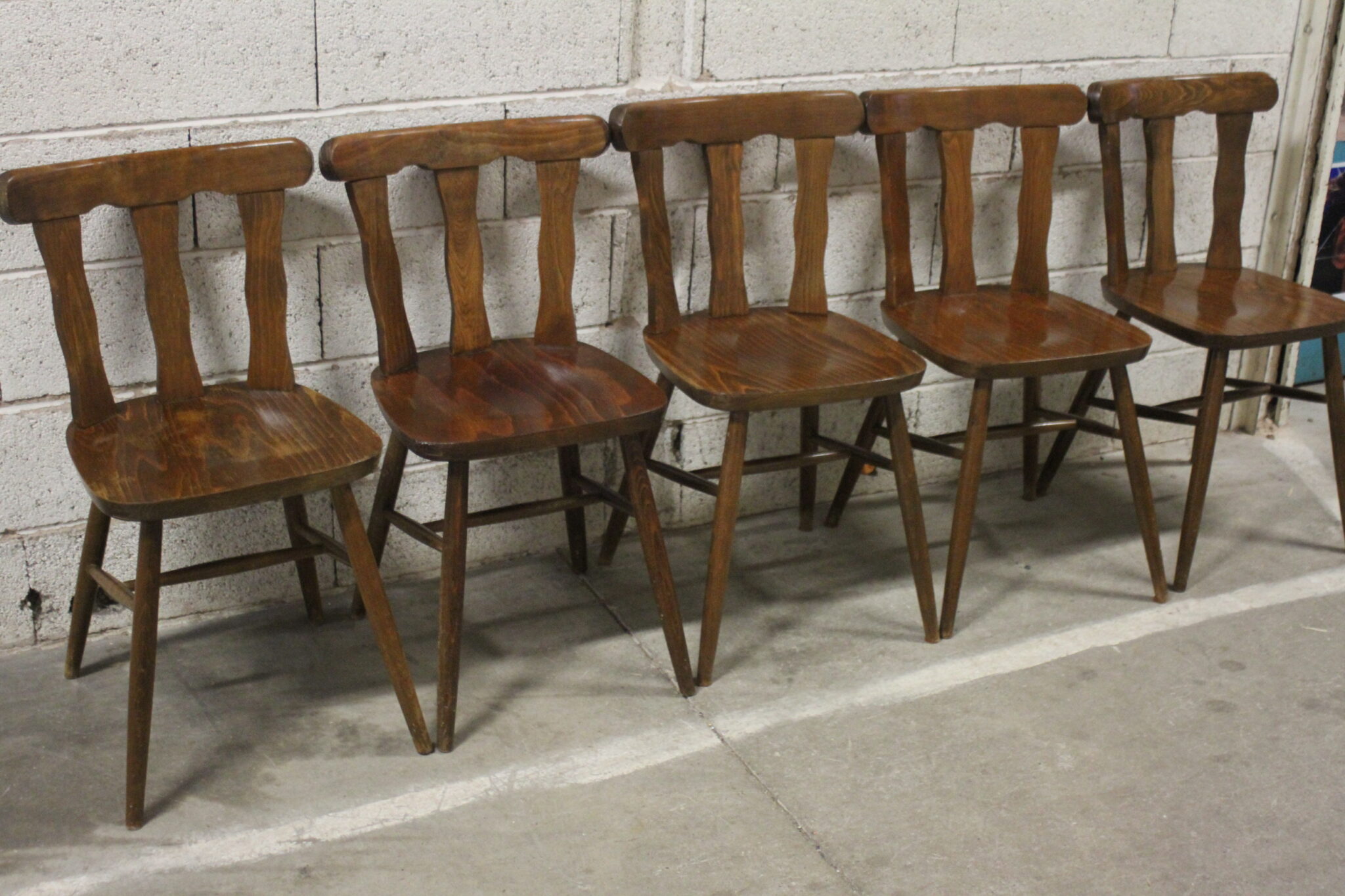 Série de 5 anciennes chaises bistrot en bois foncé.