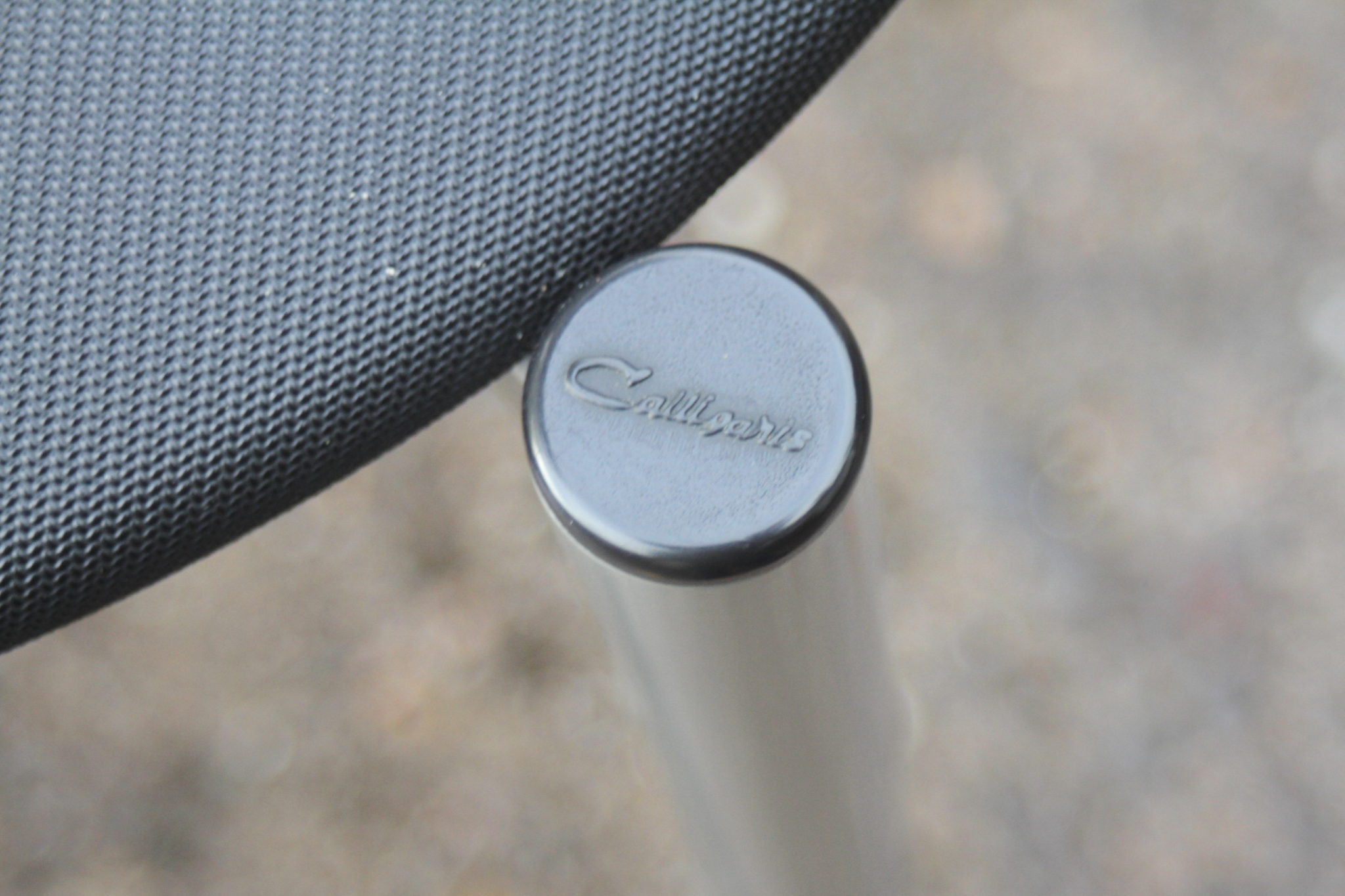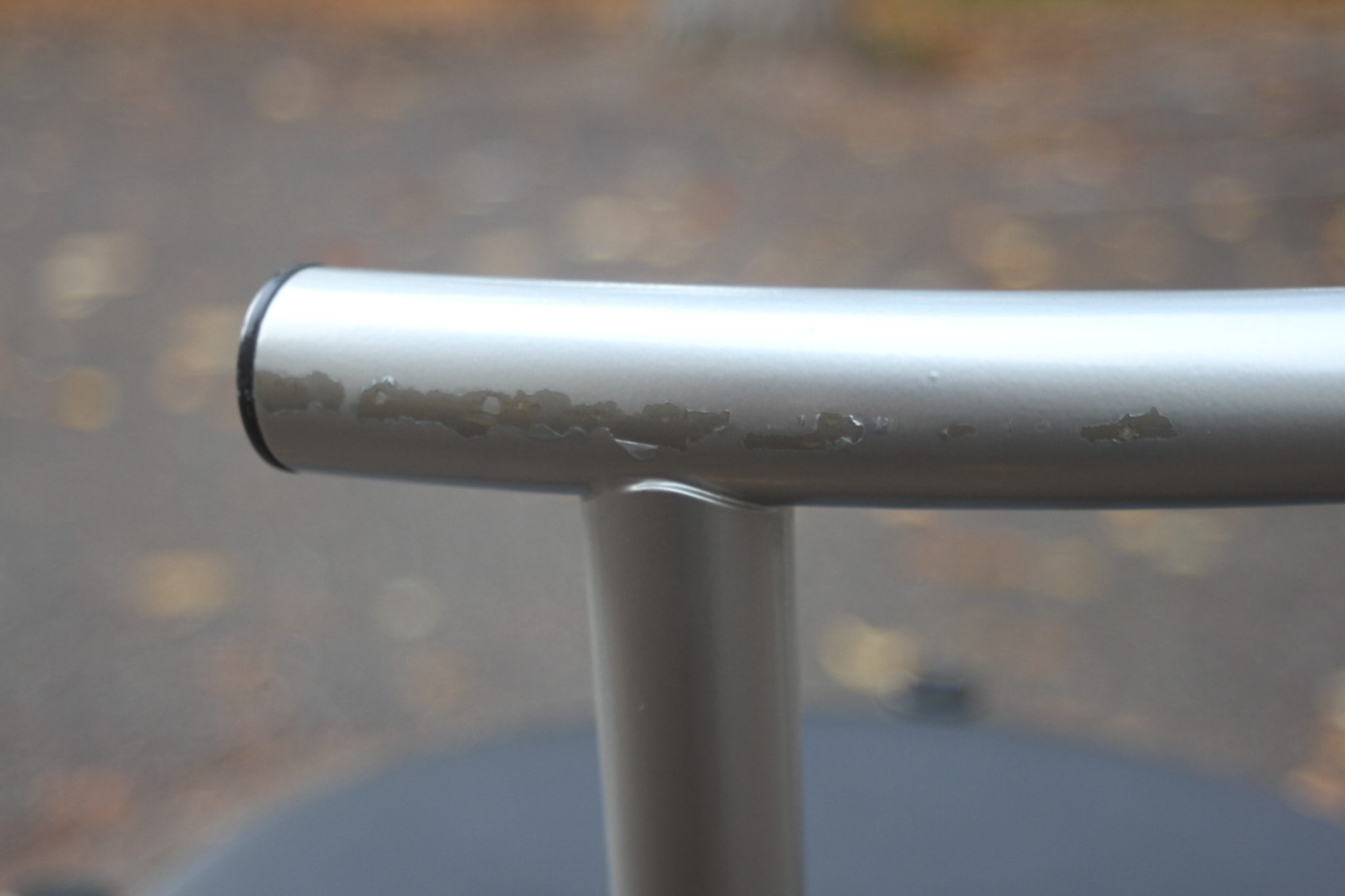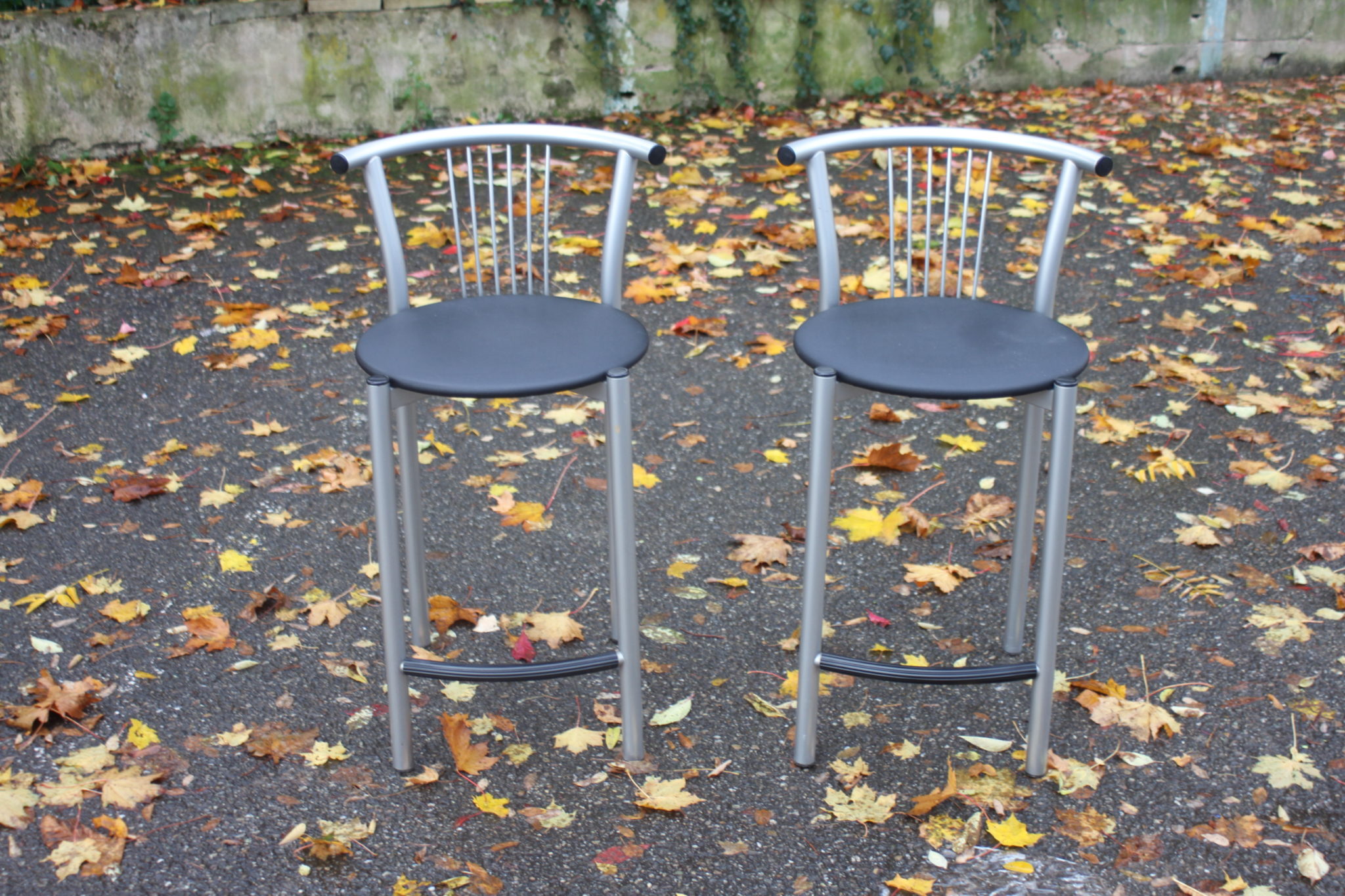 Chaises sur strucuture en métal avec assise ronde de couleur noire.