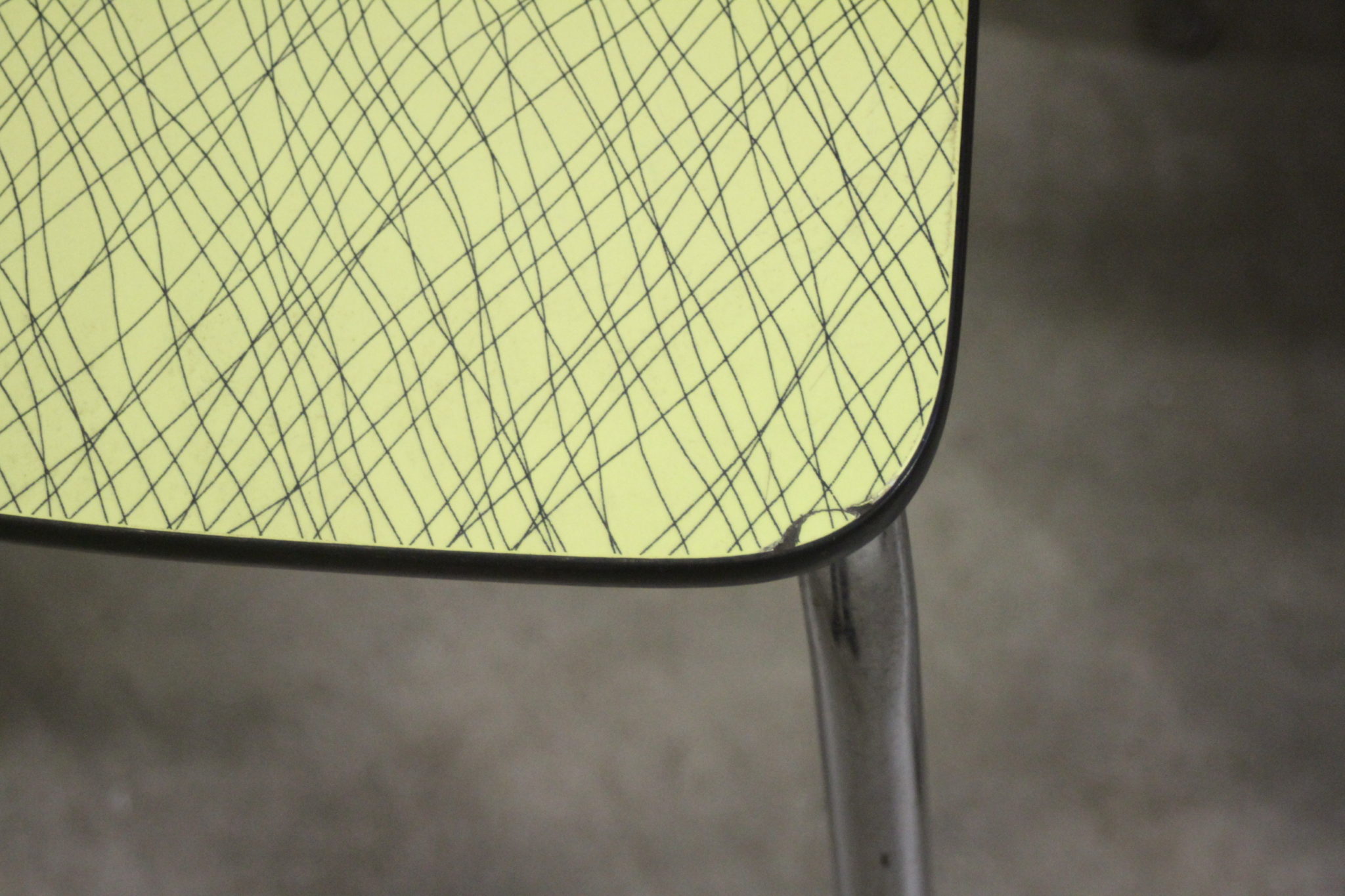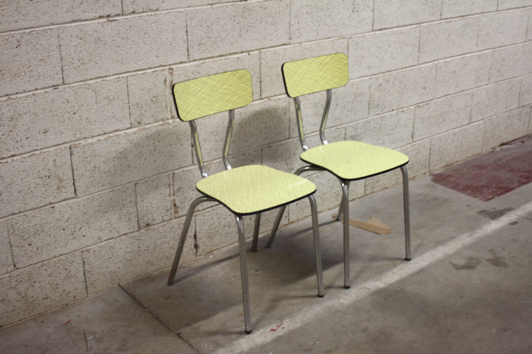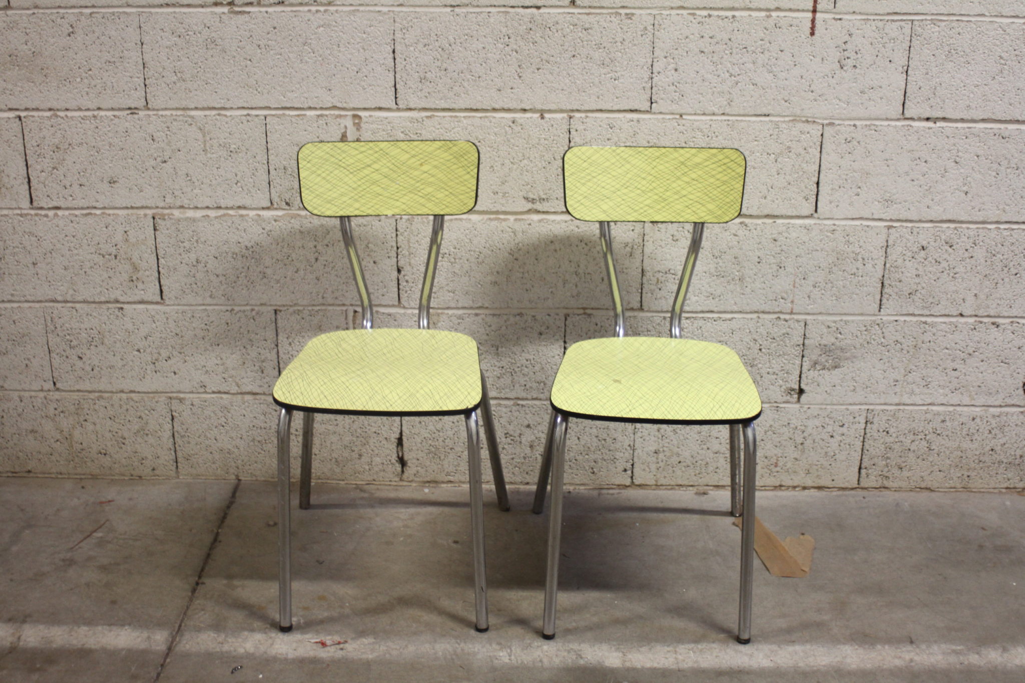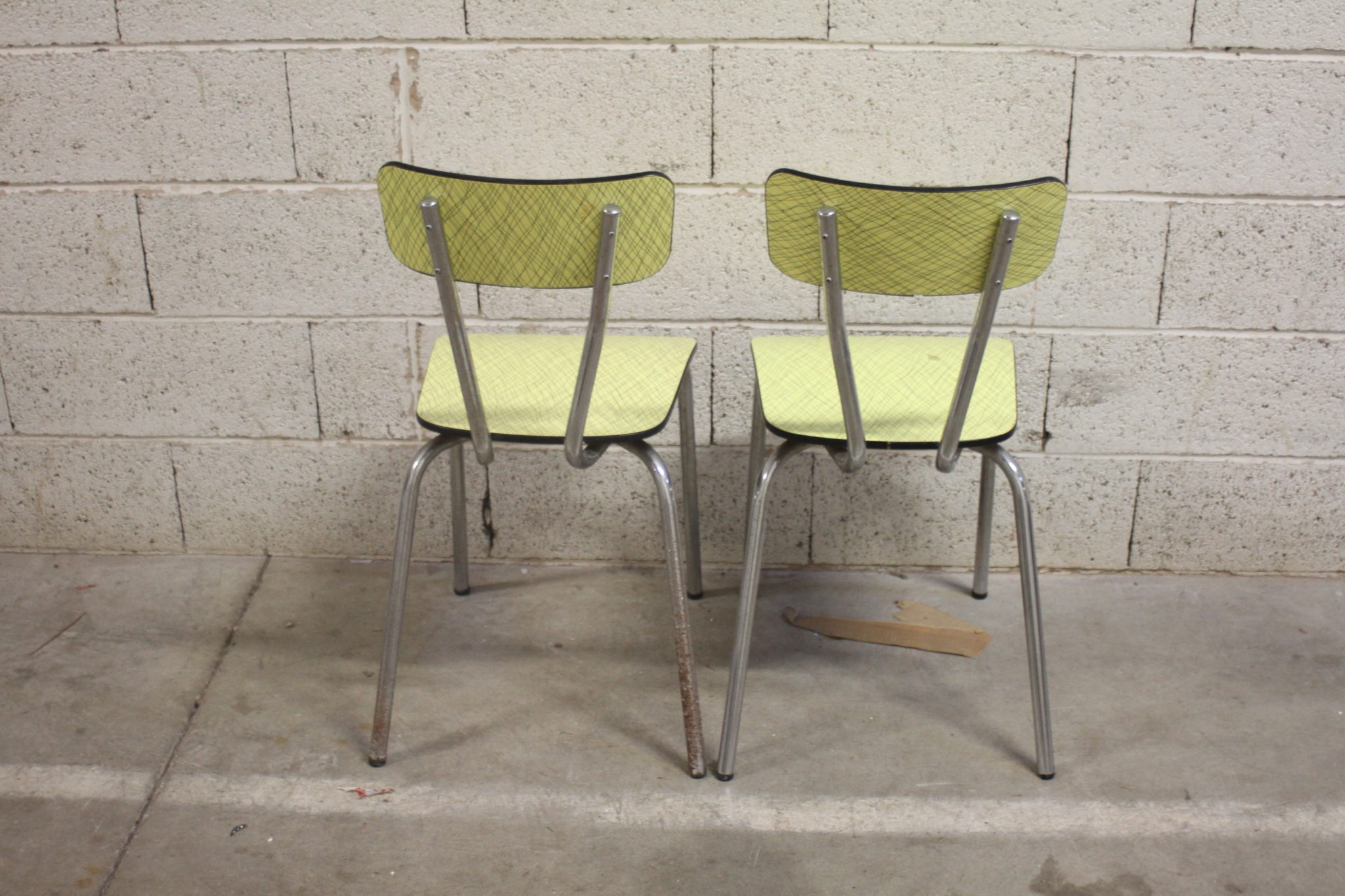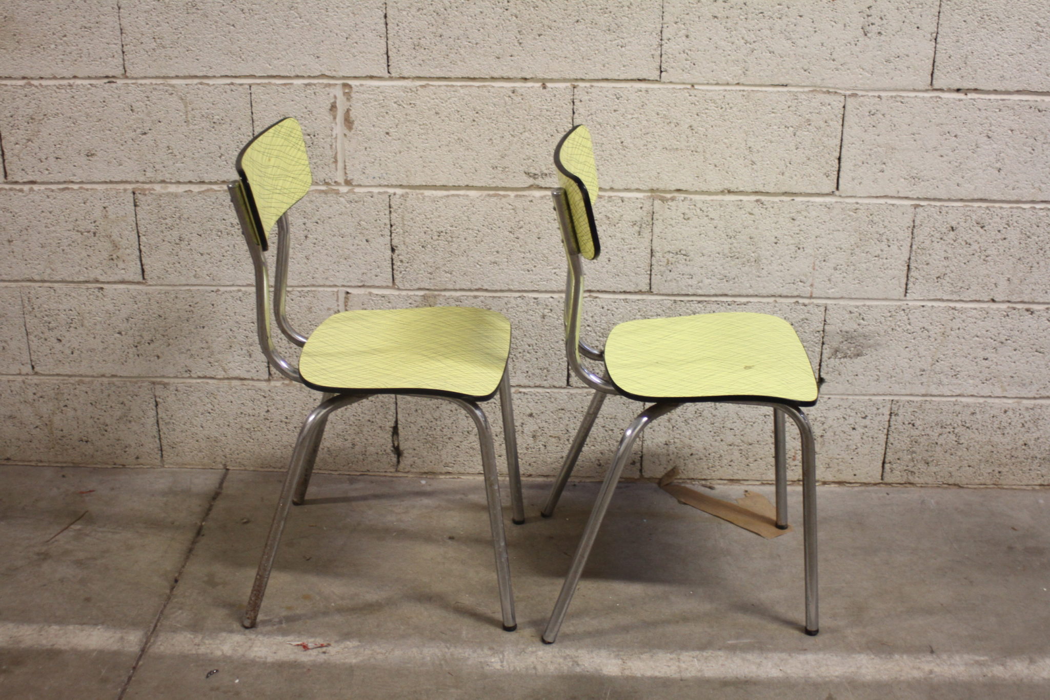 Paire de chaises vintage et design en formica jaune et métal chromé.