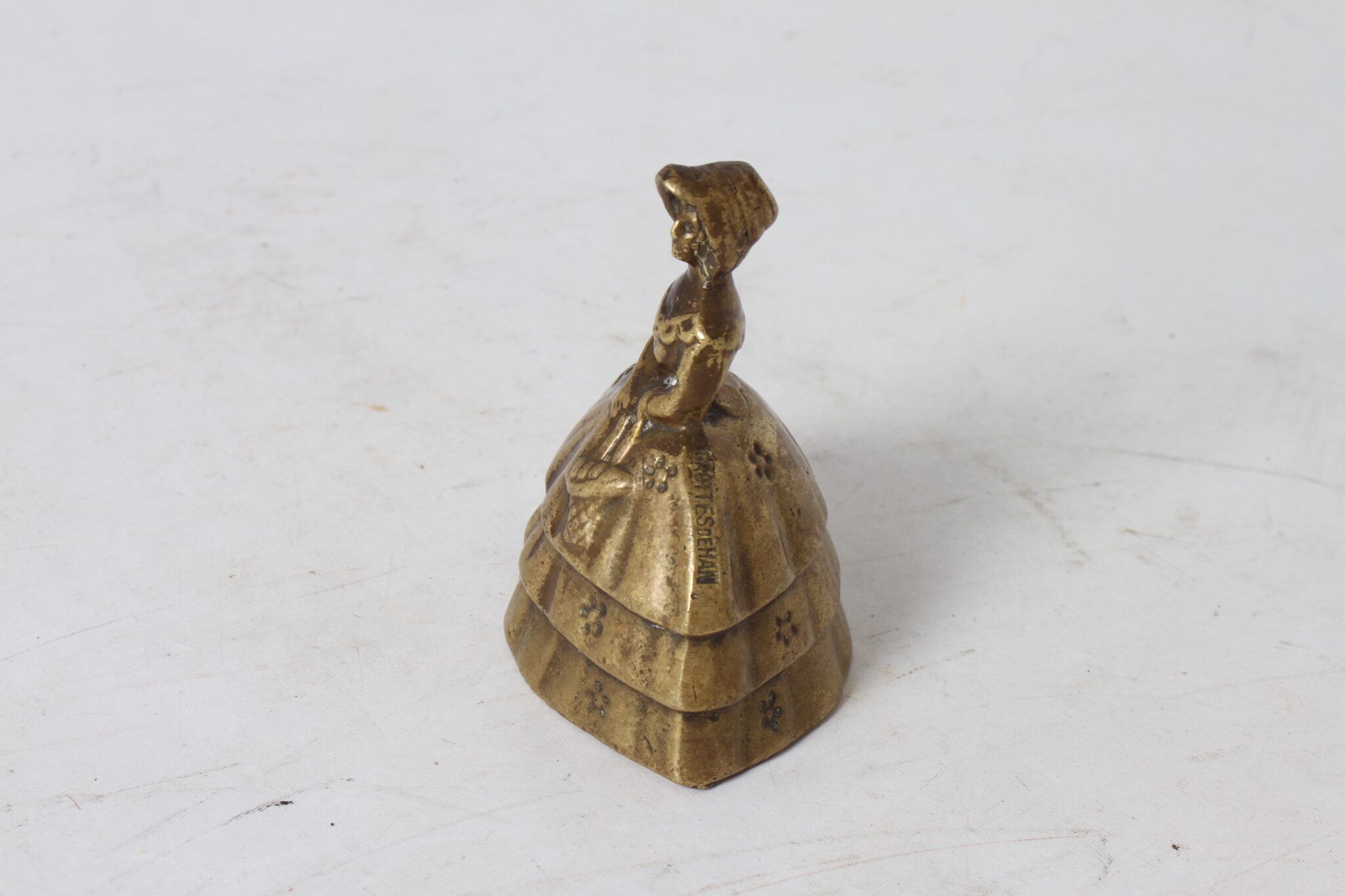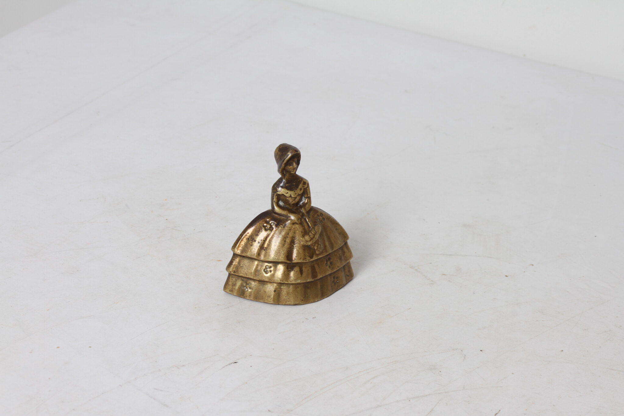Clochette de table en laiton doré représentant une femme avec son panier.