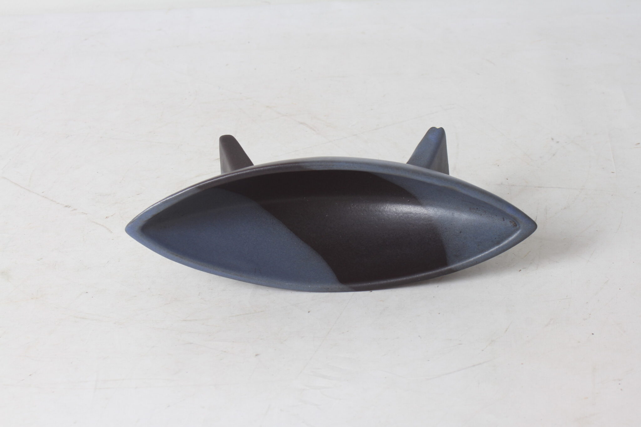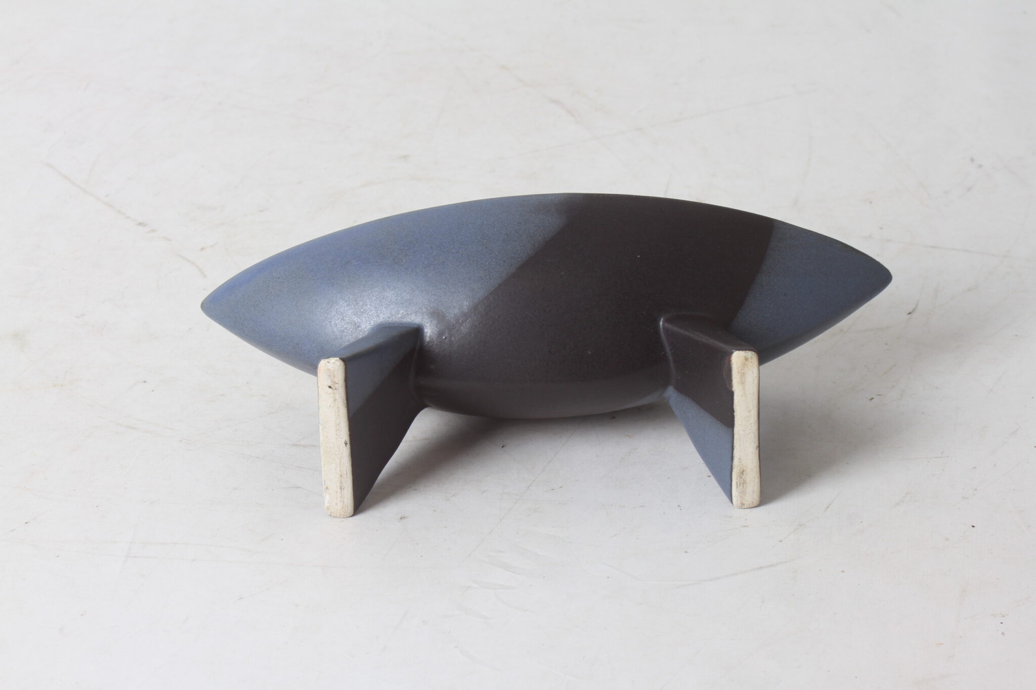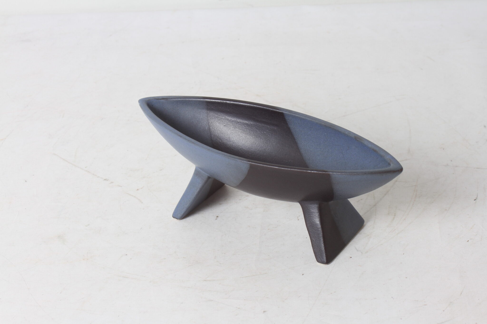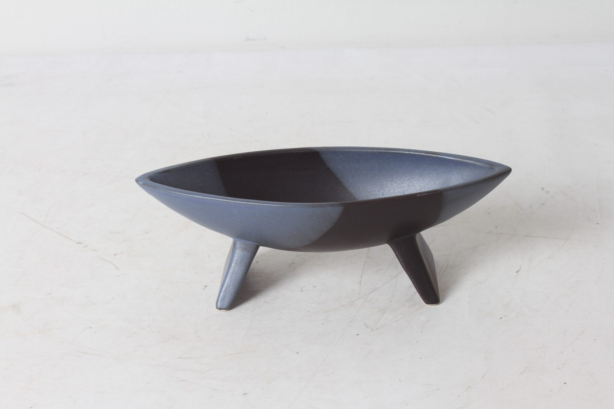 Coupelle décorative sur pieds en céramique bleue et noire.