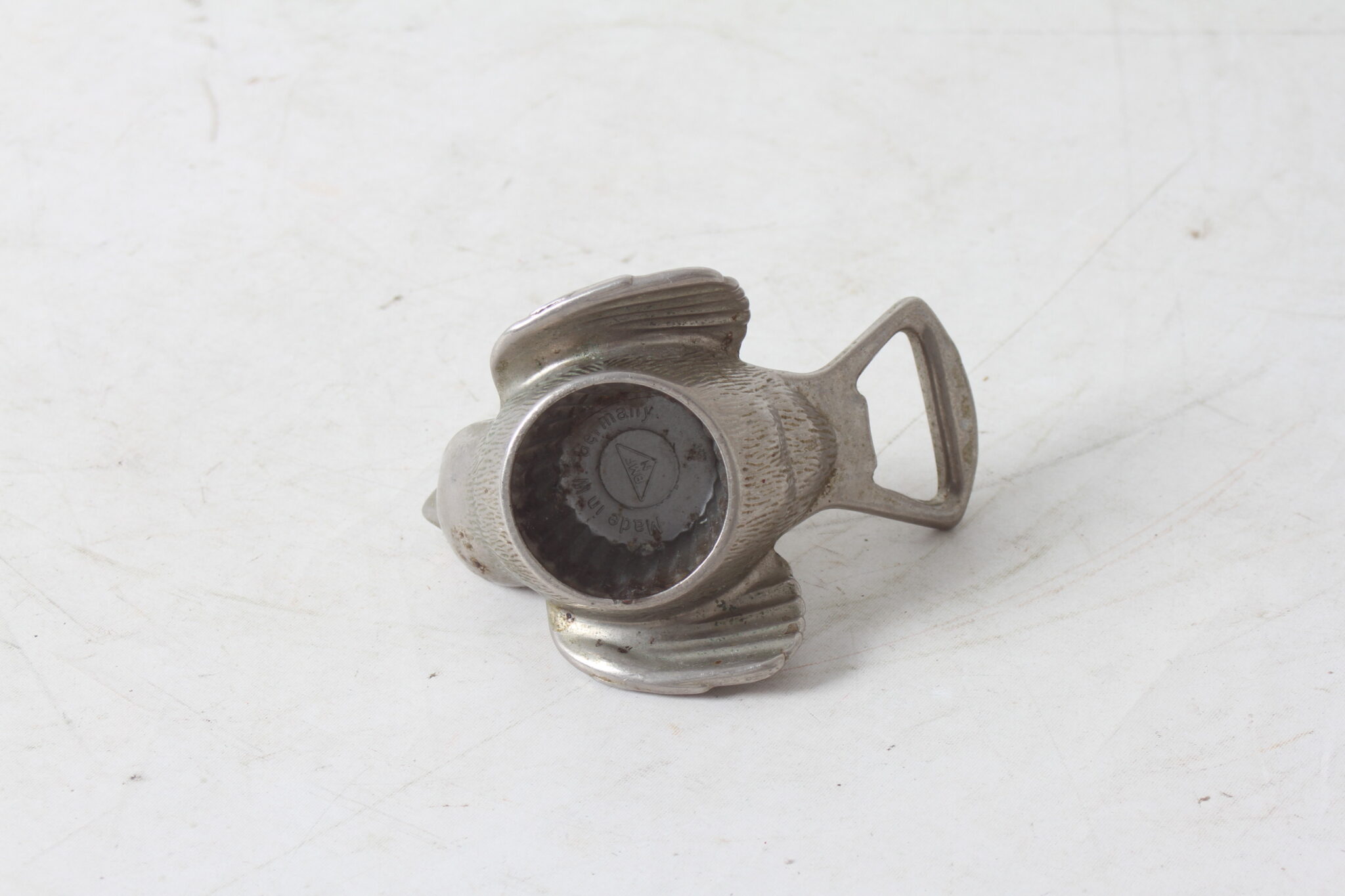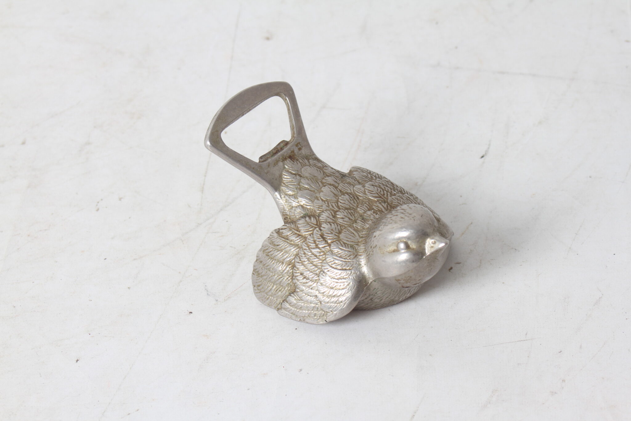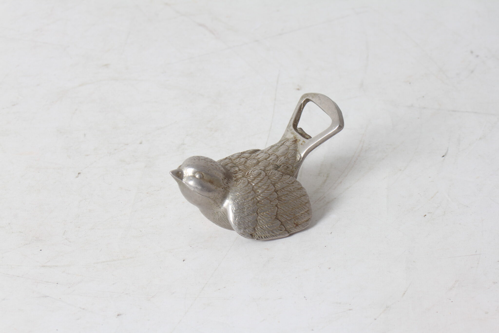 Décapsuleur oiseau en métal argenté de la marque BMF.