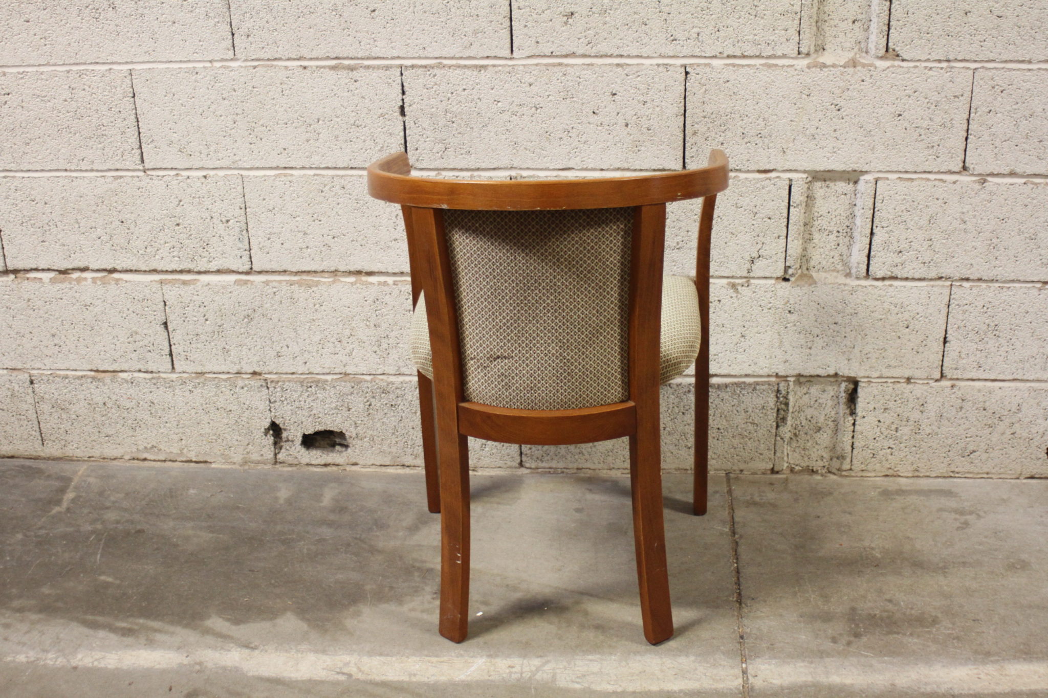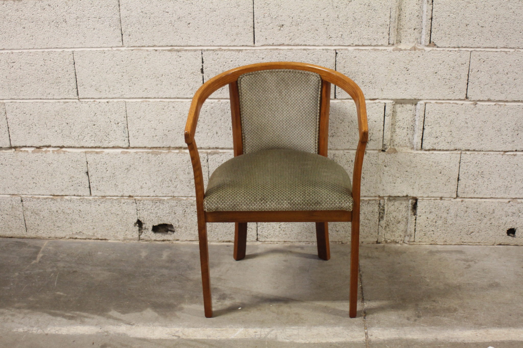 Chaise, fauteuil rond en bois et tissu velours au design scandinave.