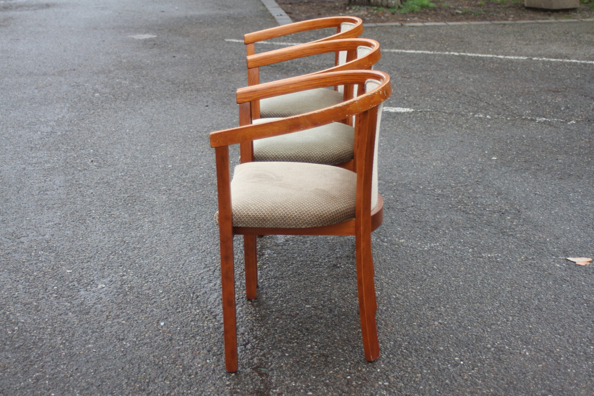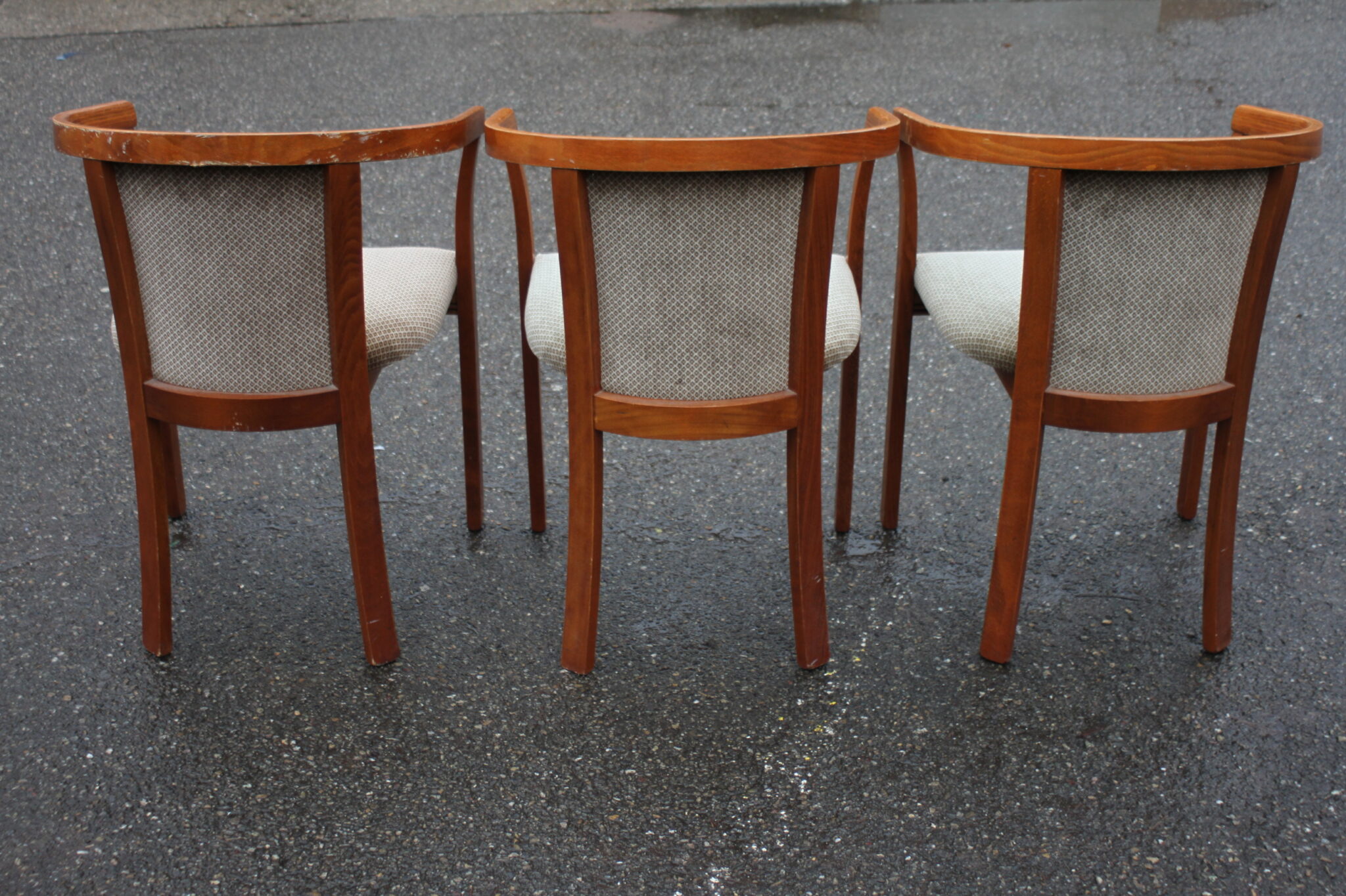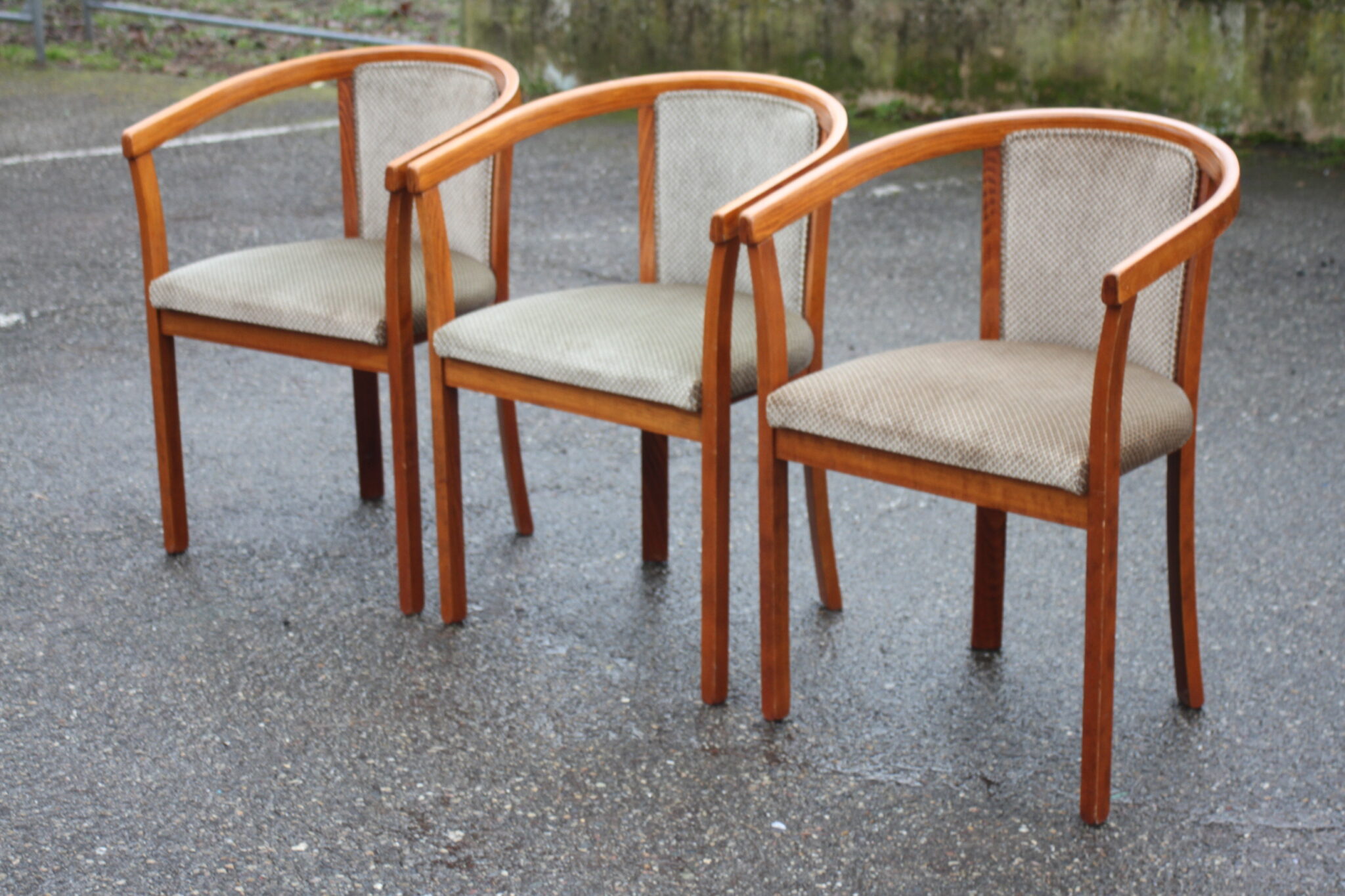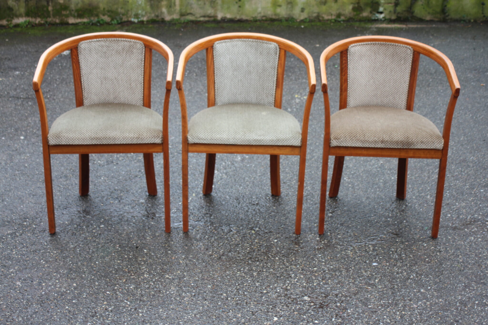 Suite de 3 fauteuils visiteurs en bois et tissu velours.