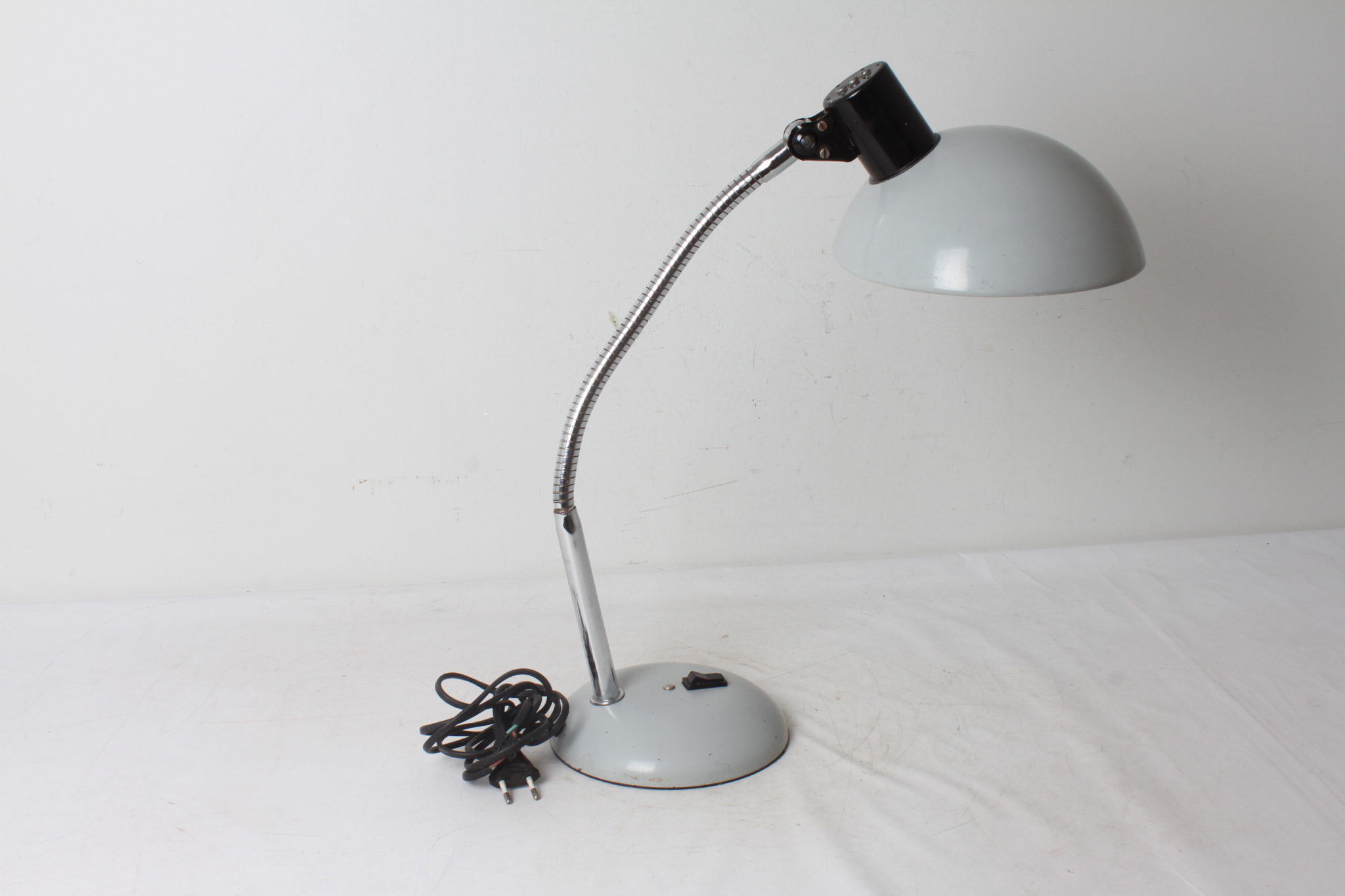 Grande lampe ancienne, bureau industrielle en métal,  flexible en inox.