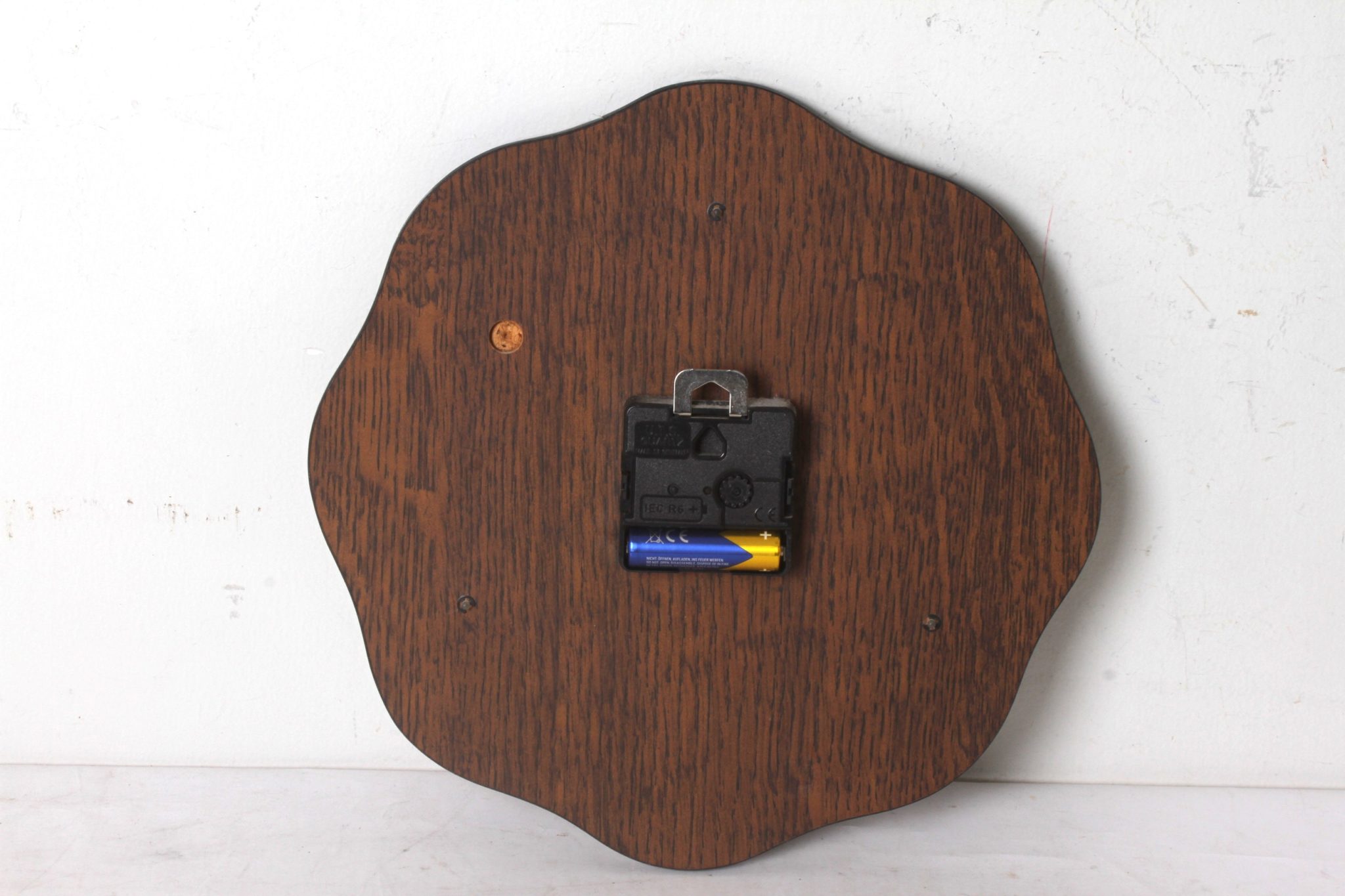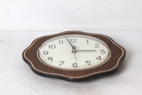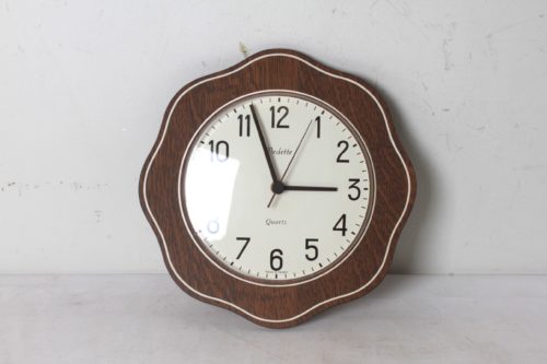 Horloge murale vintage de la marque Vedette, en formica brun.