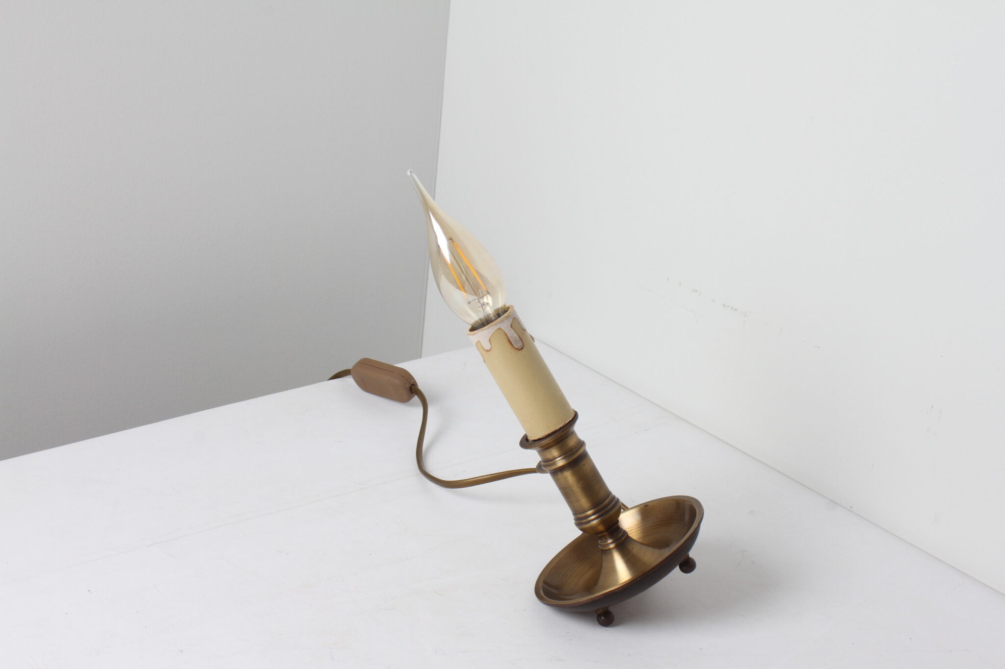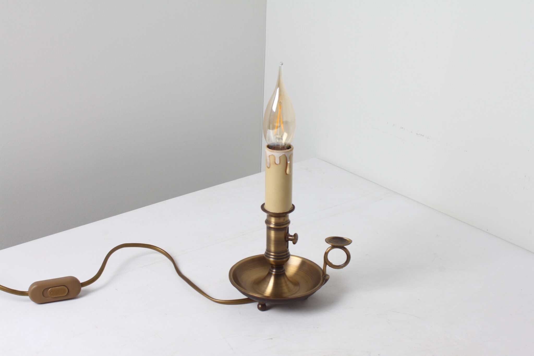 Petite lampe bougeoir en laiton doré.
