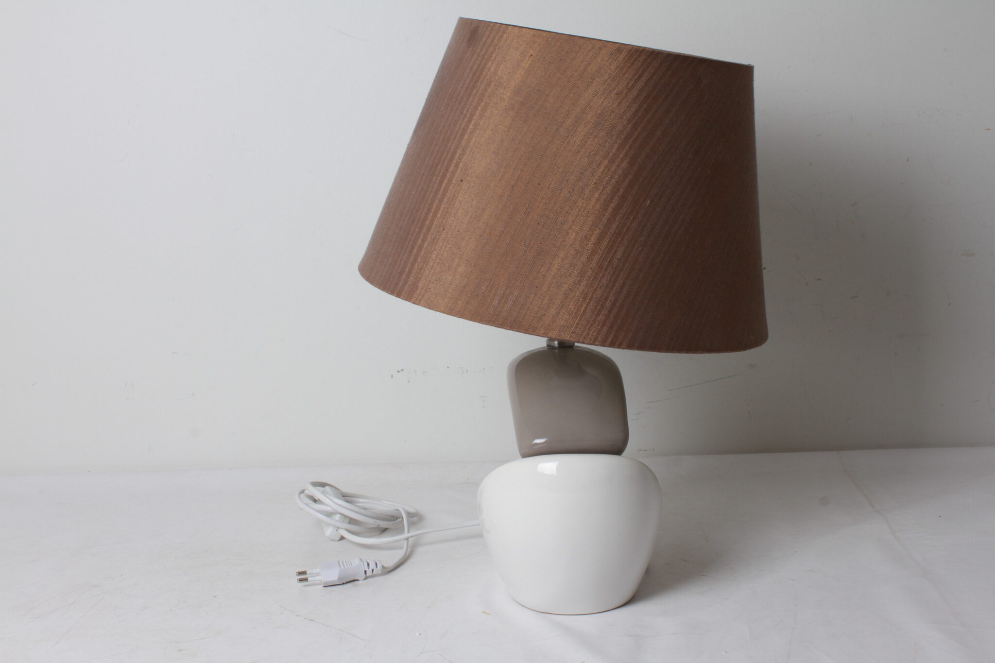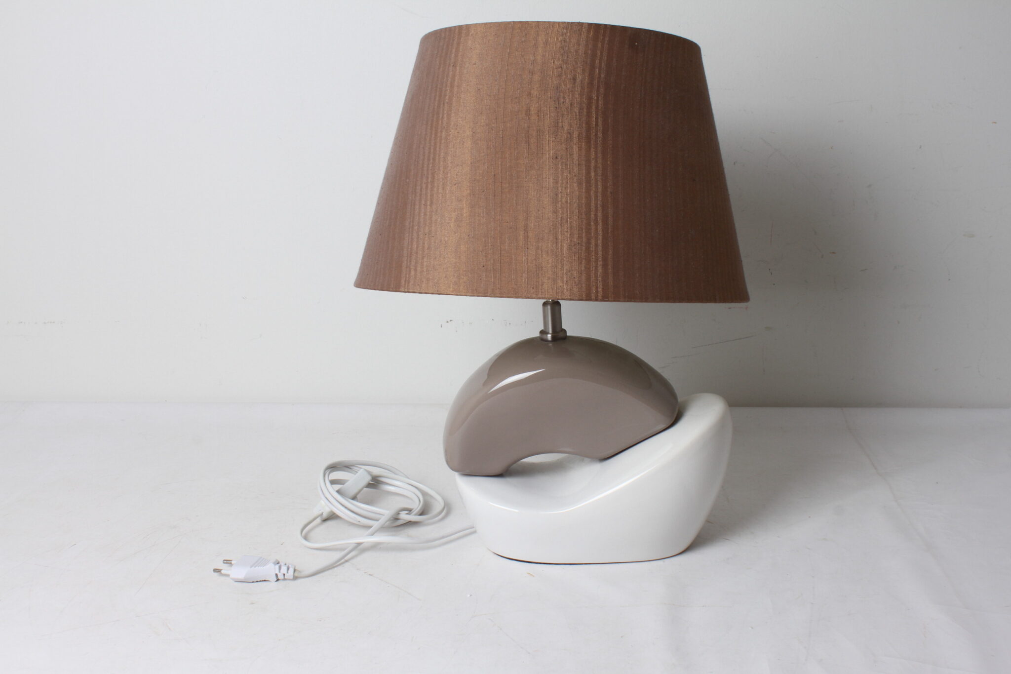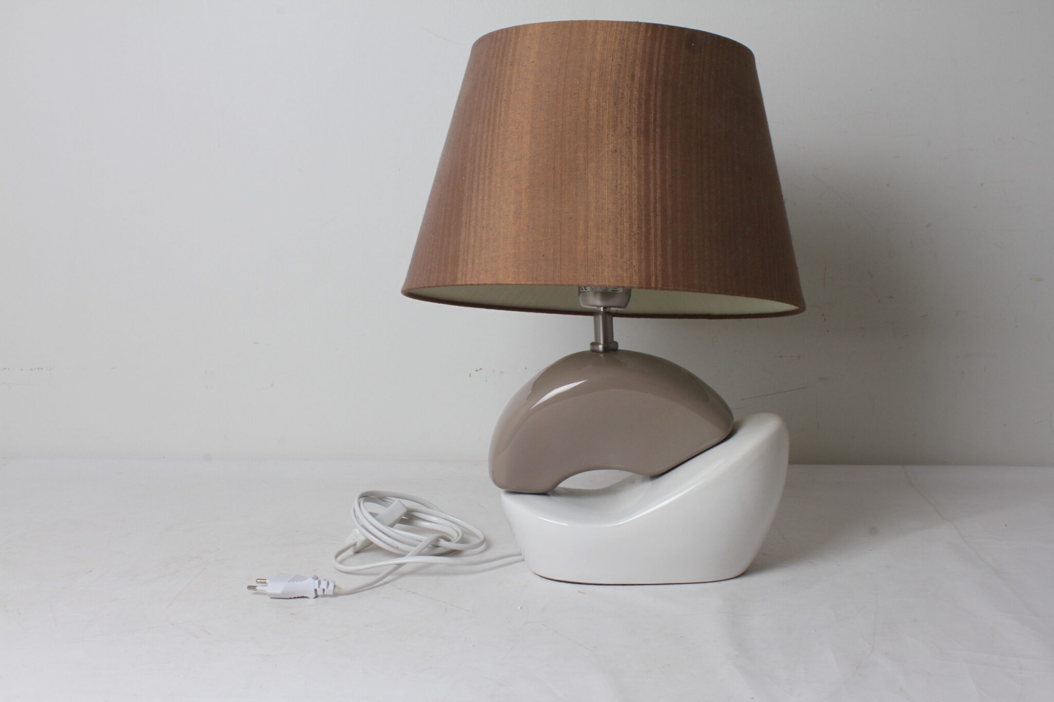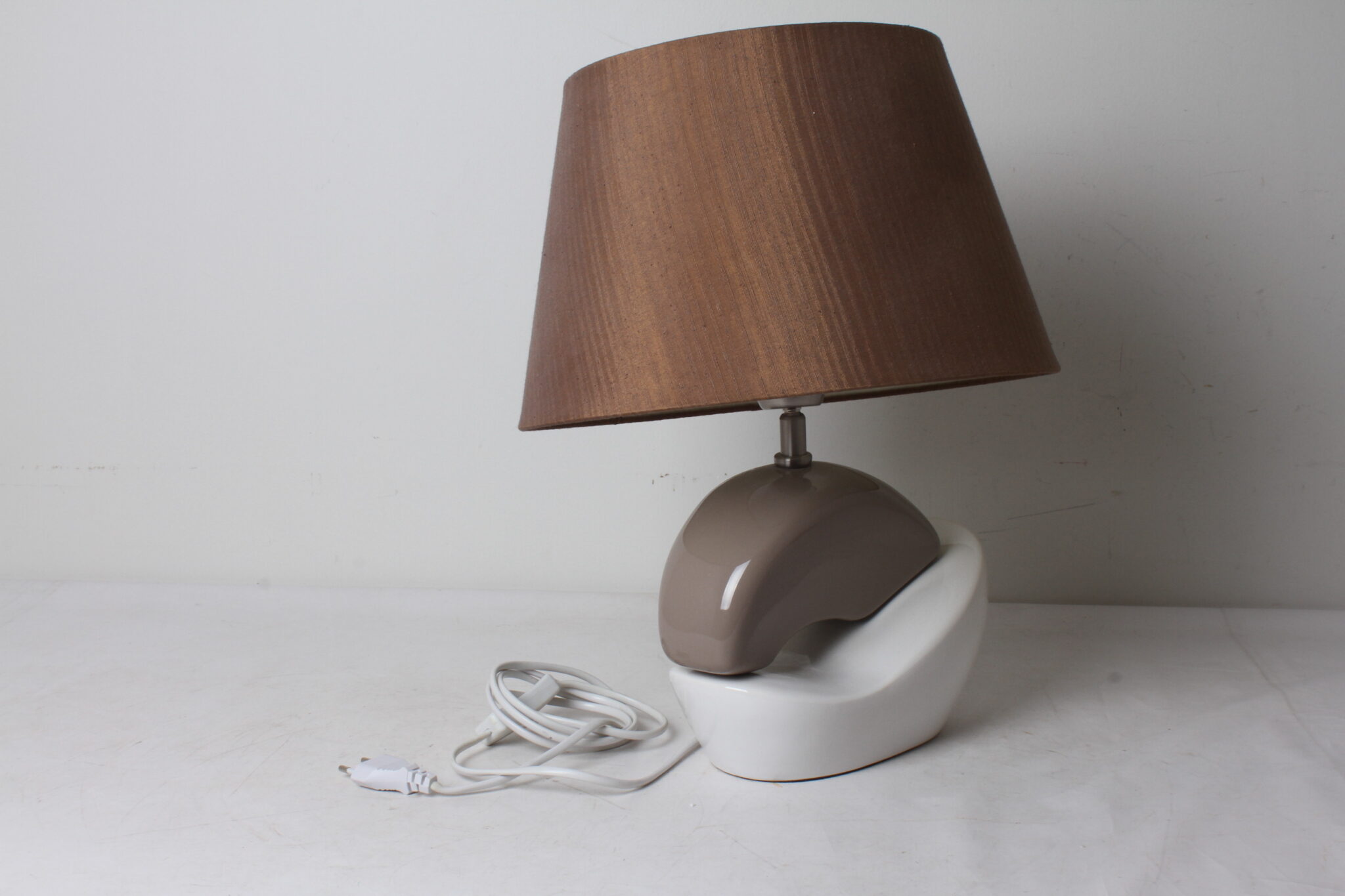 Lampe avec abat-jour conique orientable brun.