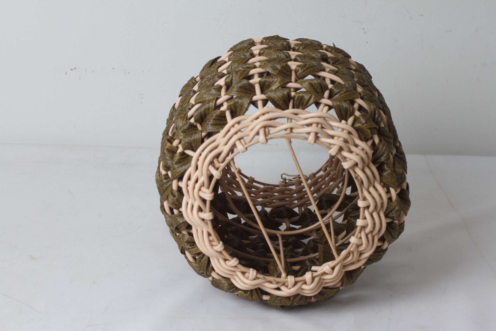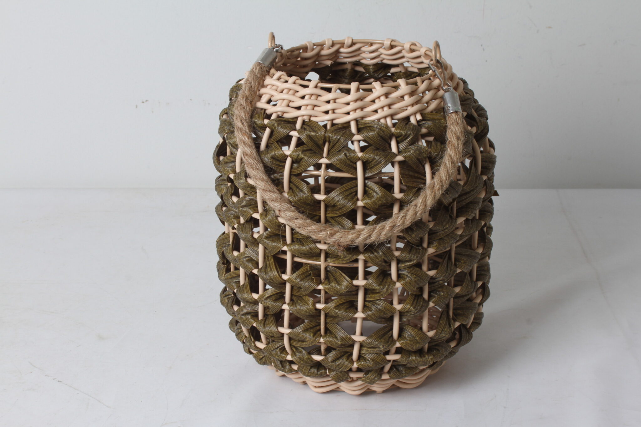 Lanterne décorative à bougie en plastique effet rotin.