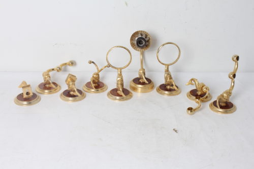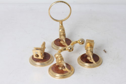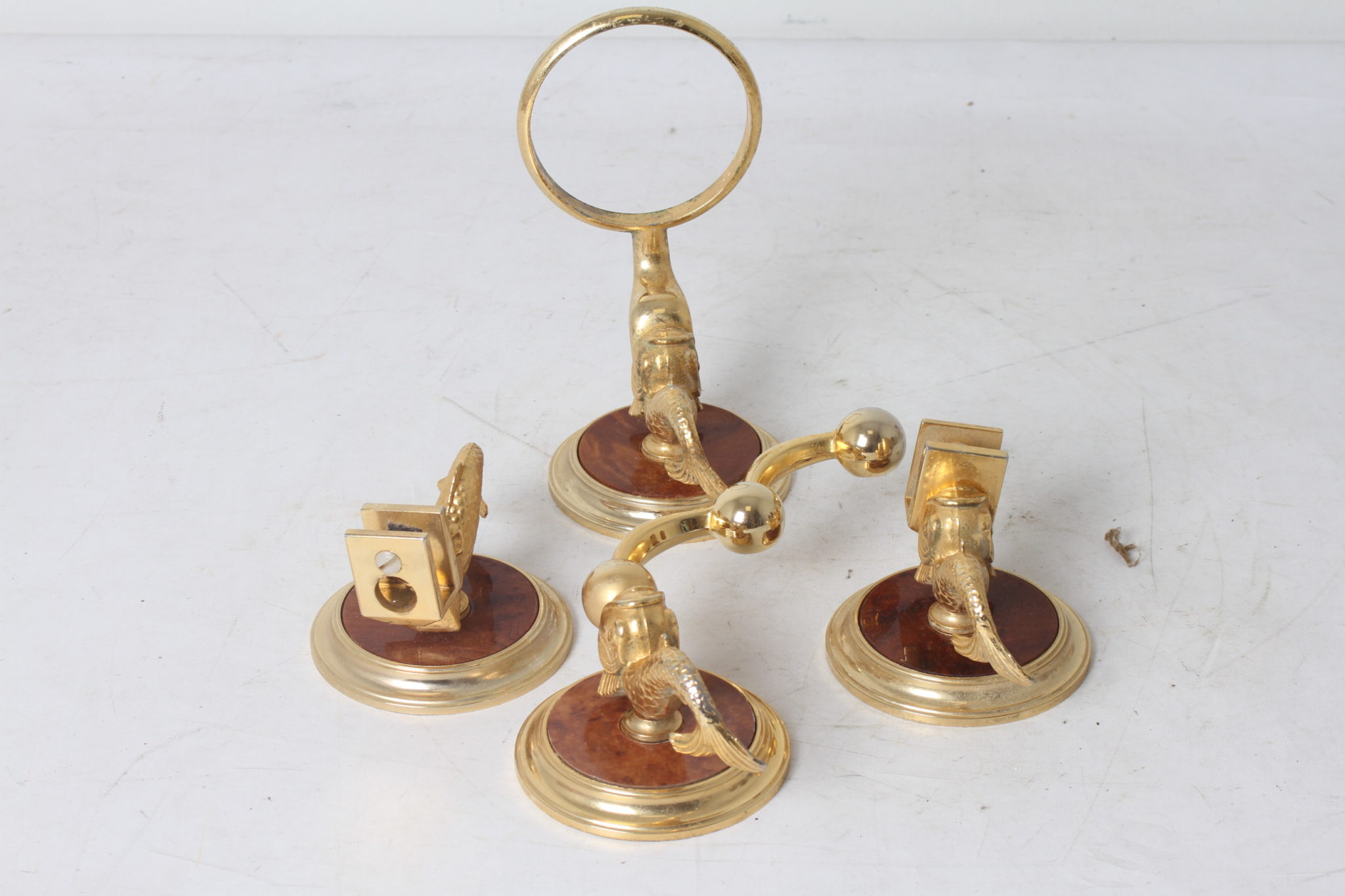 Lot d’accessoires de salle de bain de style Art Déco en laiton doré.