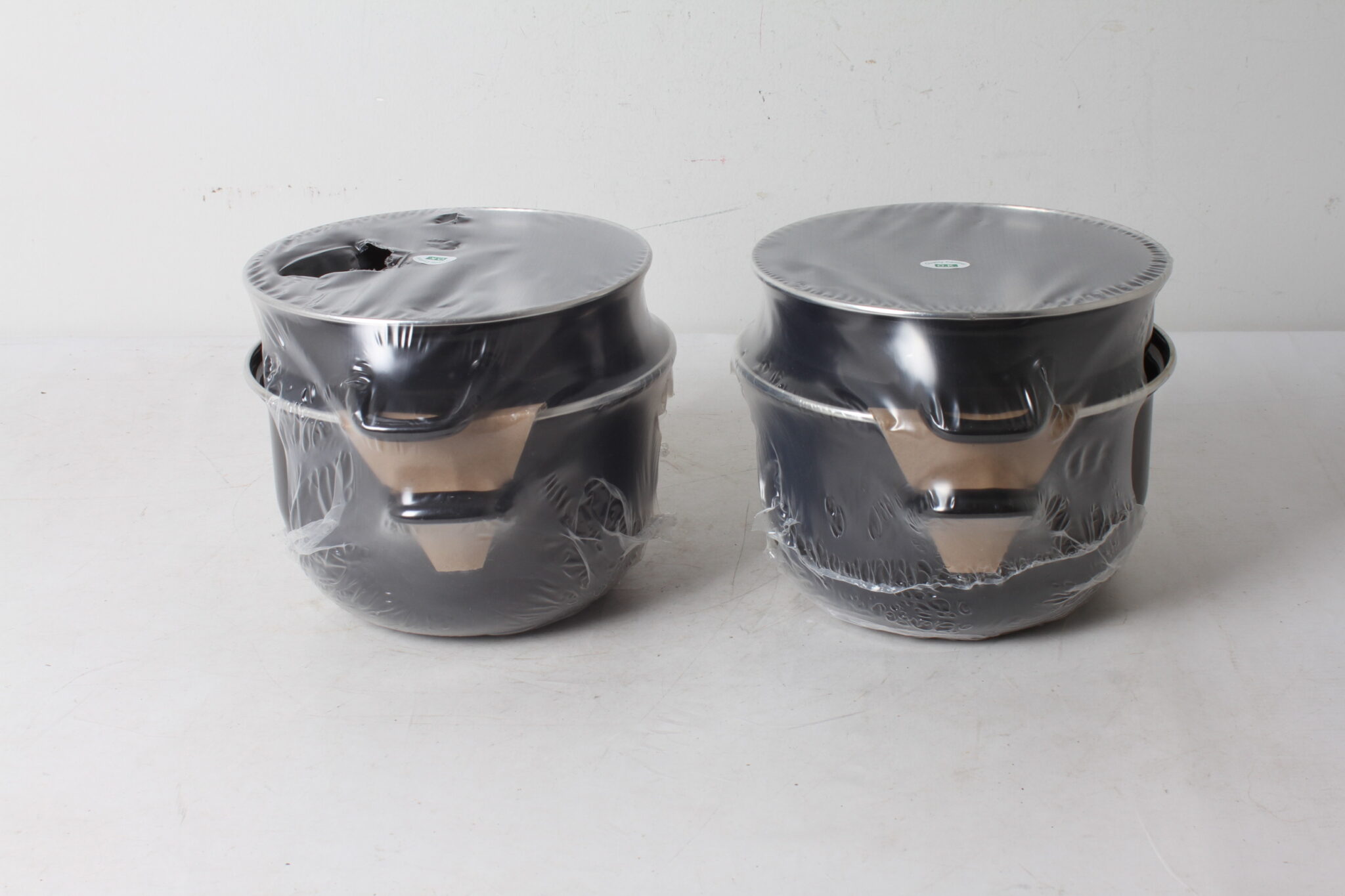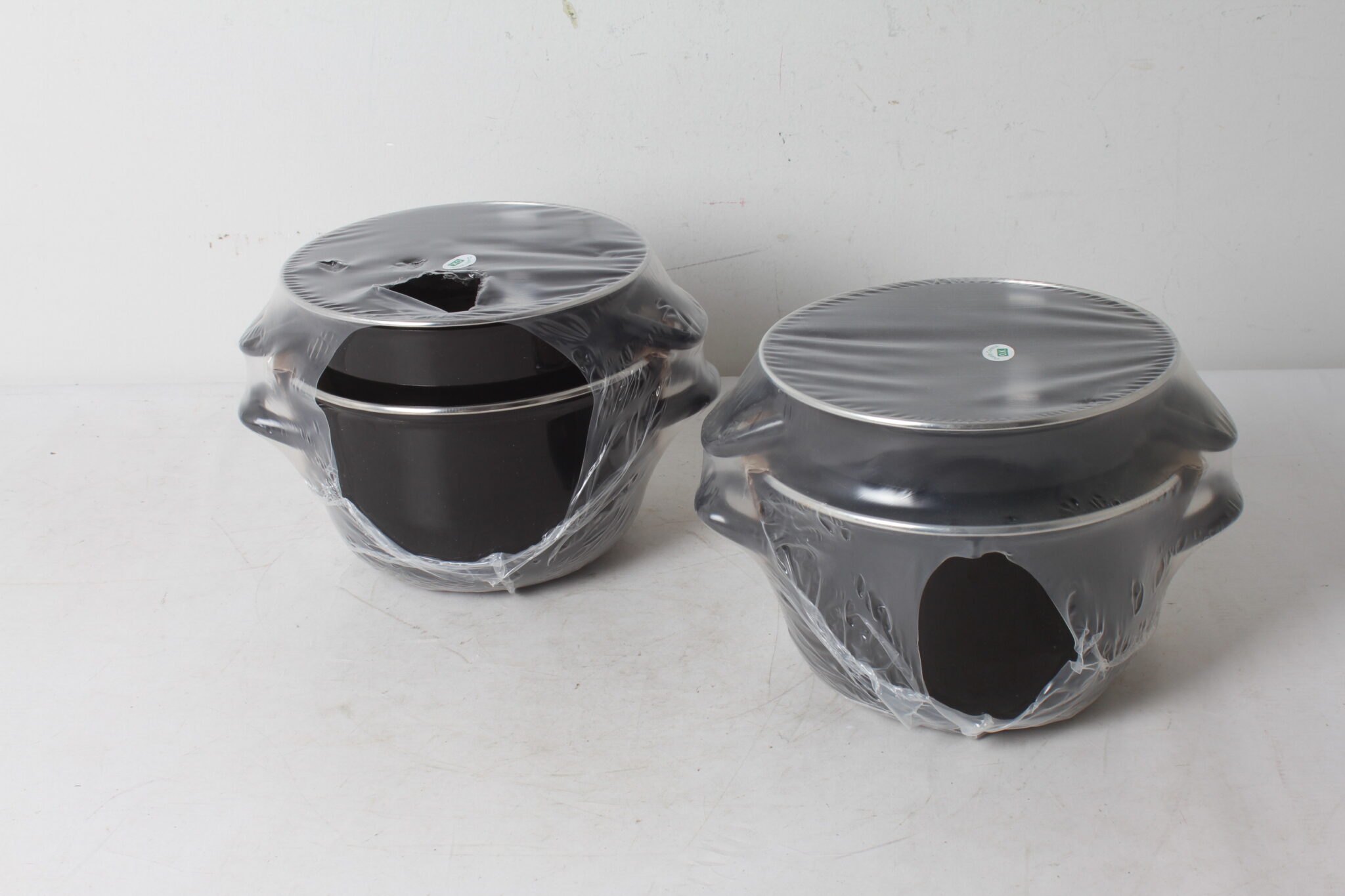 Paire de marmites à moules encore sous blister.