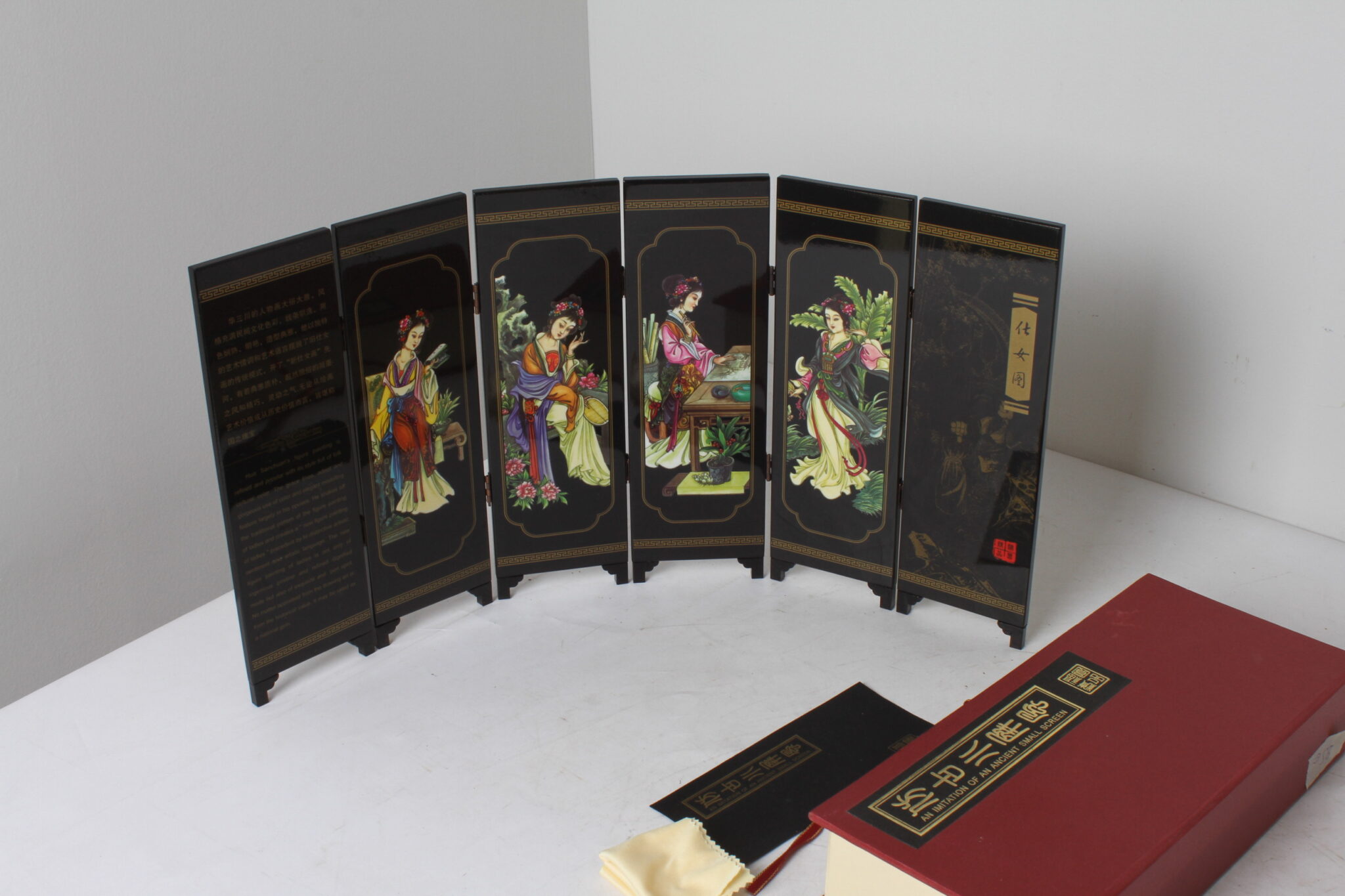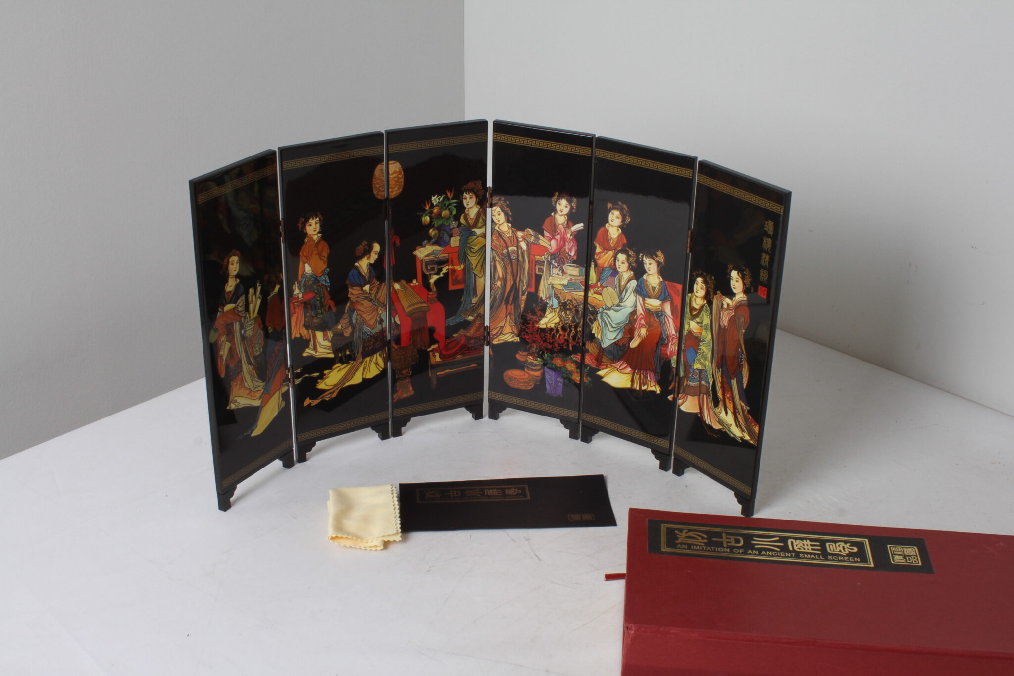 Mini paravent décoratif chinois à 6 panneaux, dans sa boîte.