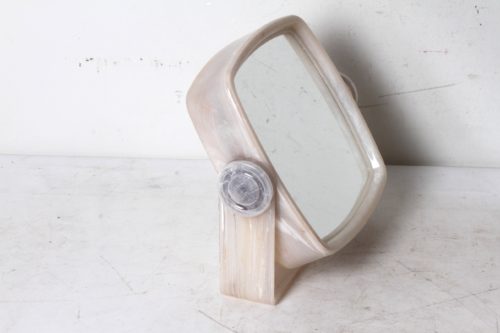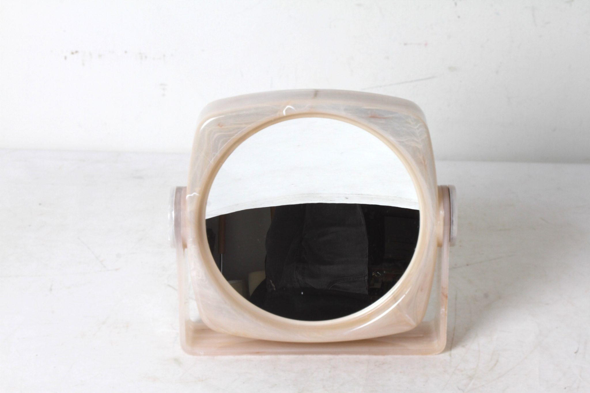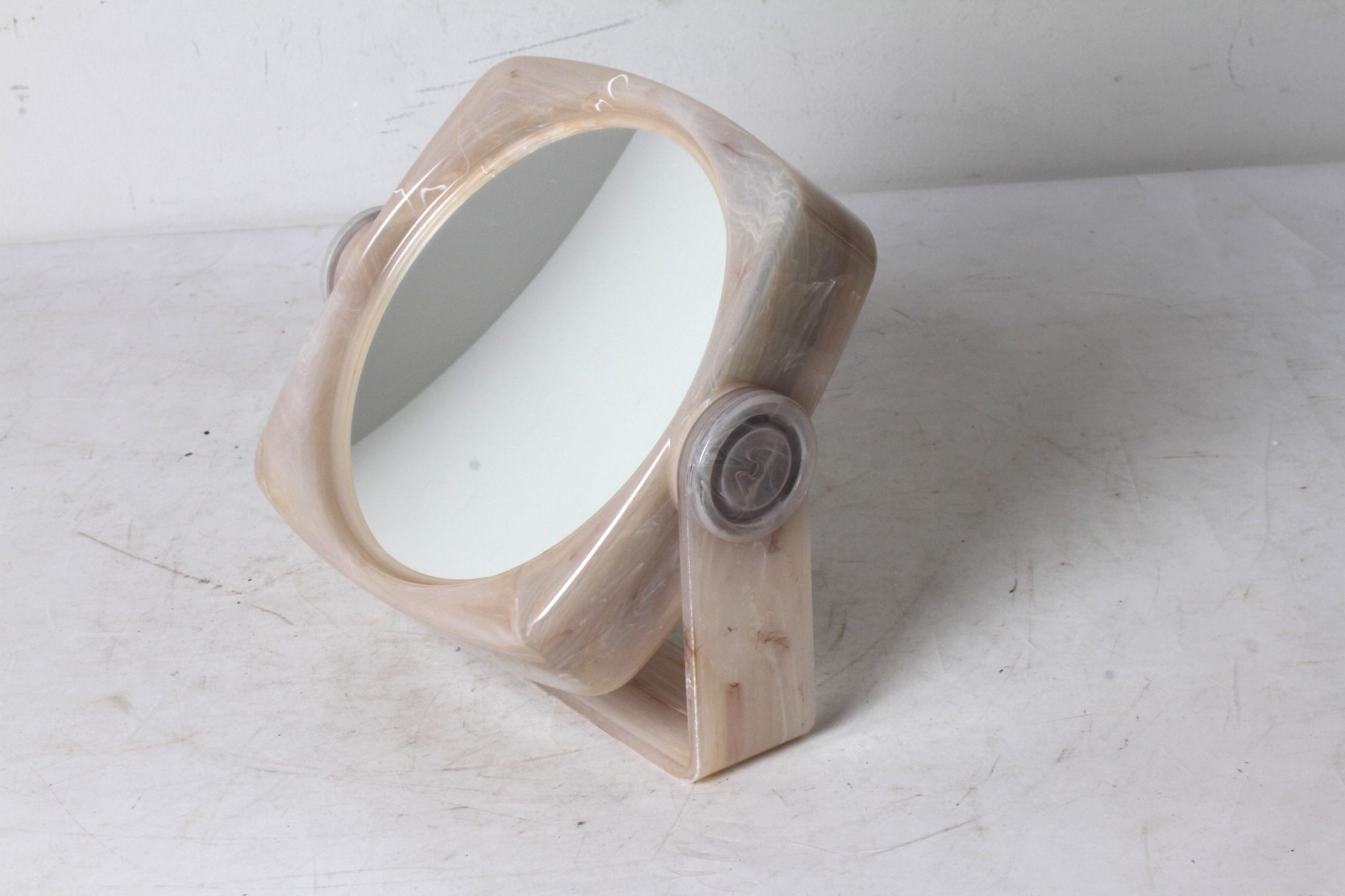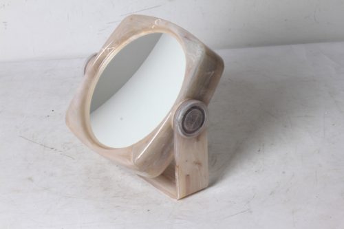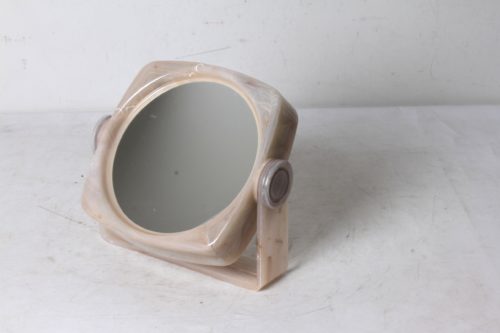 Miroir pivotant vintage en plastique marbré beige.