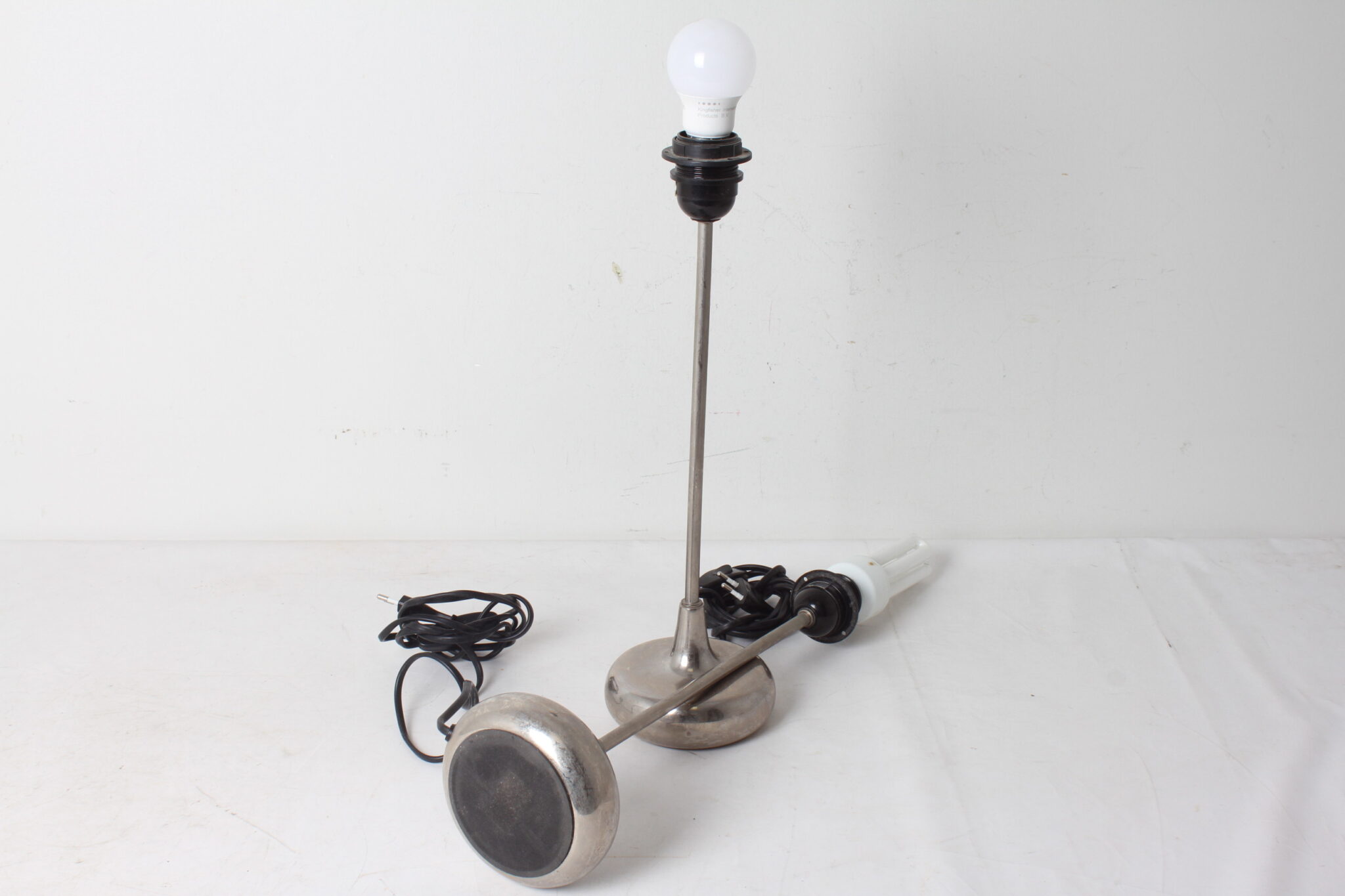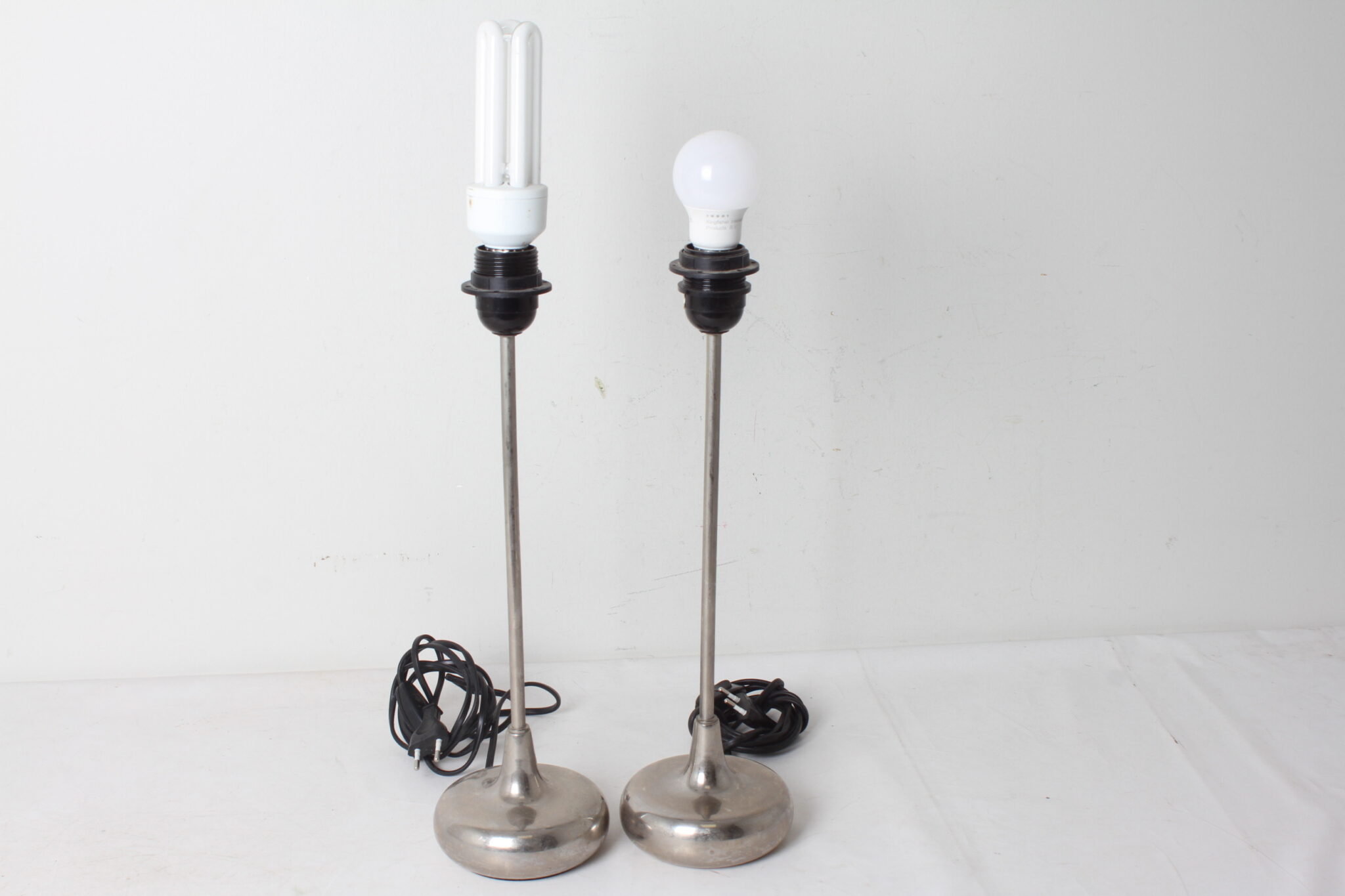 Deux pieds de lampe de chevet en acier, made in India.