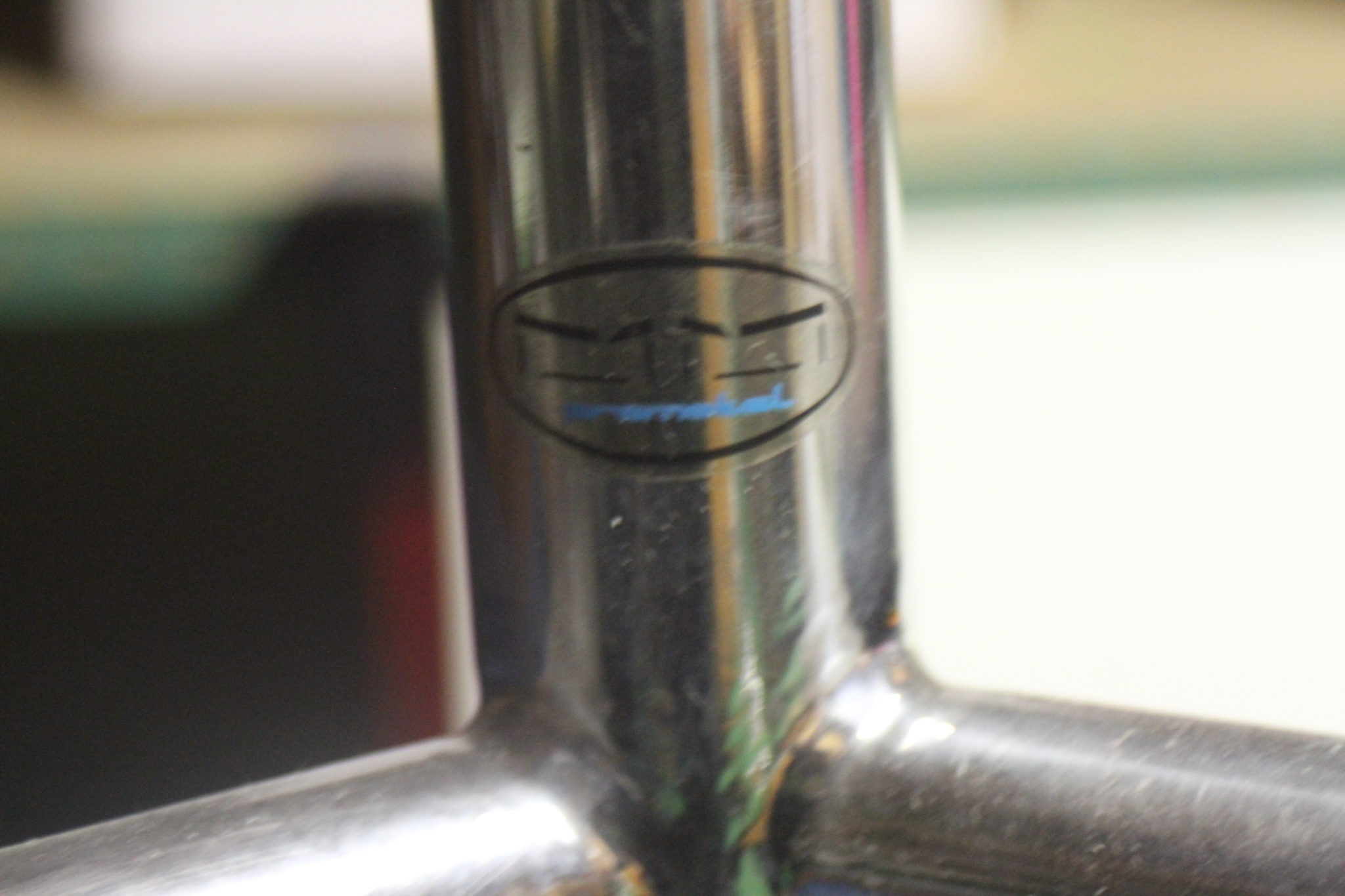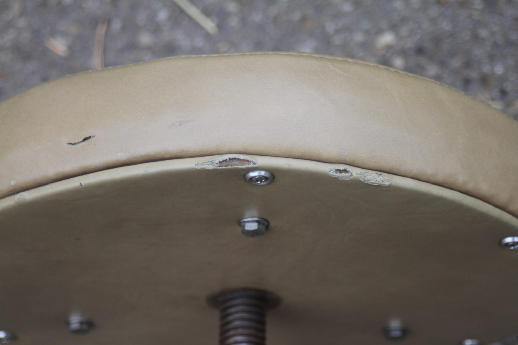 Paire de tabourets industriels à vis MM Design en métal chromé et simili cuir.