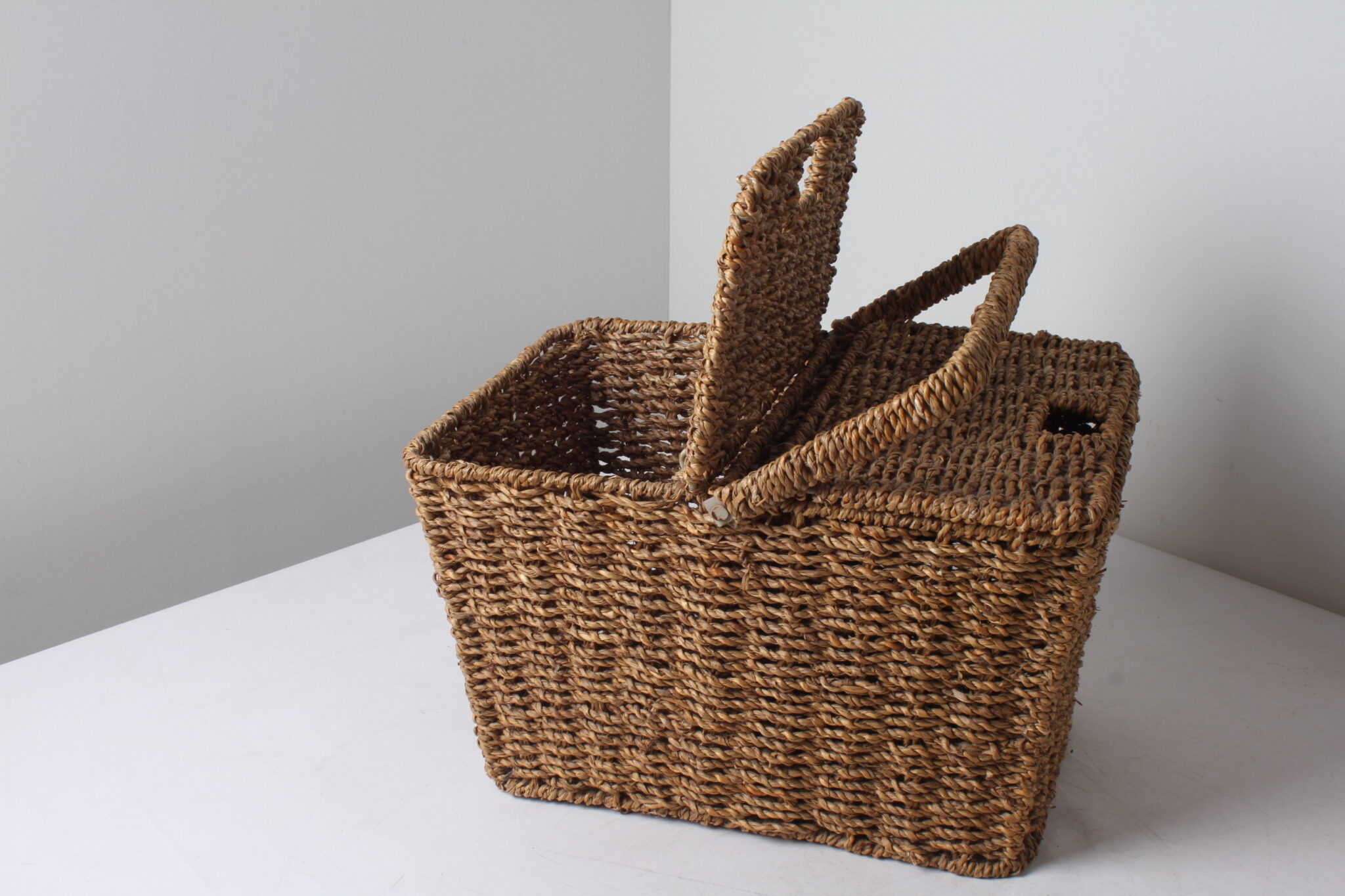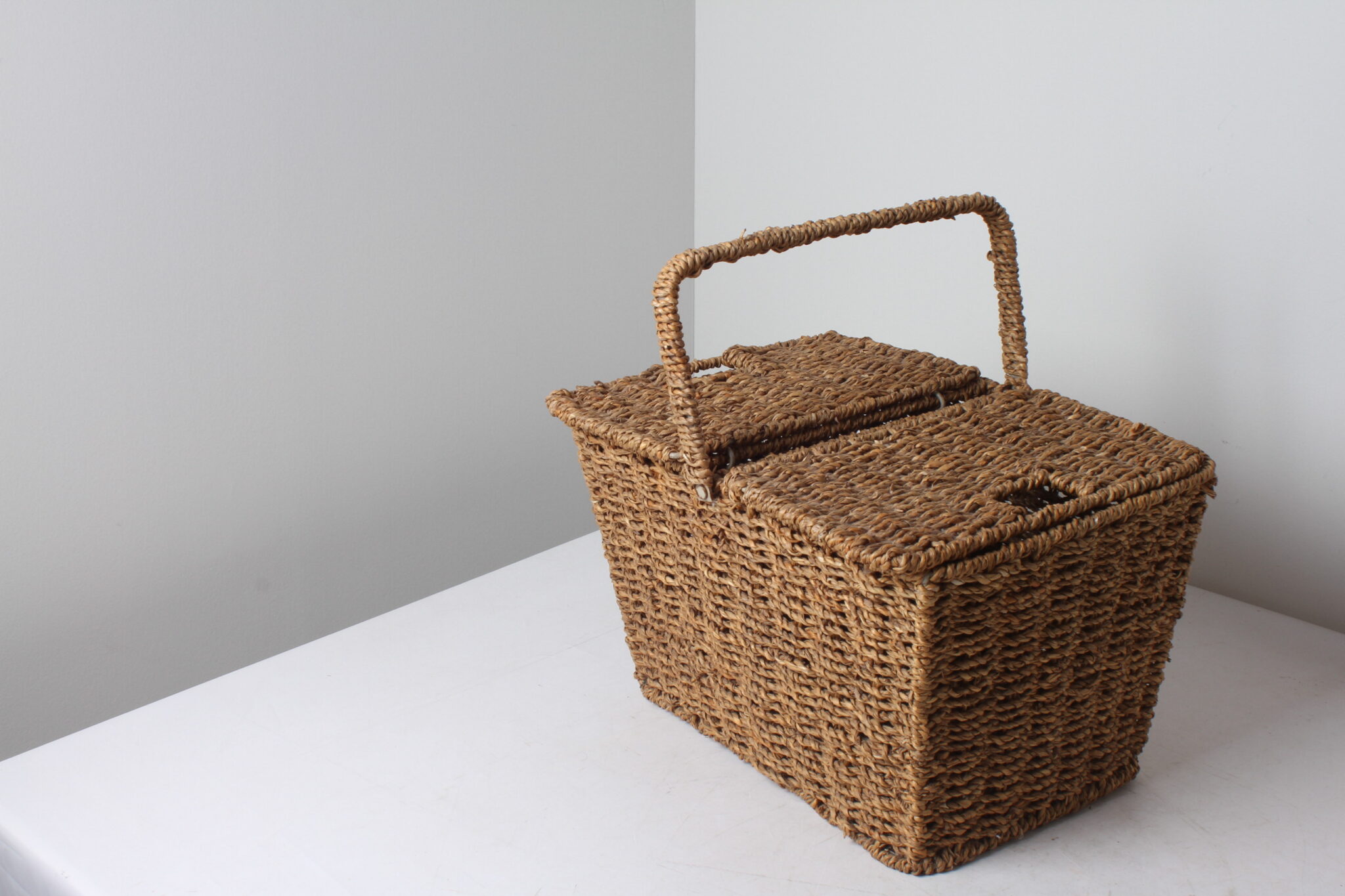 Beau panier à double compartiments en osier.