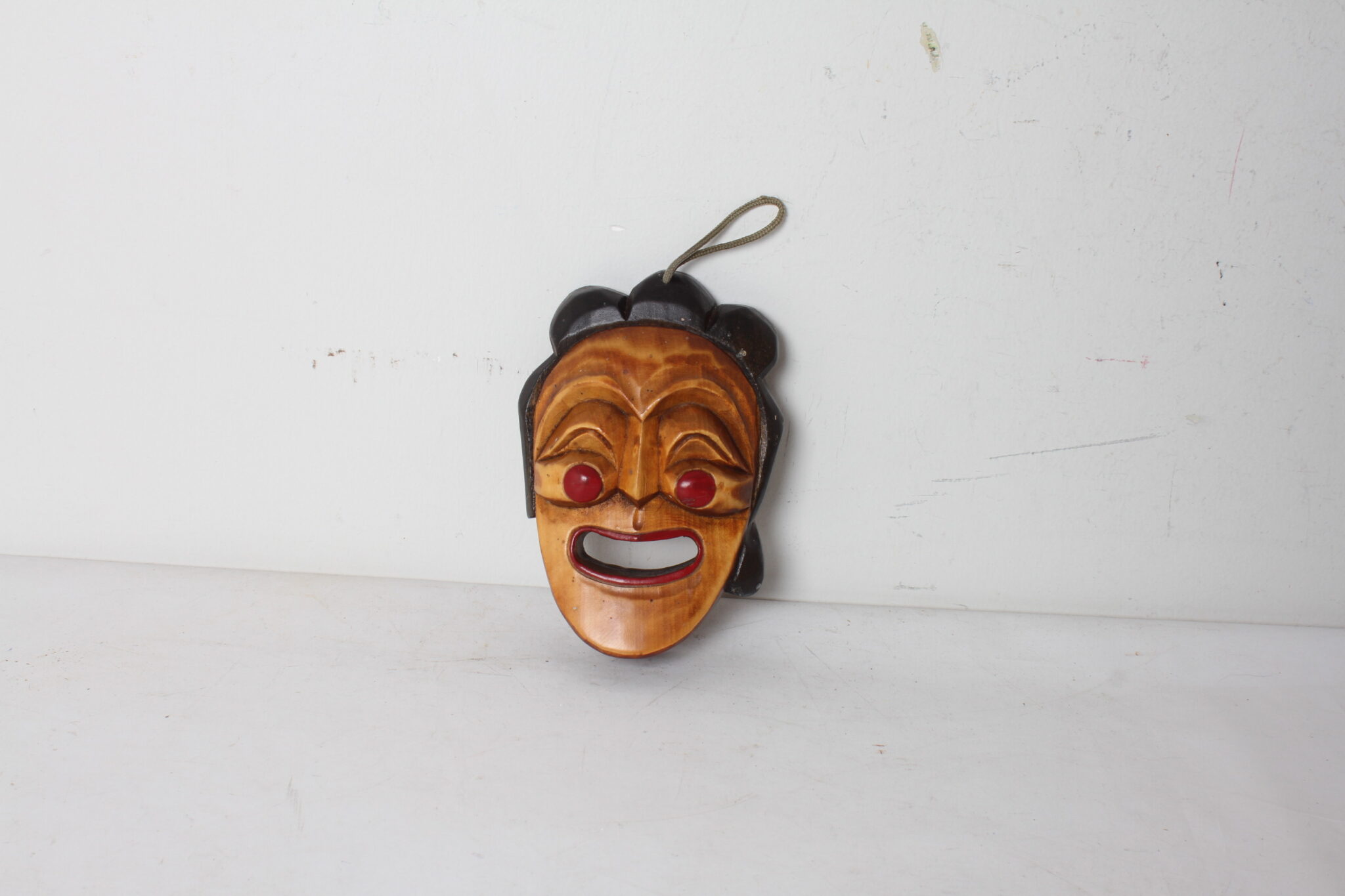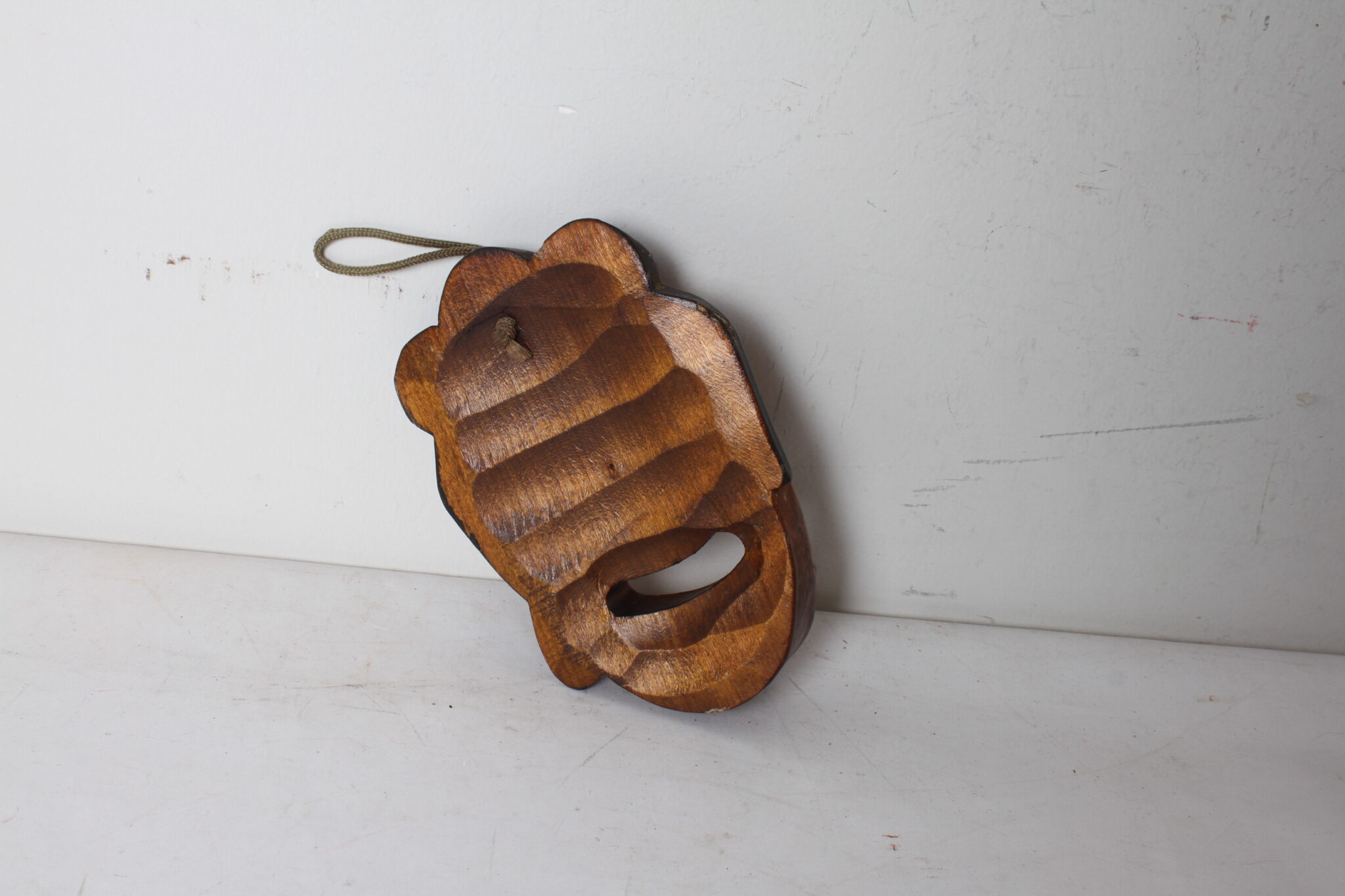 Petit masque mural décoratif en bois sculpté.