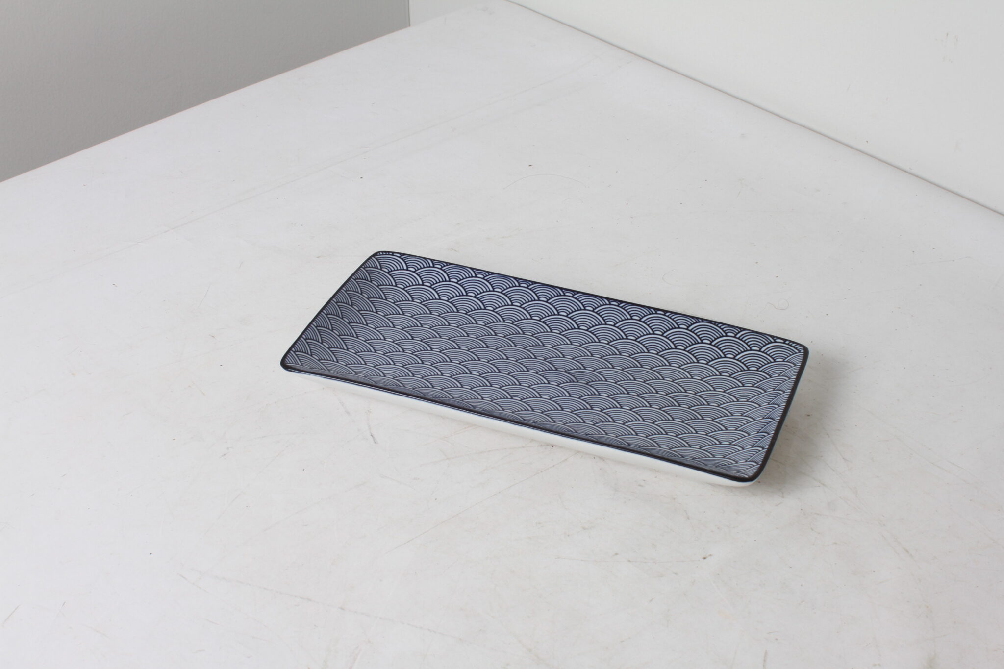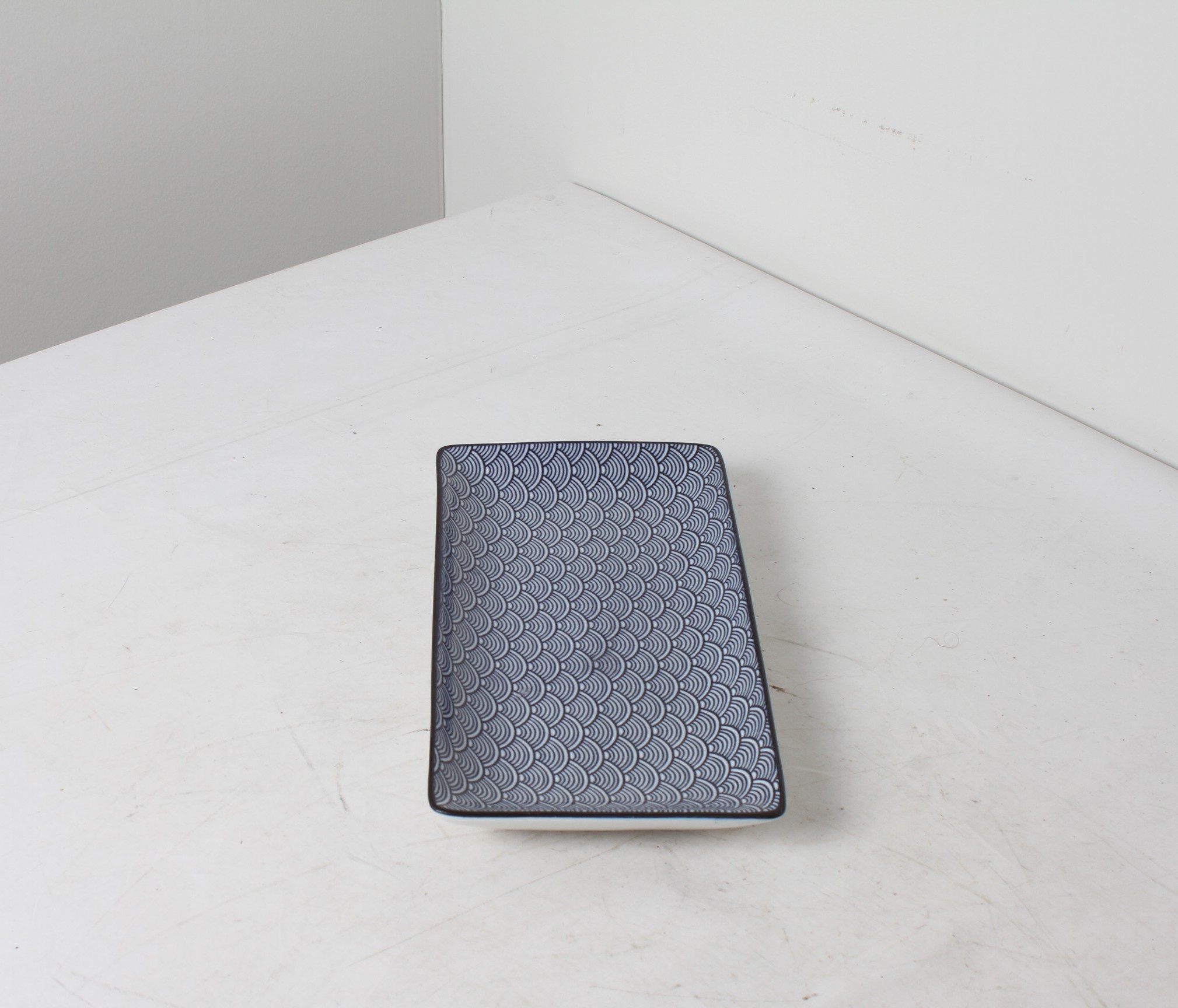 Petit plat de présentation rectangulaire en céramique.