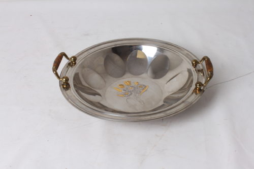Petit plat de service en Inox 18/10 Décor floral Or 24 carats.