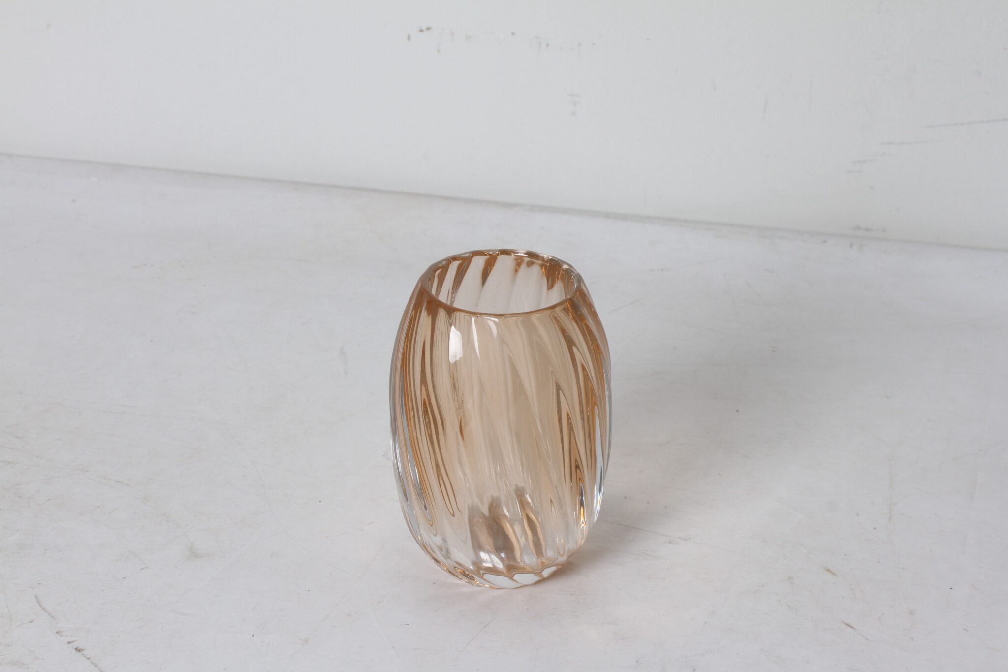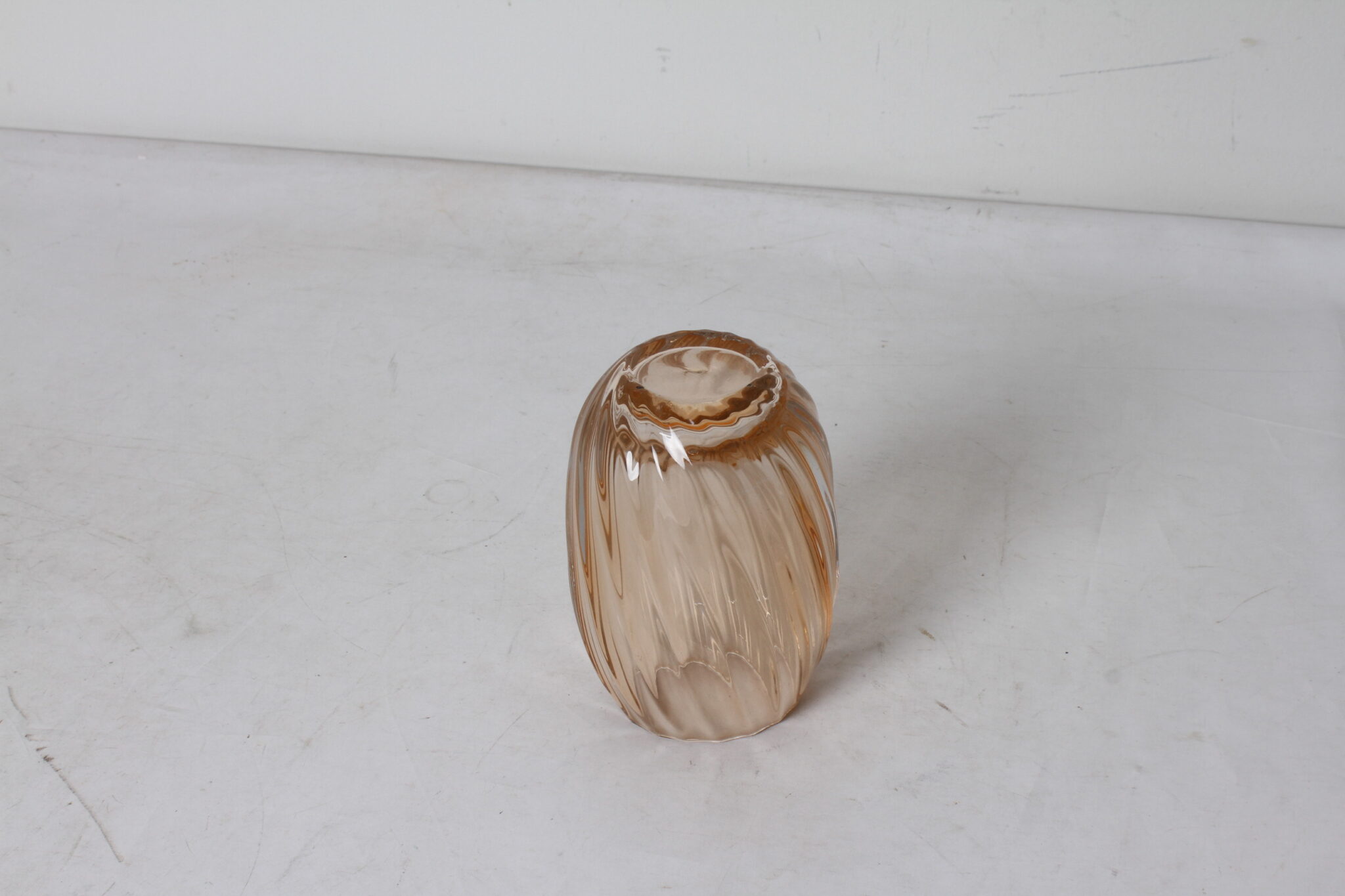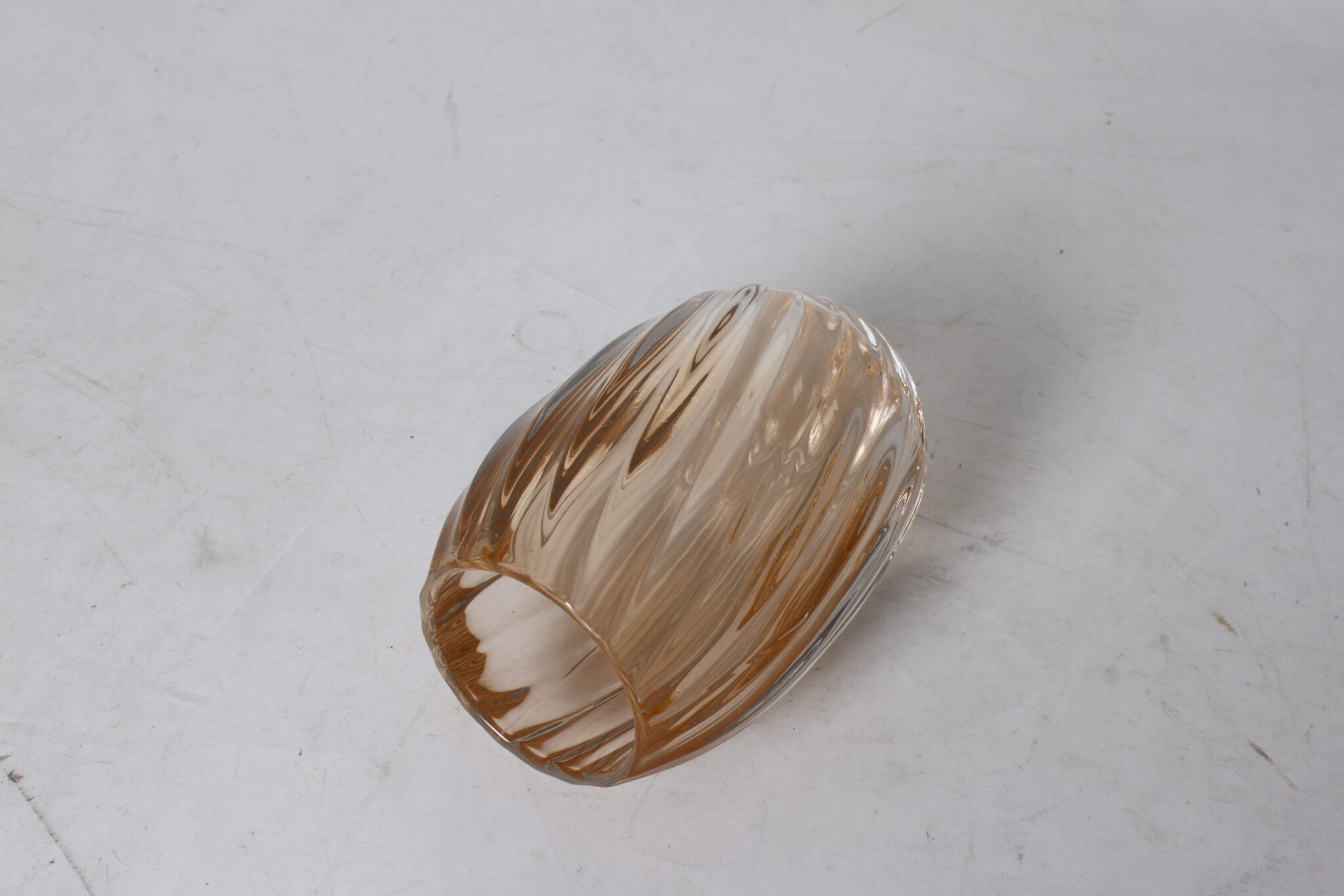 Petit vase vintage en verre fumé épais et strié.
