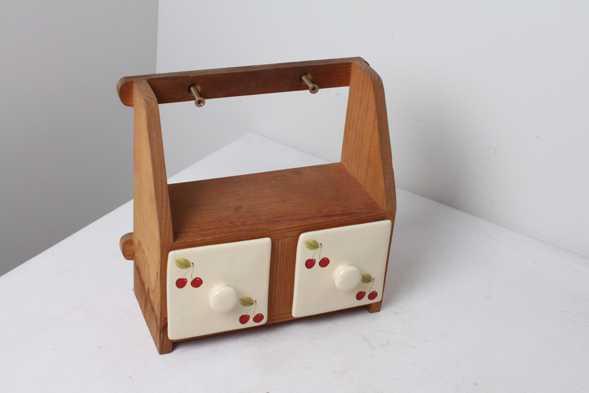 Structure en bois avec 2 tiroirs en céramique à décor cerises.