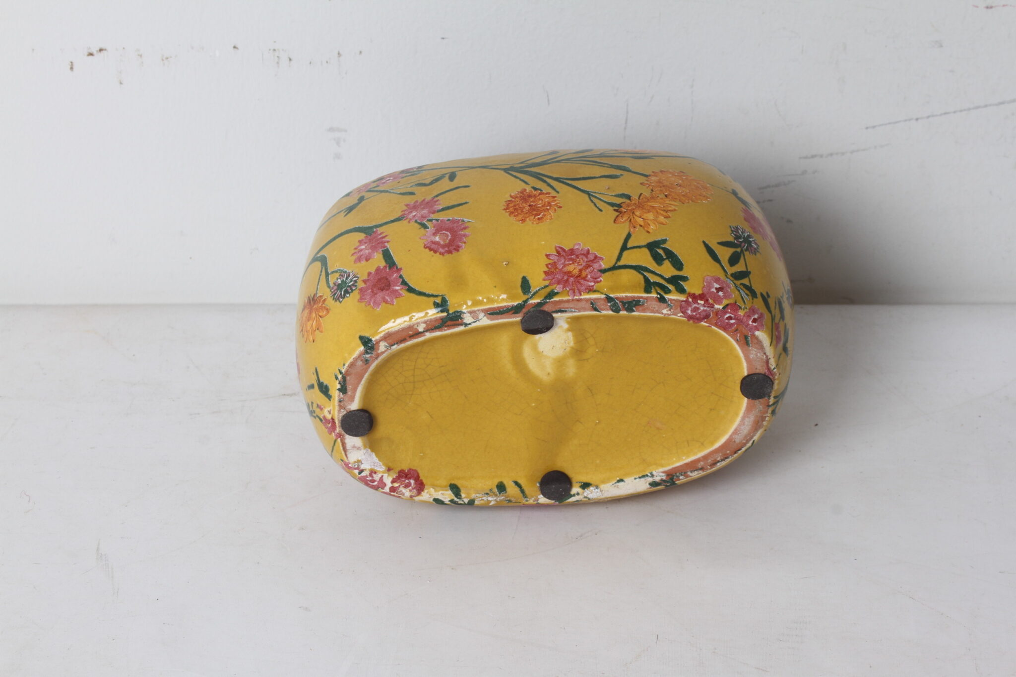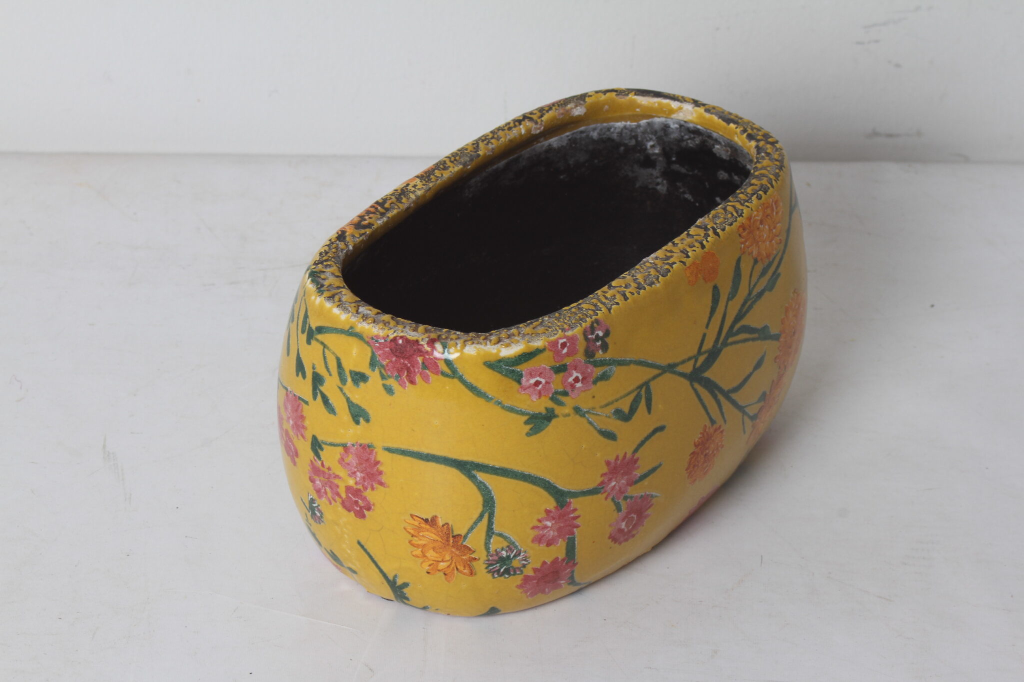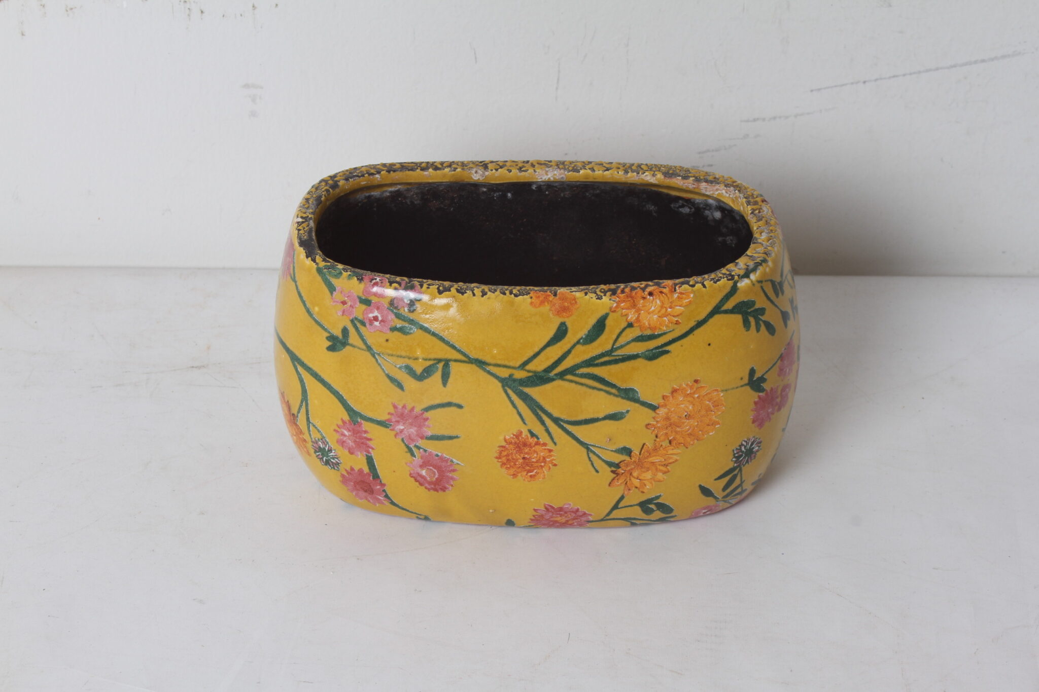 Petite jardinière en céramique à décor floral.