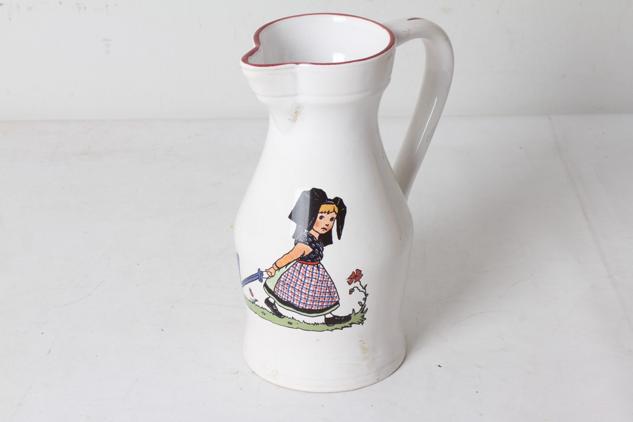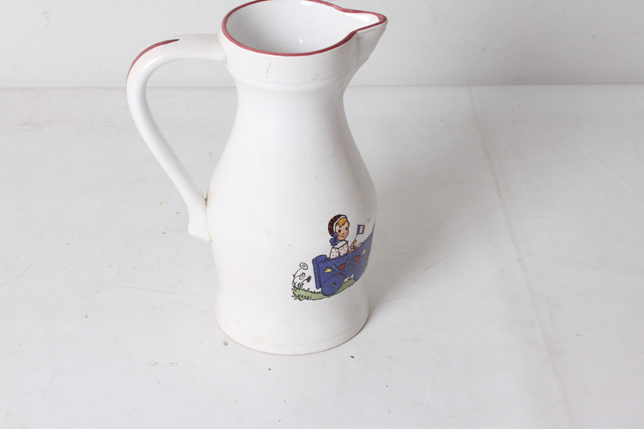 Pichet en faïence Hansi, Céramiques Elchinger, décor alsacien.