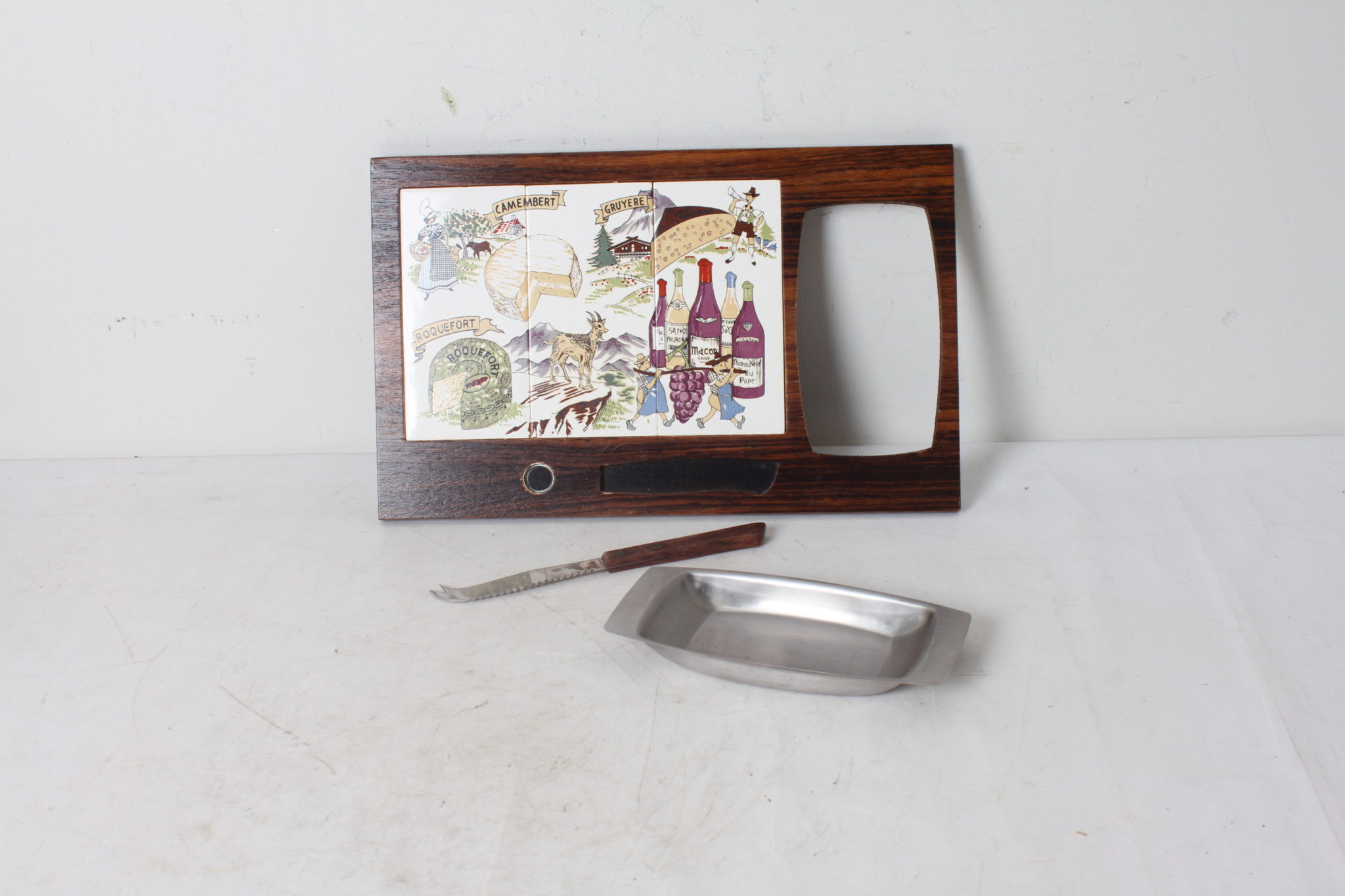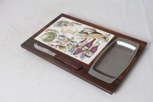 Plateau à fromages vintage en bois et carreaux de céramique.