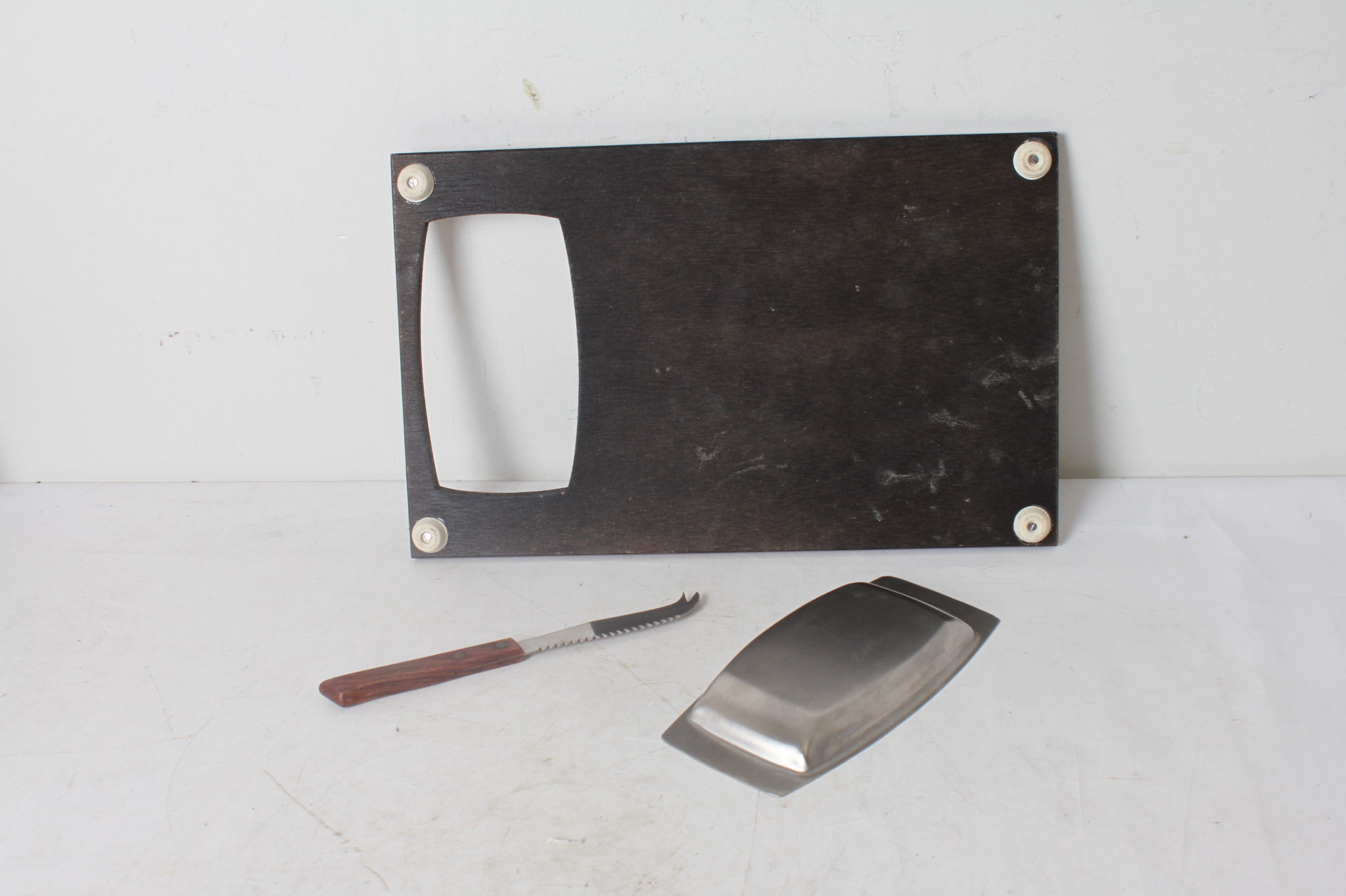 Présenté avec son beurrier et son couteau, belle pièce vintage de qualité.