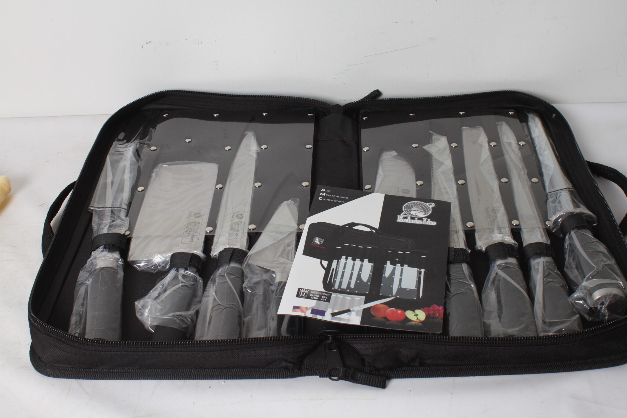 Pochette de couteaux 9 pièces en acier inoxydable de la marque Exclusive Line.