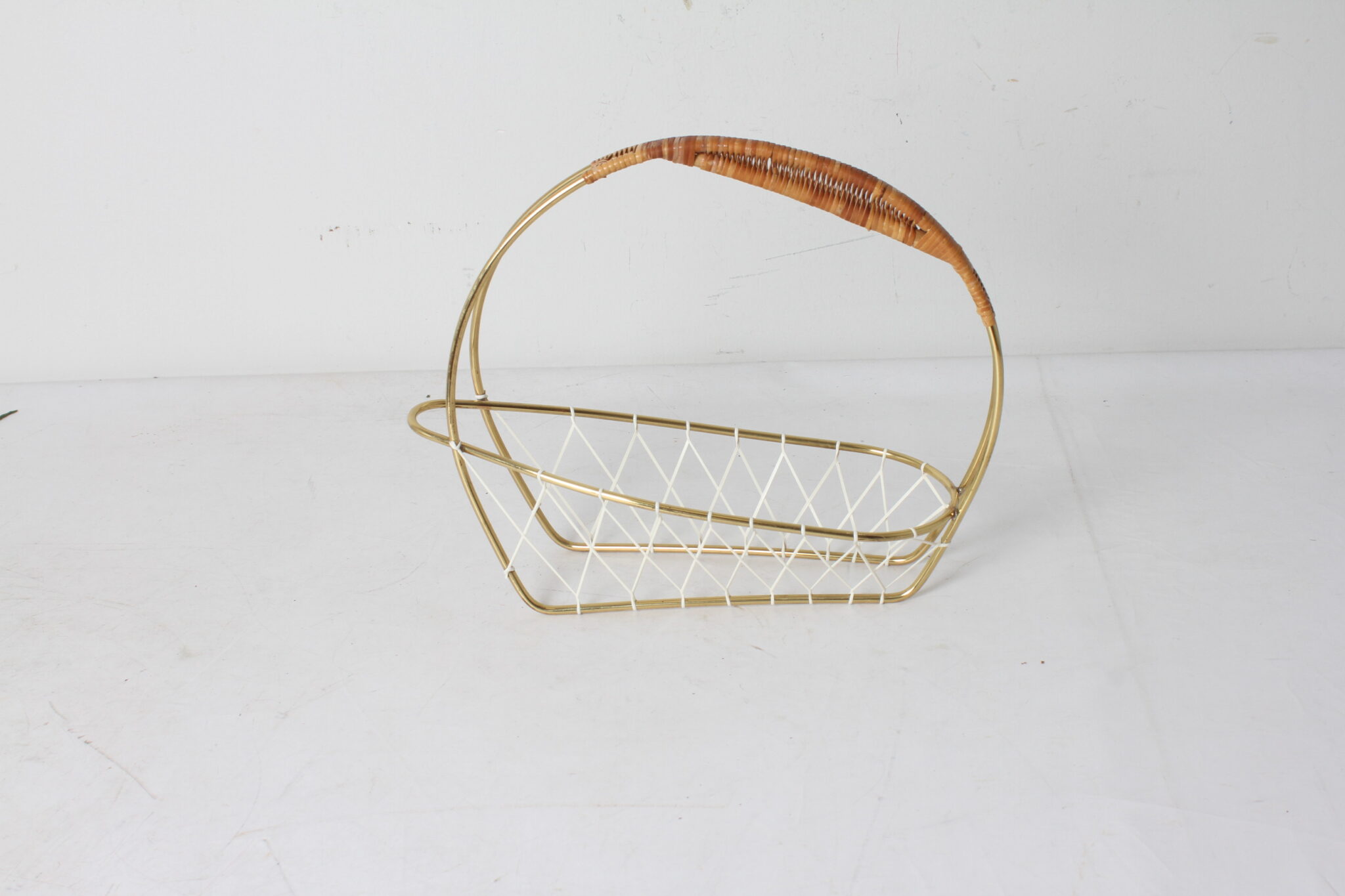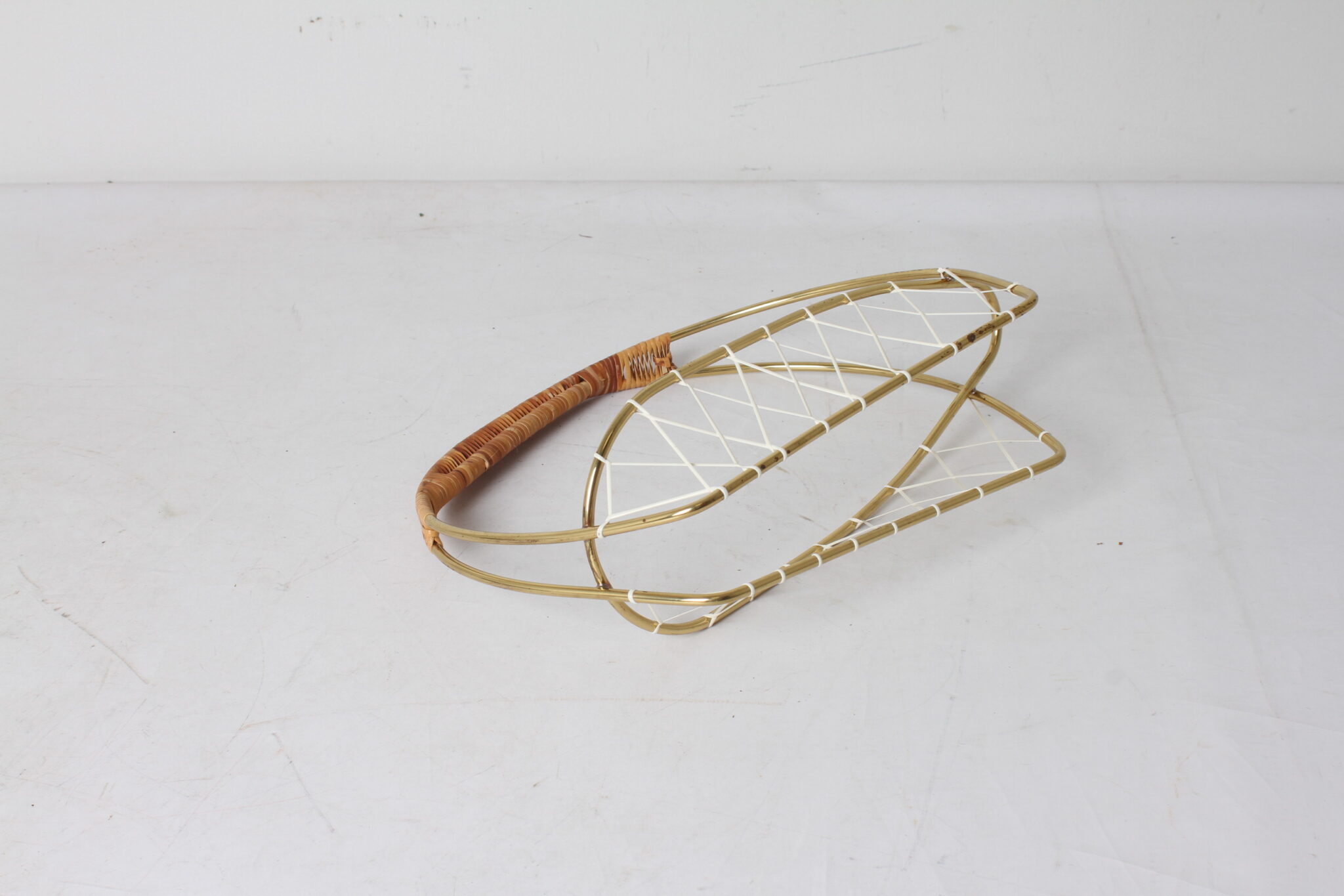 Porte bouteille vin vintage en métal doré et osier.