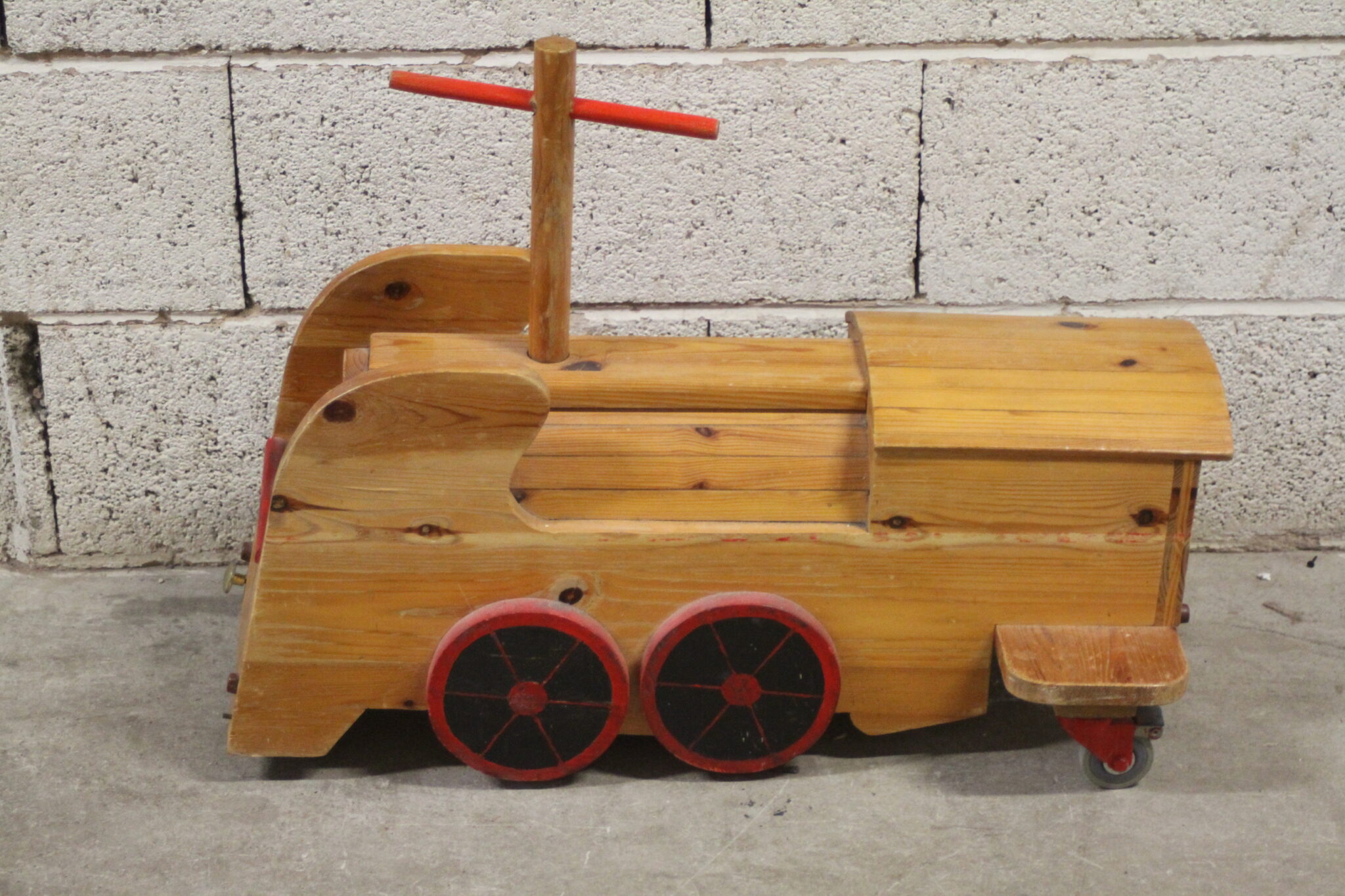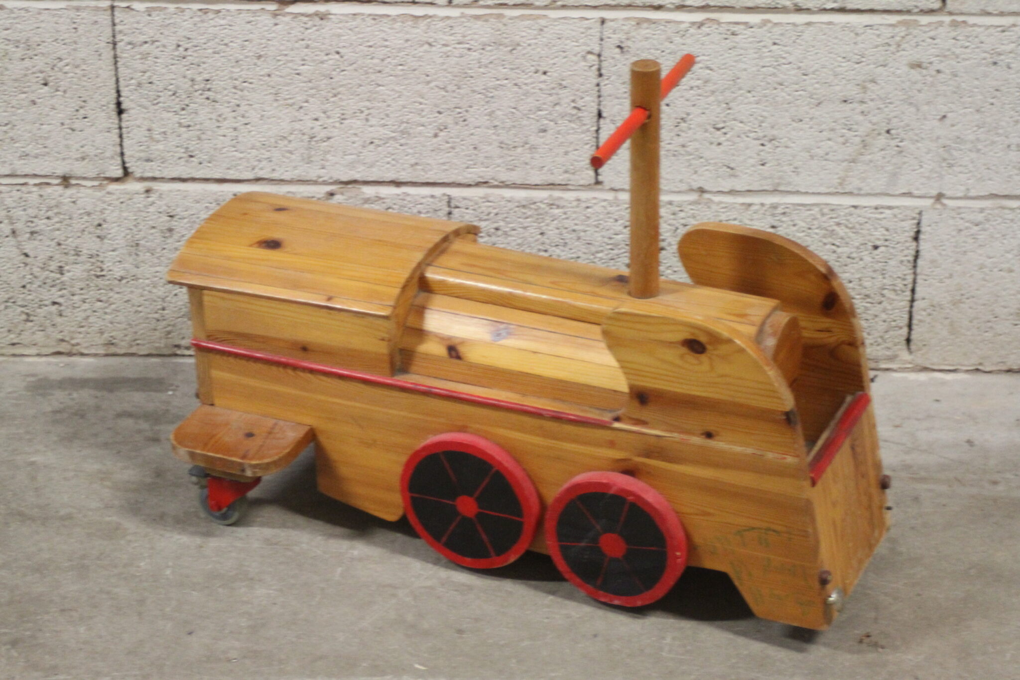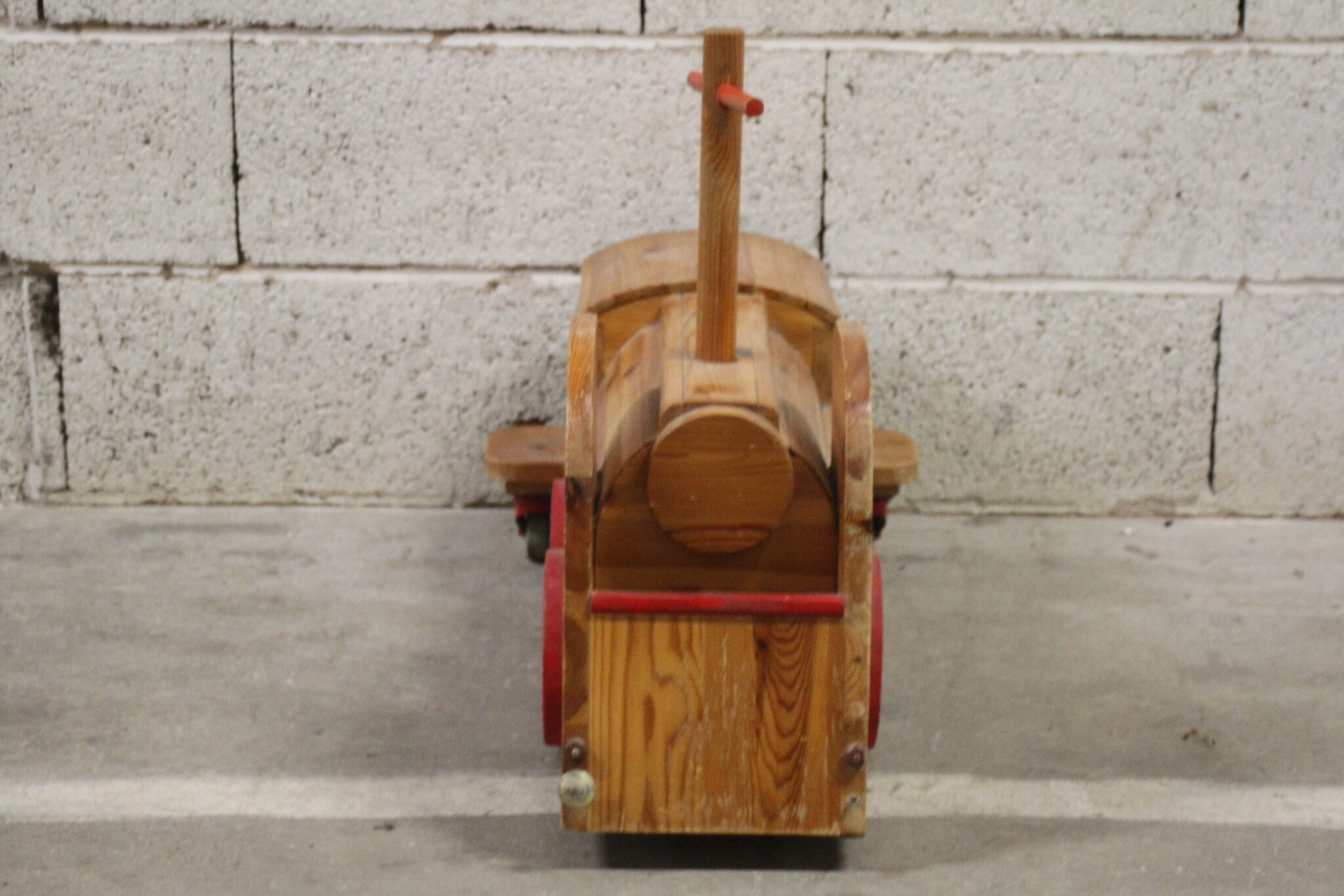 Porteur artisanal train en bois pour enfant.