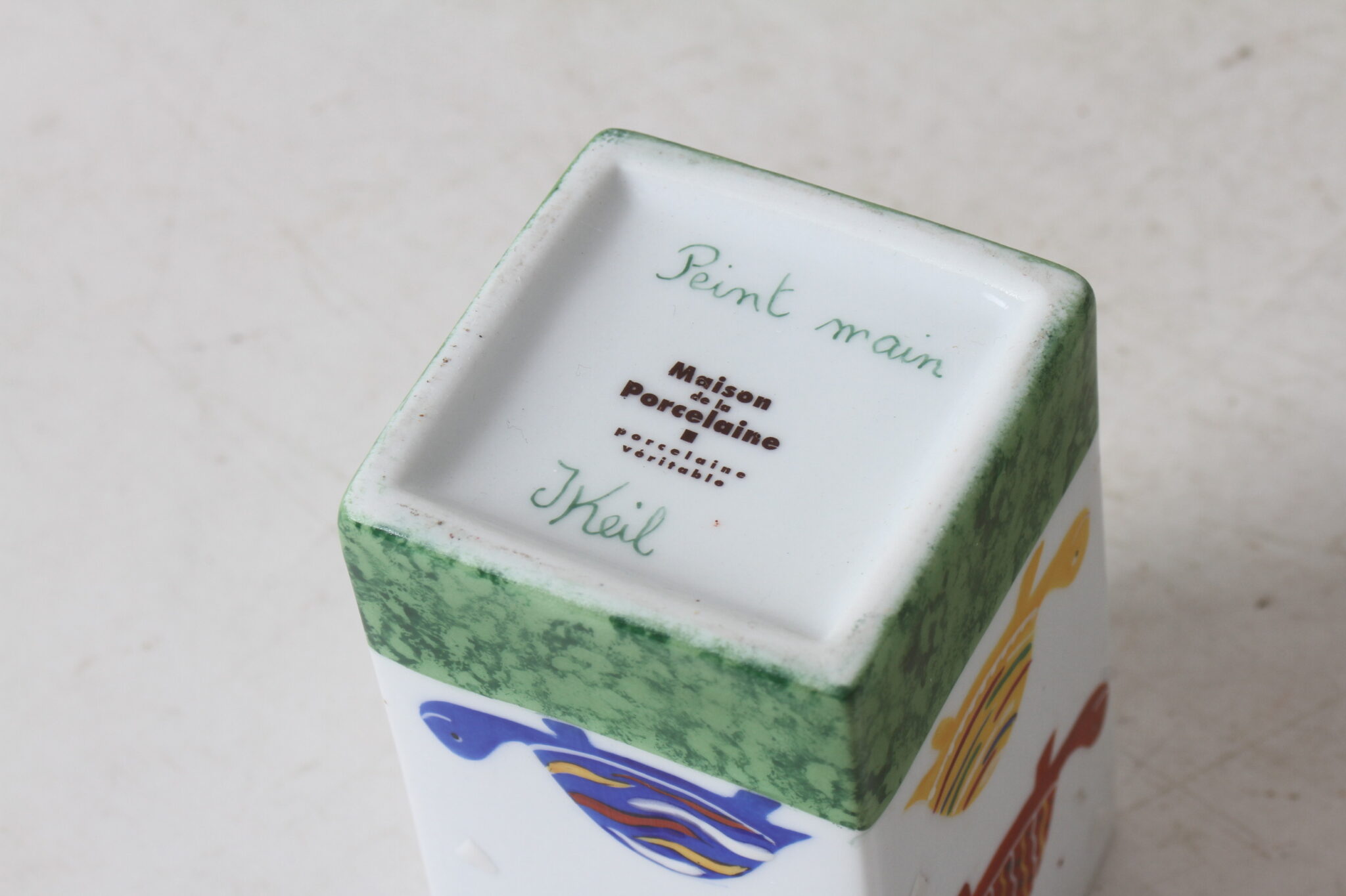 Très joli petit pot en porcelaine, Maison de la porcelaine, signé J Keil.