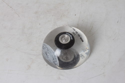 Presse-papiers Goodyear 1971, vintage et originale représentant un pneu Lunar Rover avec l’inscription « Premier pneu sur la Lune 1971 ».