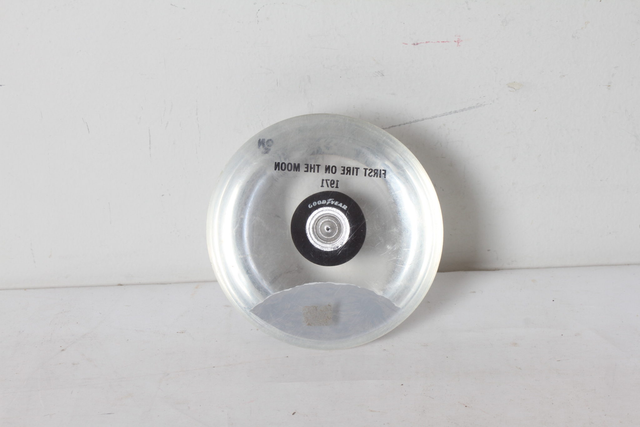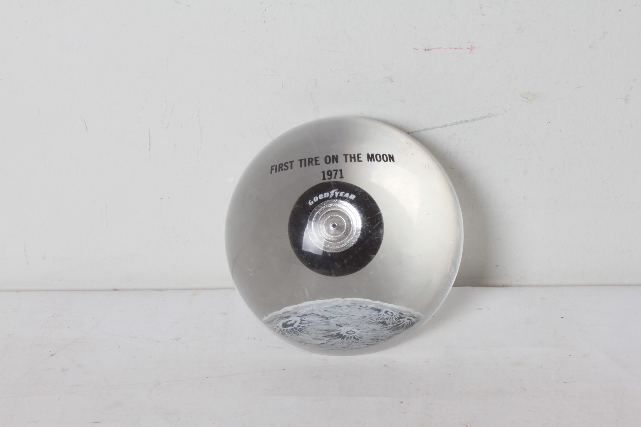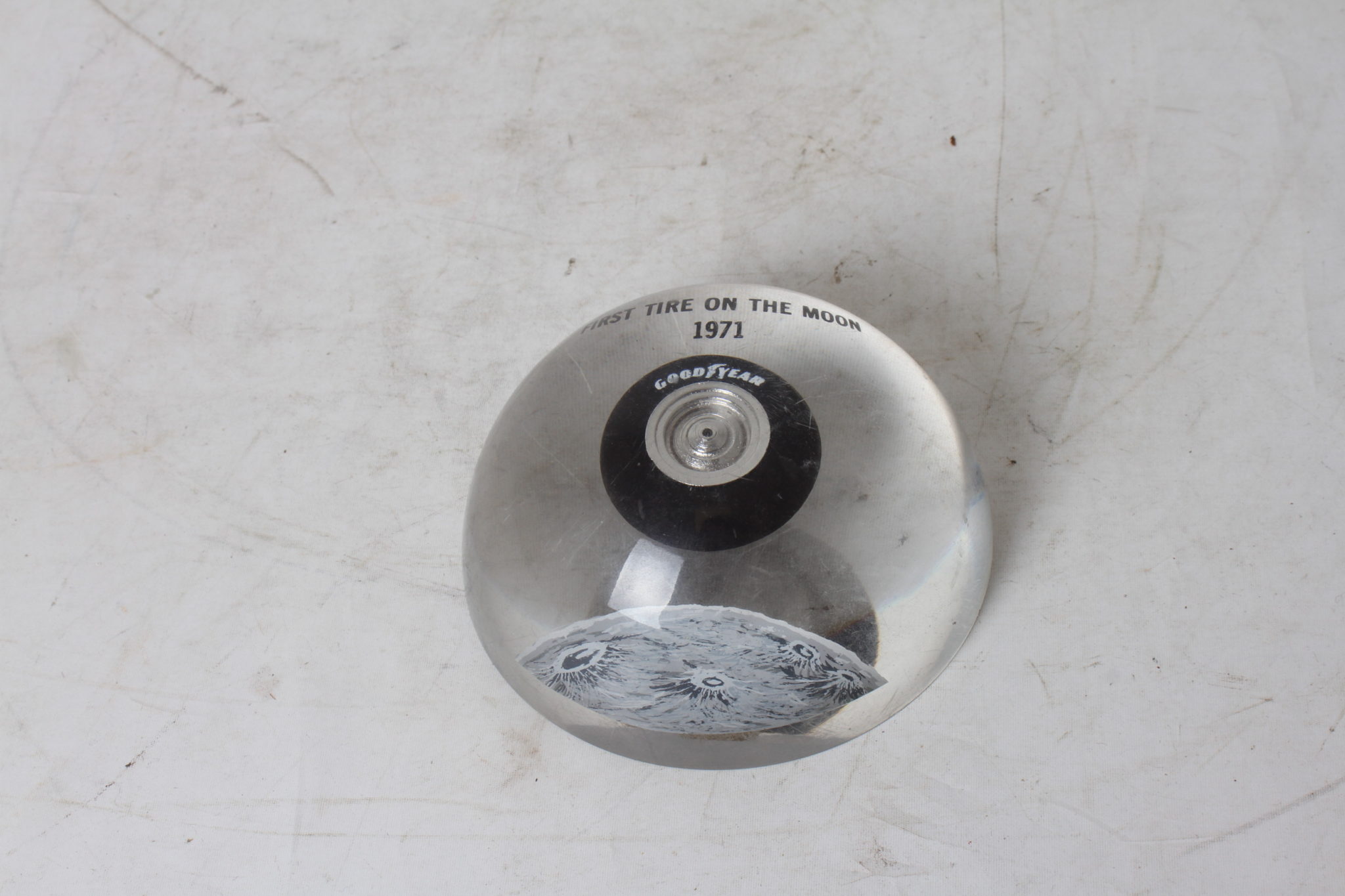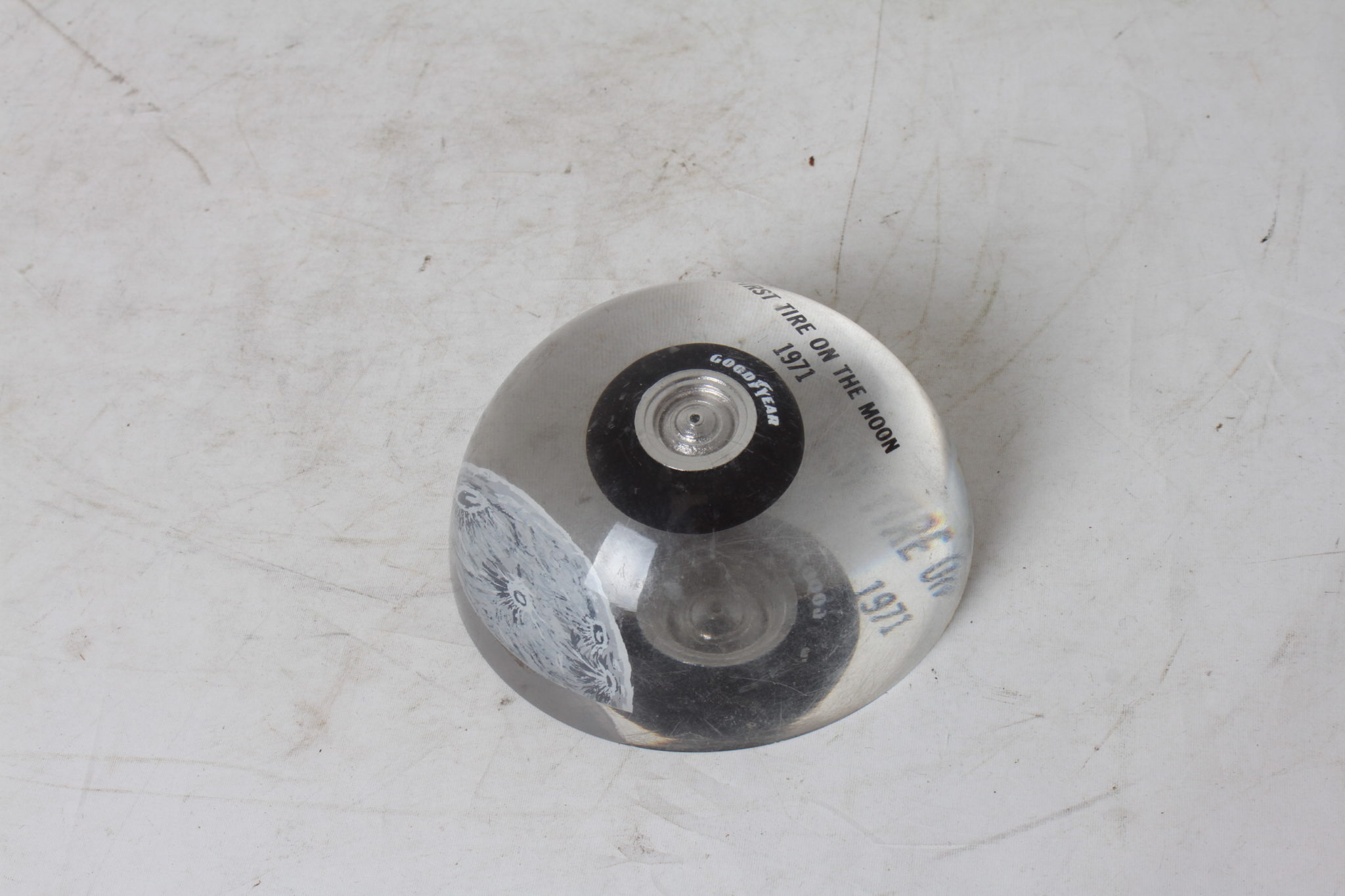 Objet de collection célébrant le premier pneu Goodyear posé sur la Lune.