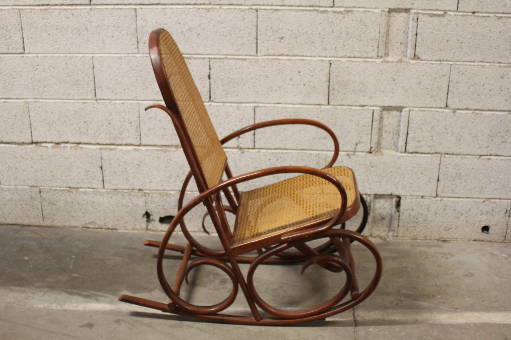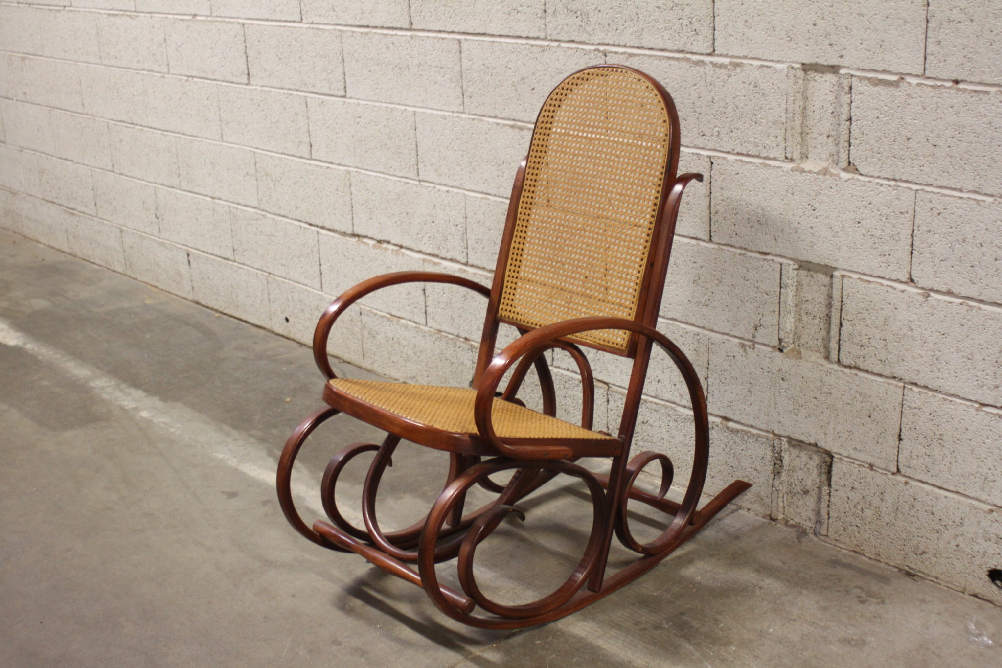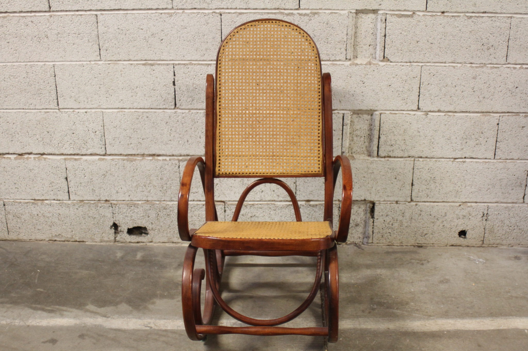 Très beau rocking chair en bois et rotin.