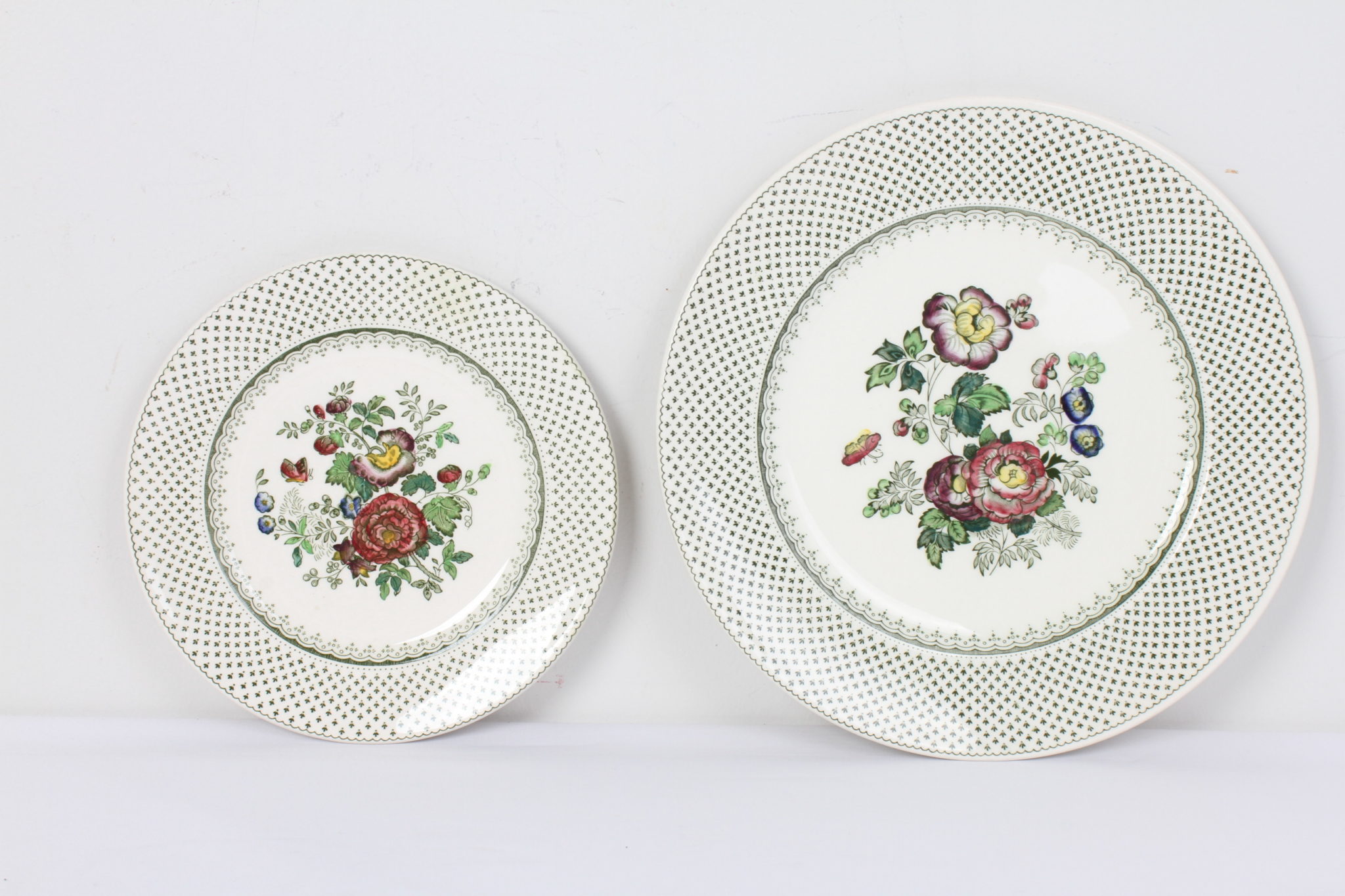 Série de 20 assiettes rétro en porcelaine estampillées Mason’s, à motif vintage floral.