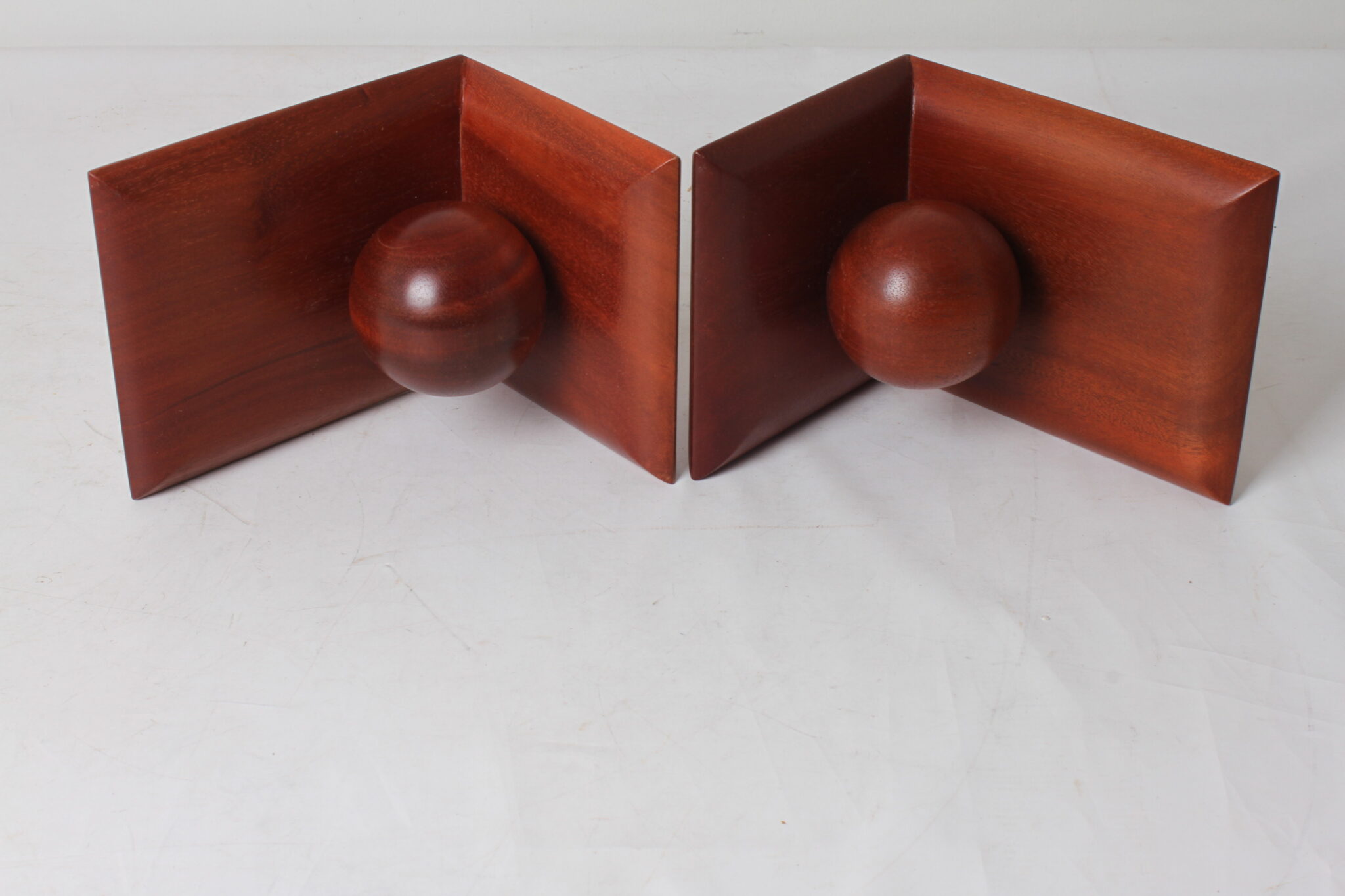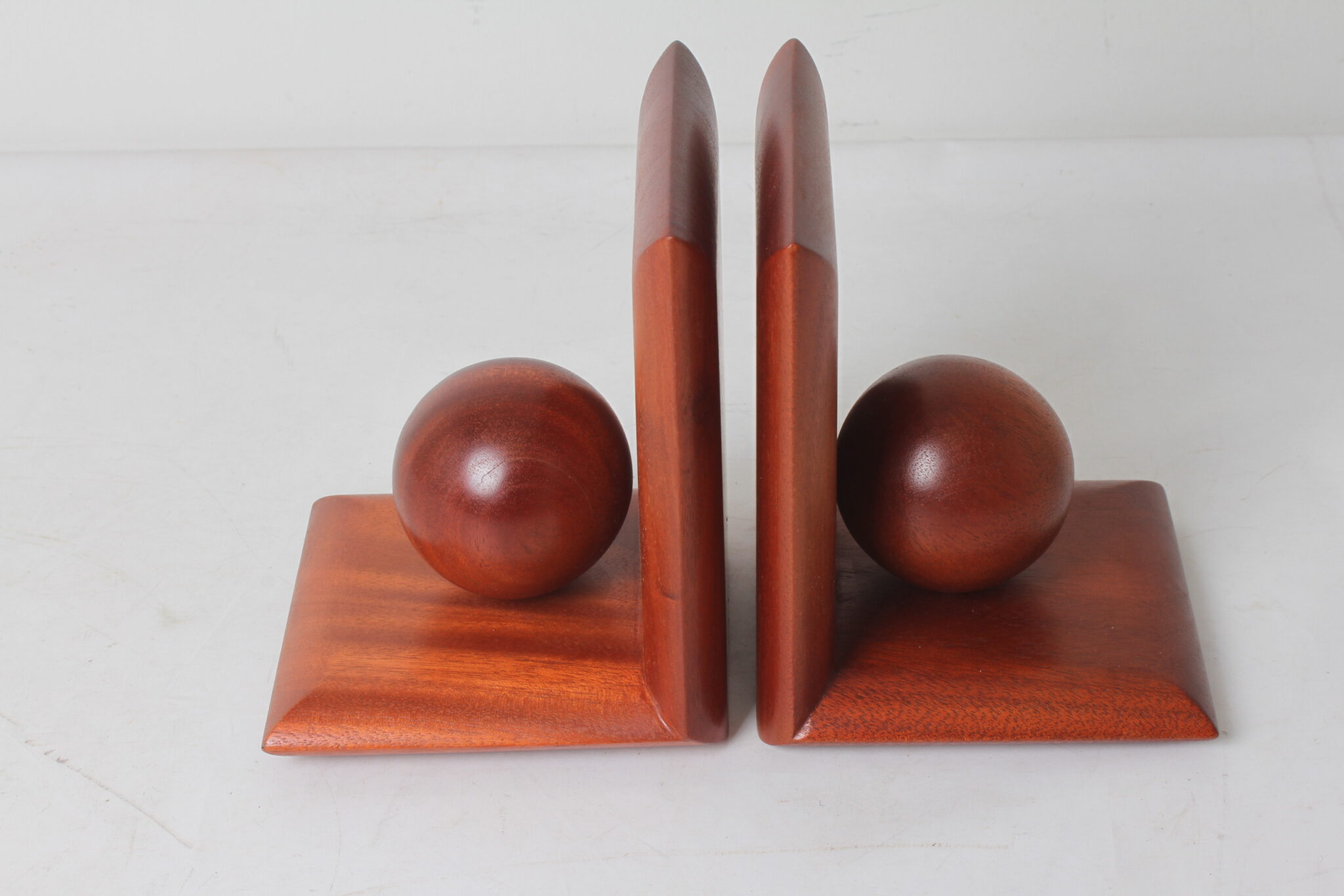 Serre-livres boule de style Art Déco en acajou du Togo, fait main.